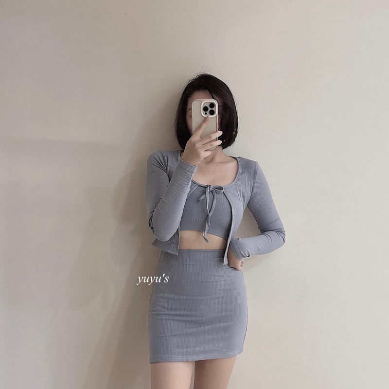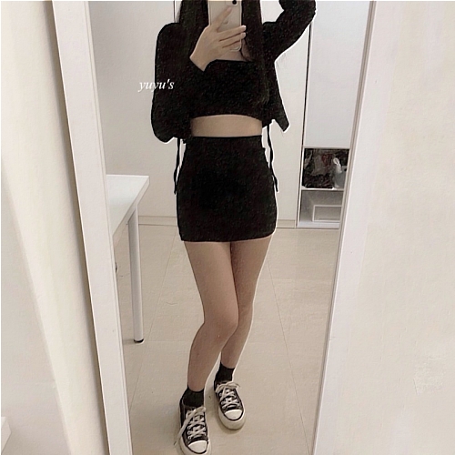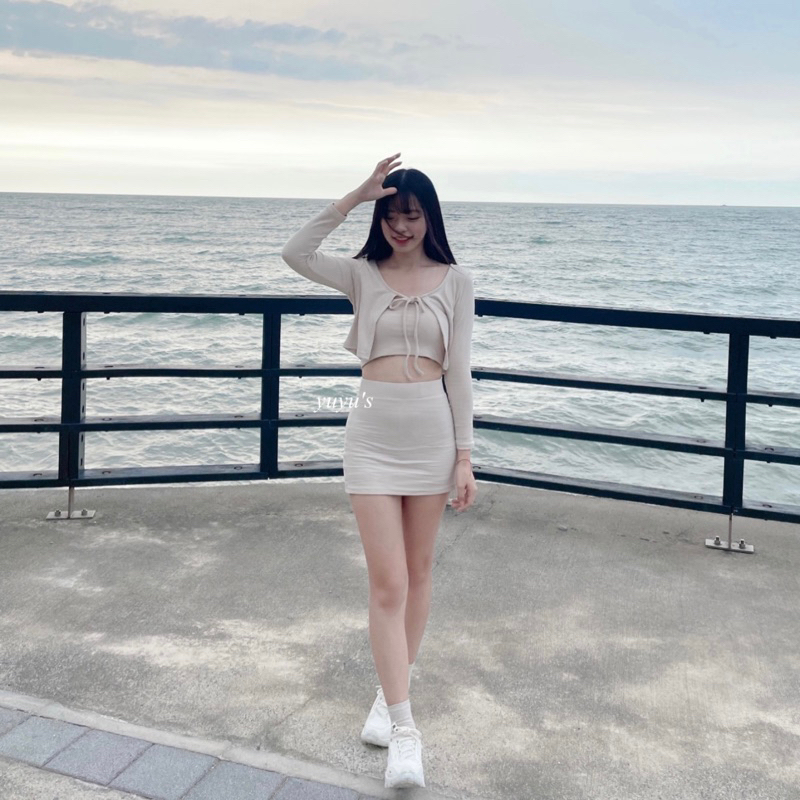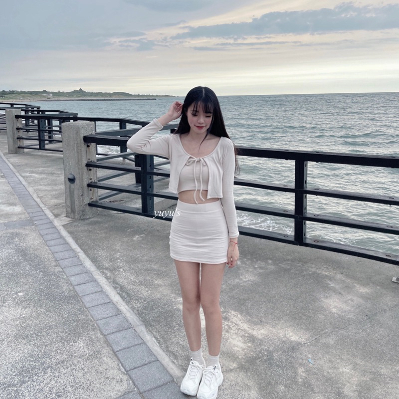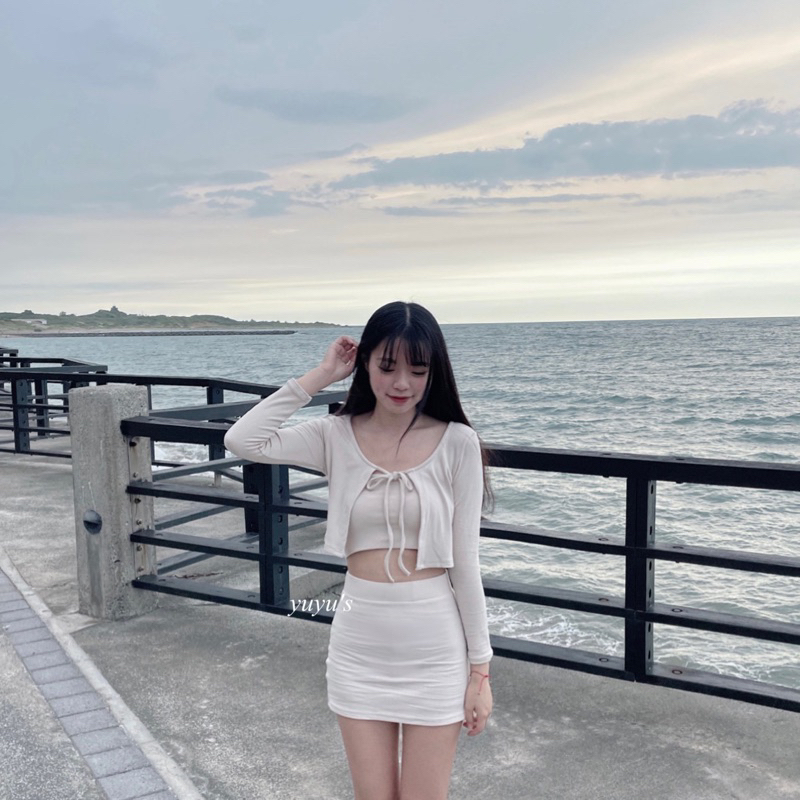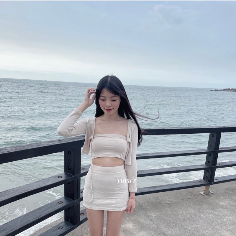 #版型偏小螺紋綁帶外套三件式套裝