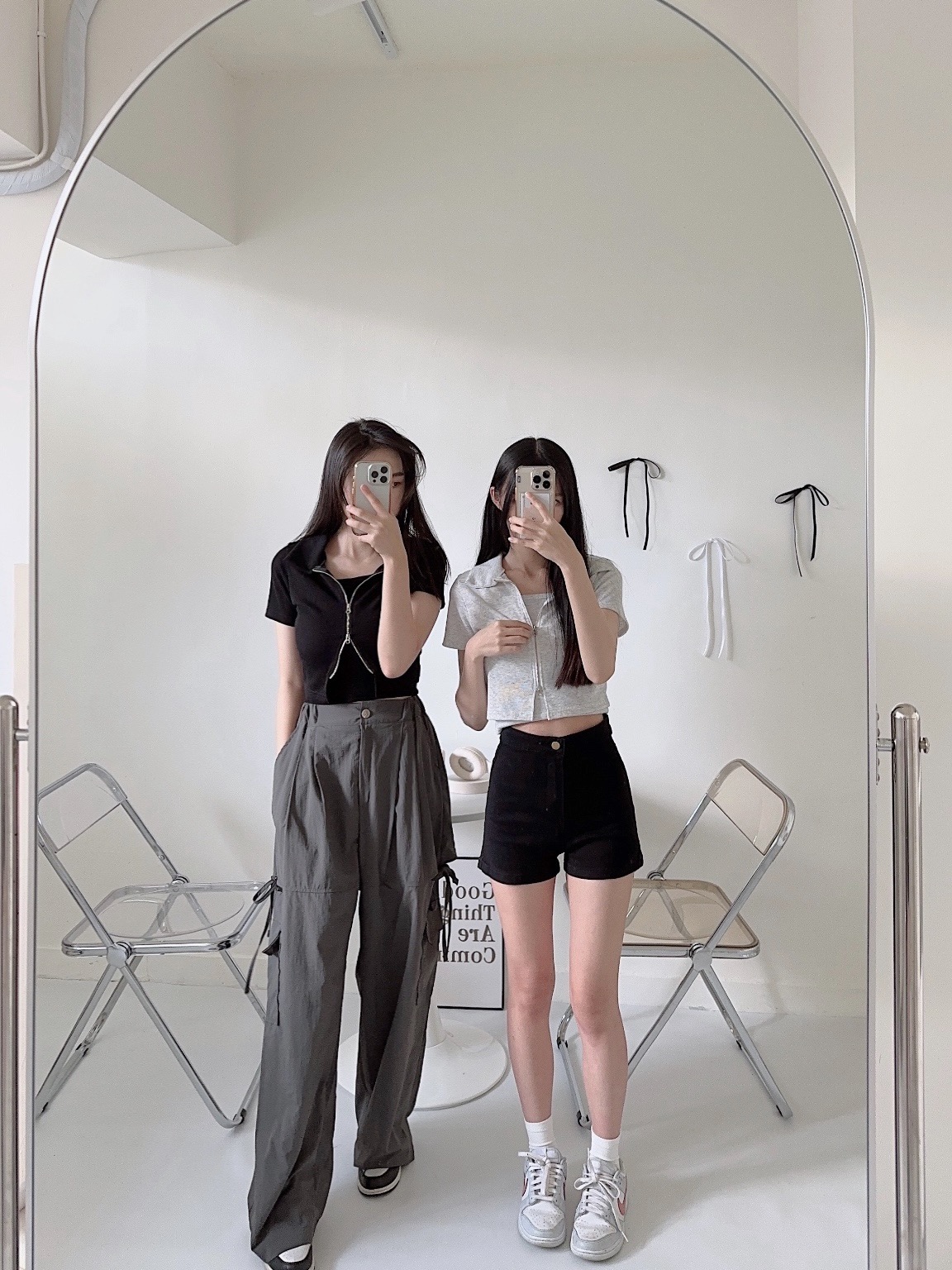 #襯衫領雙拉鍊短版兩件套