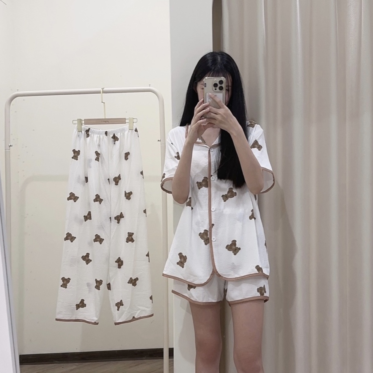 #舒服熊熊滾邊睡衣三件套
