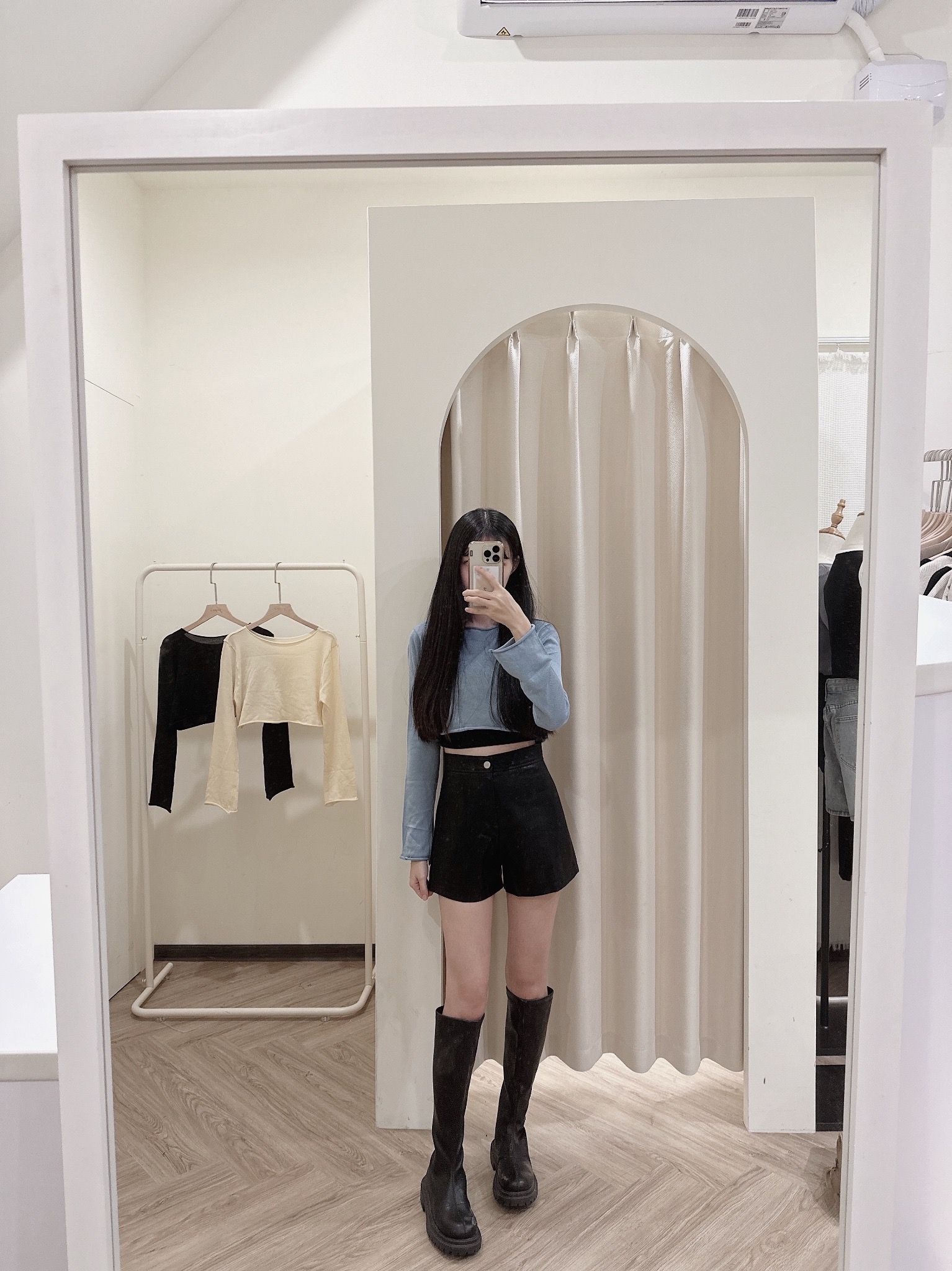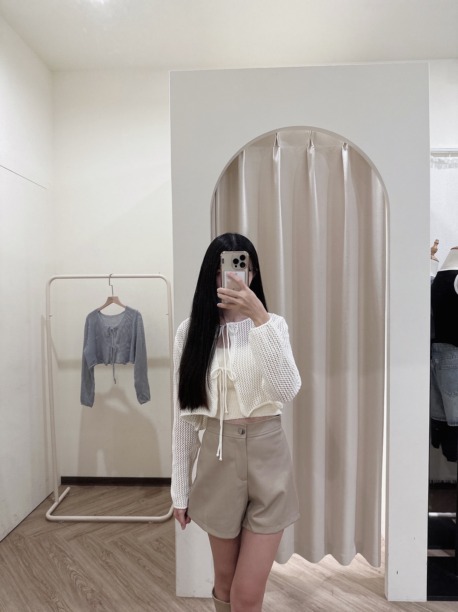 皮褲版型很挺 很遮小腹!