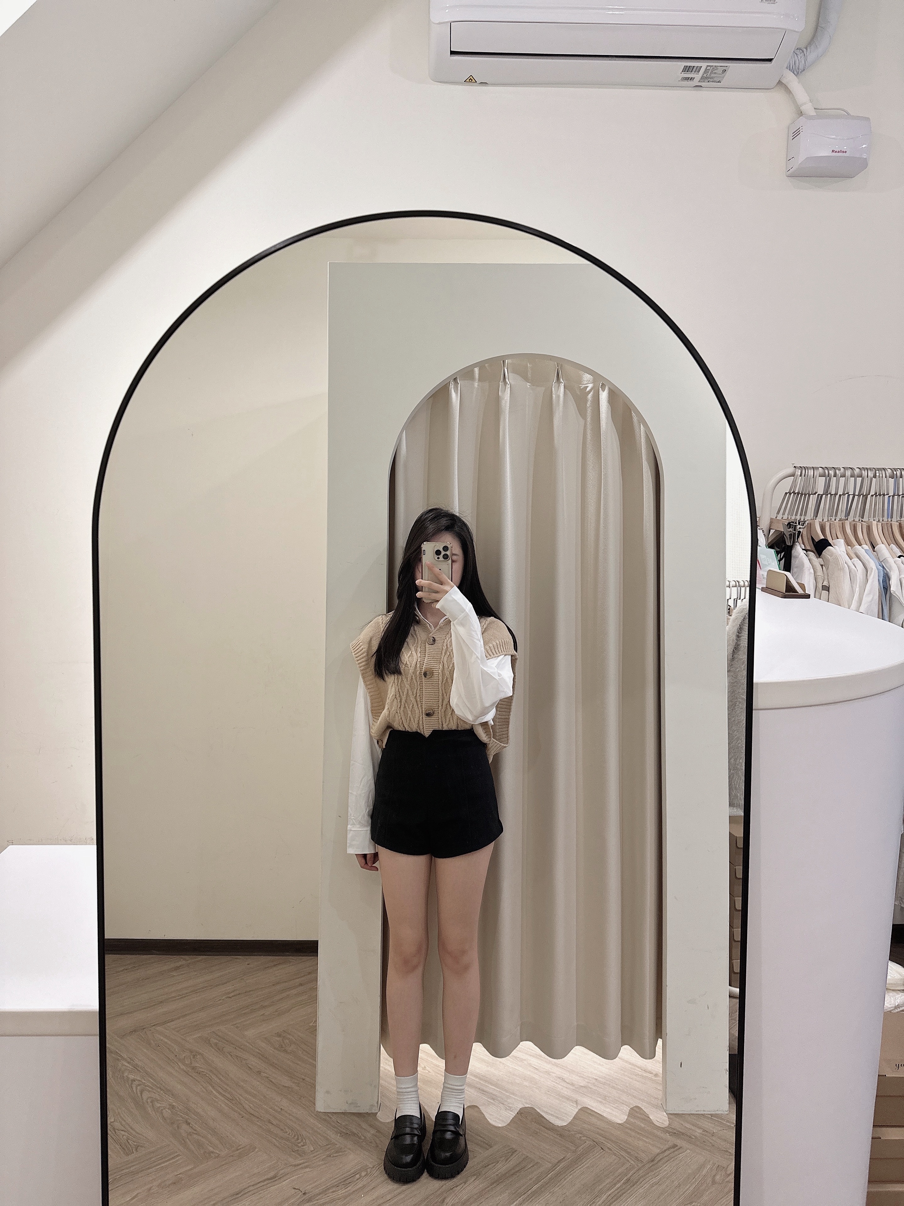 #版型偏小高腰修身絨面A字短褲
