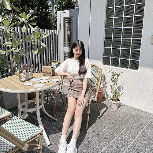 #獨家訂製款版型偏小包臀格紋裙 內有安全褲
