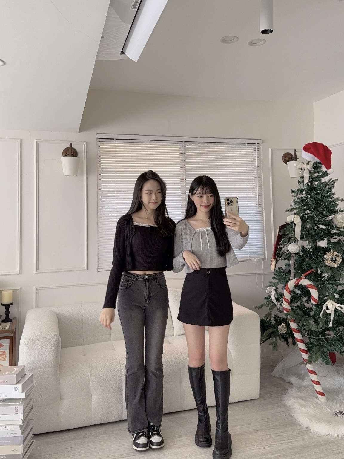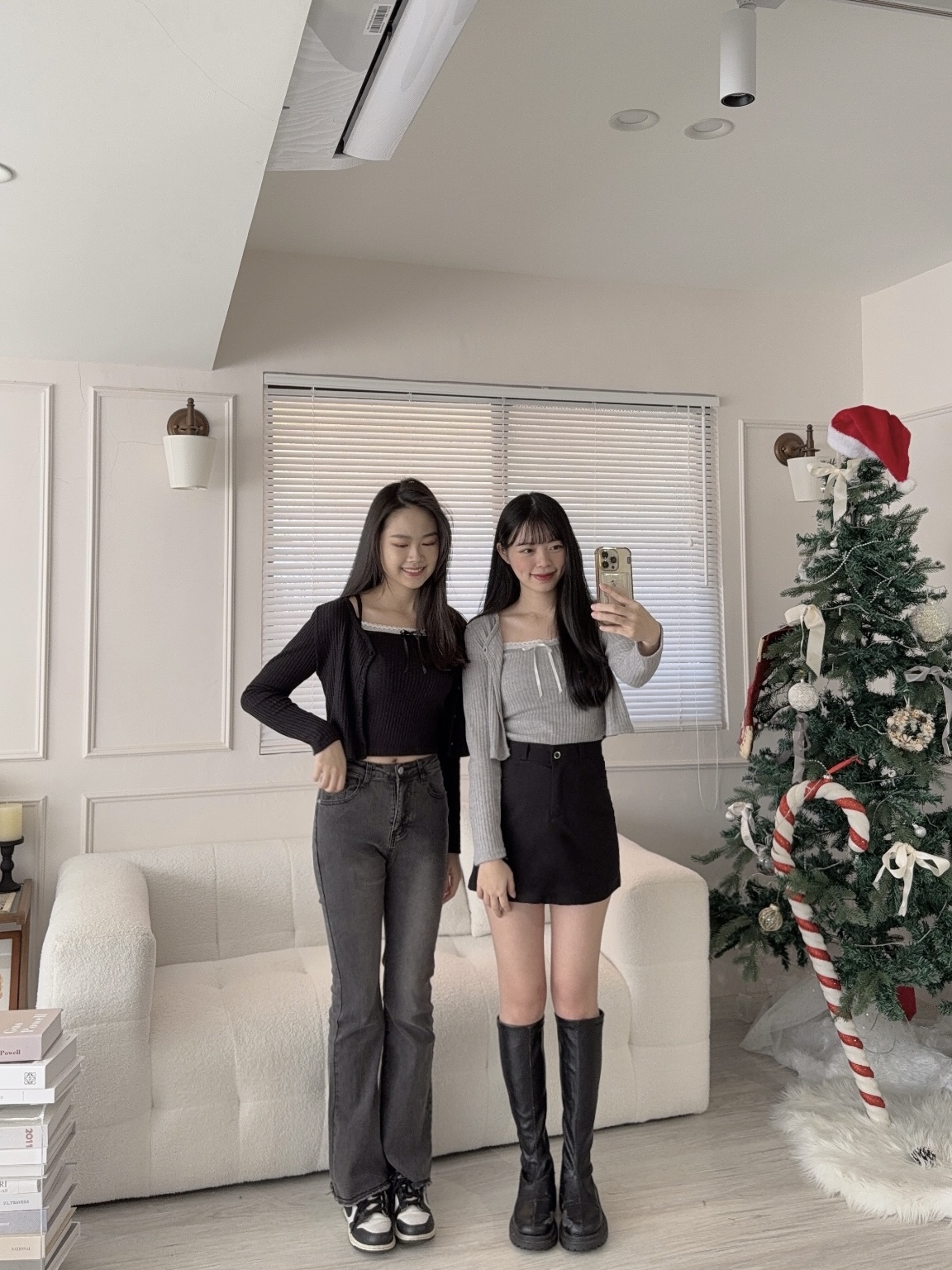 # 韓製小蝴蝶結蕾絲背心+小外套set