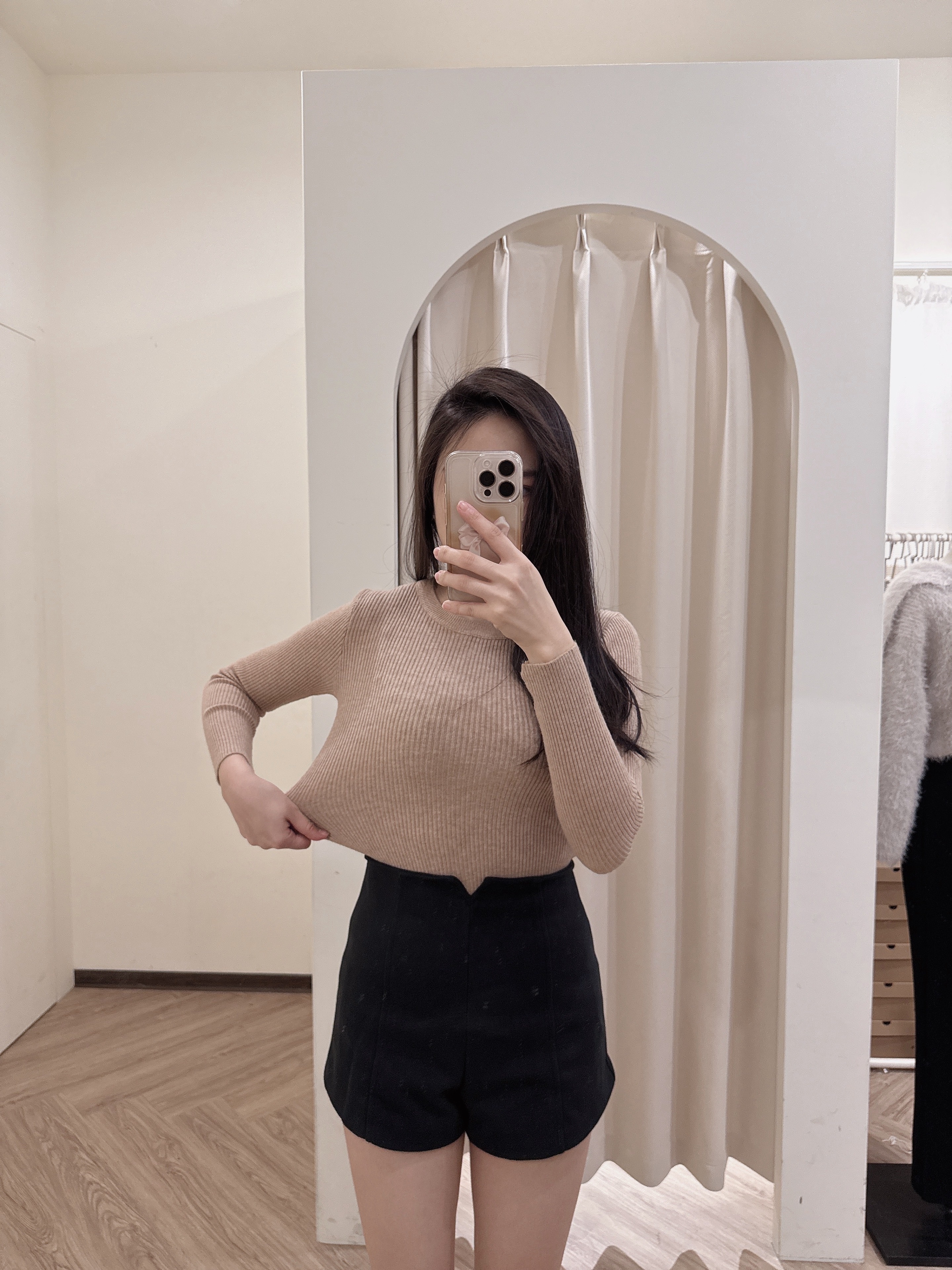 材質柔軟舒服的坑紋針織打底衣