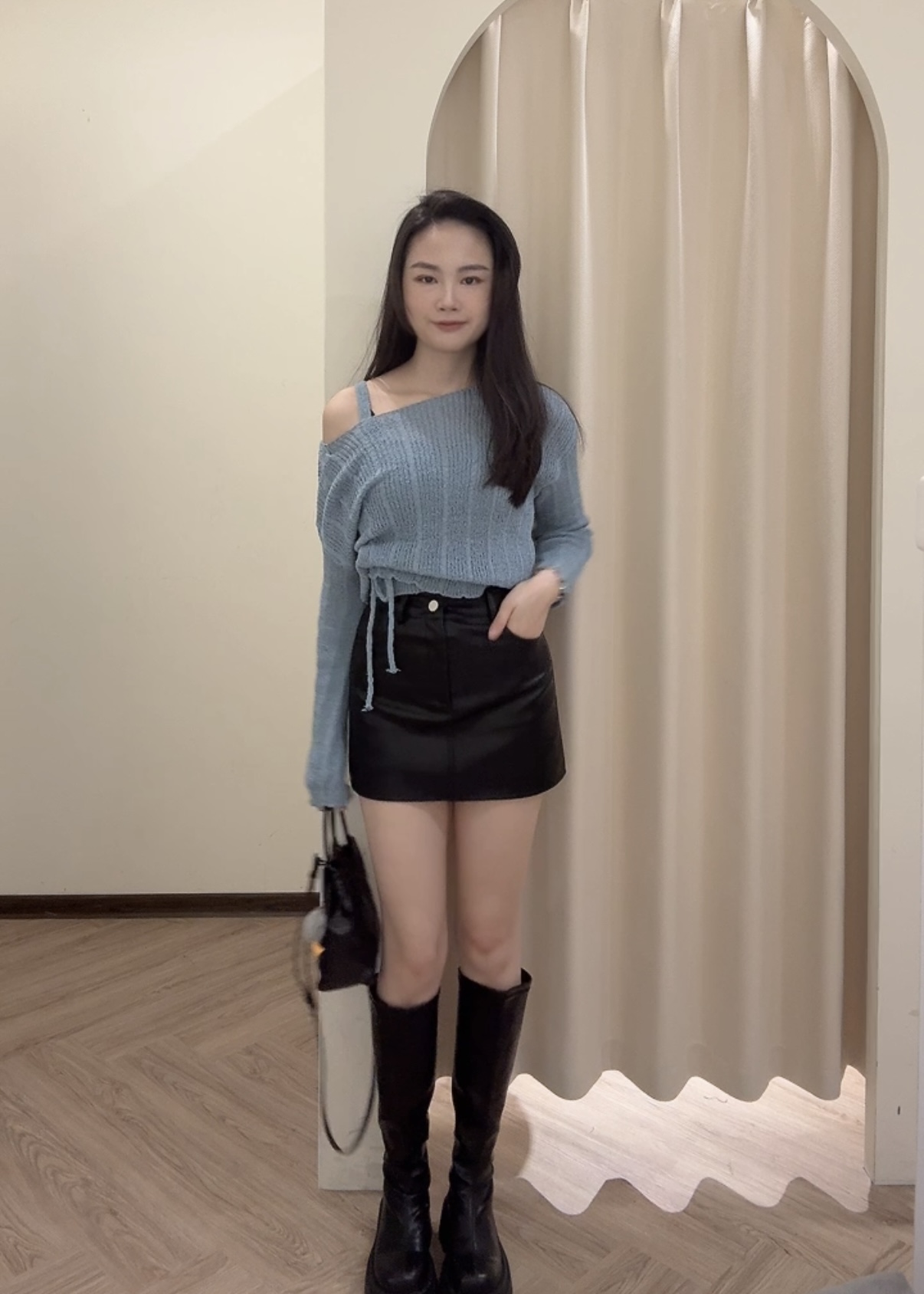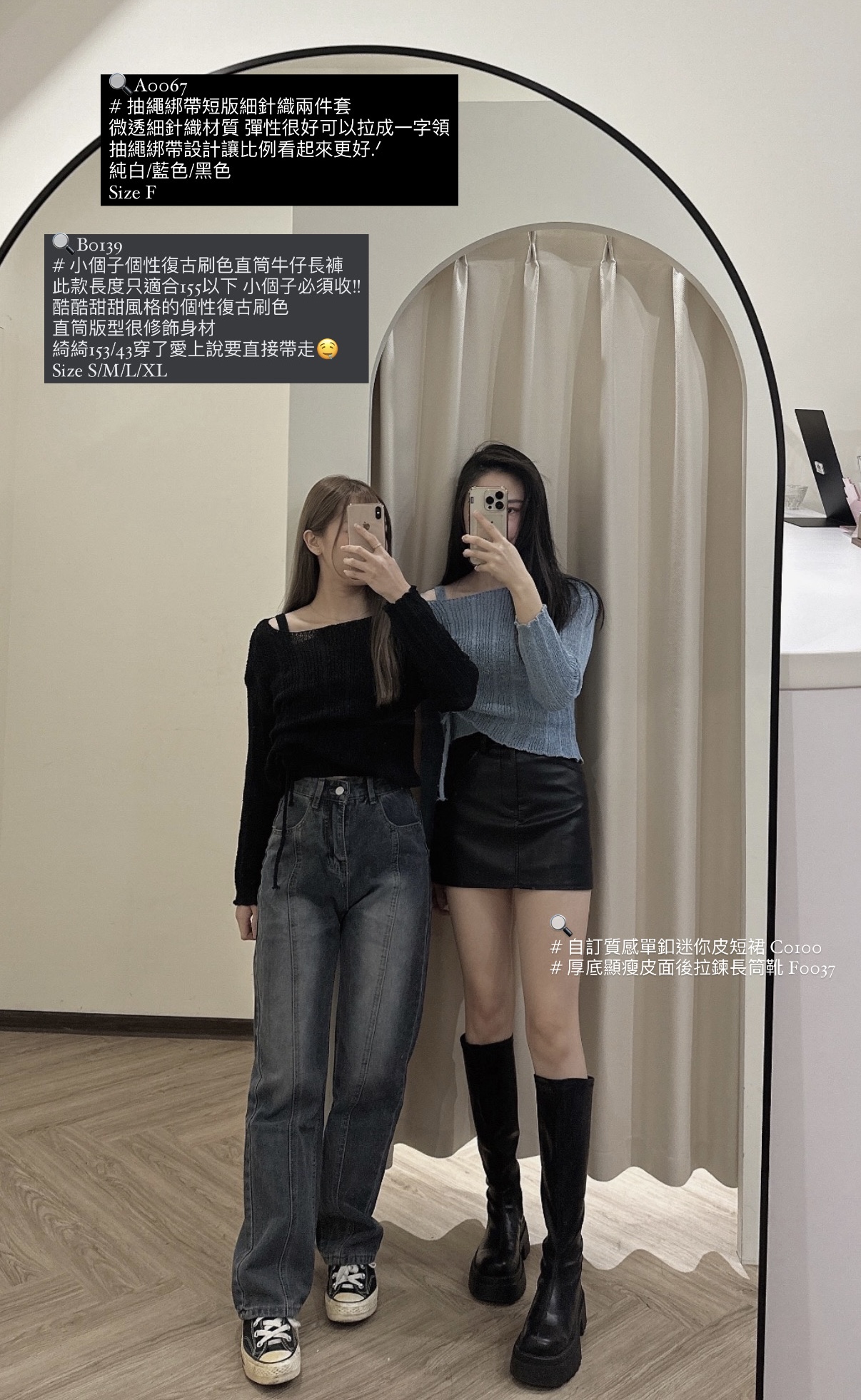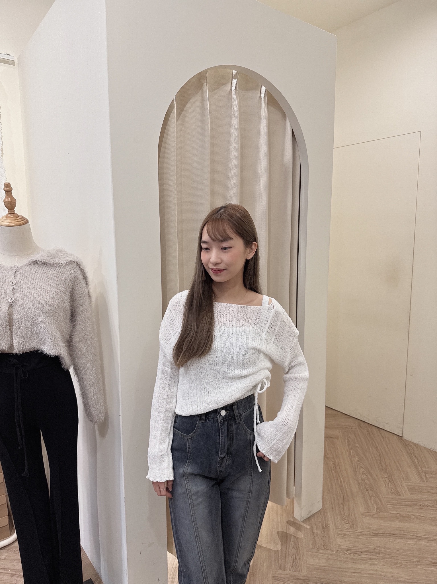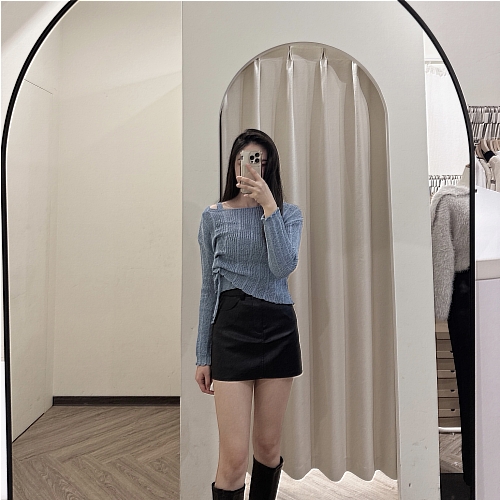 # 抽繩綁帶短版細針織兩件套