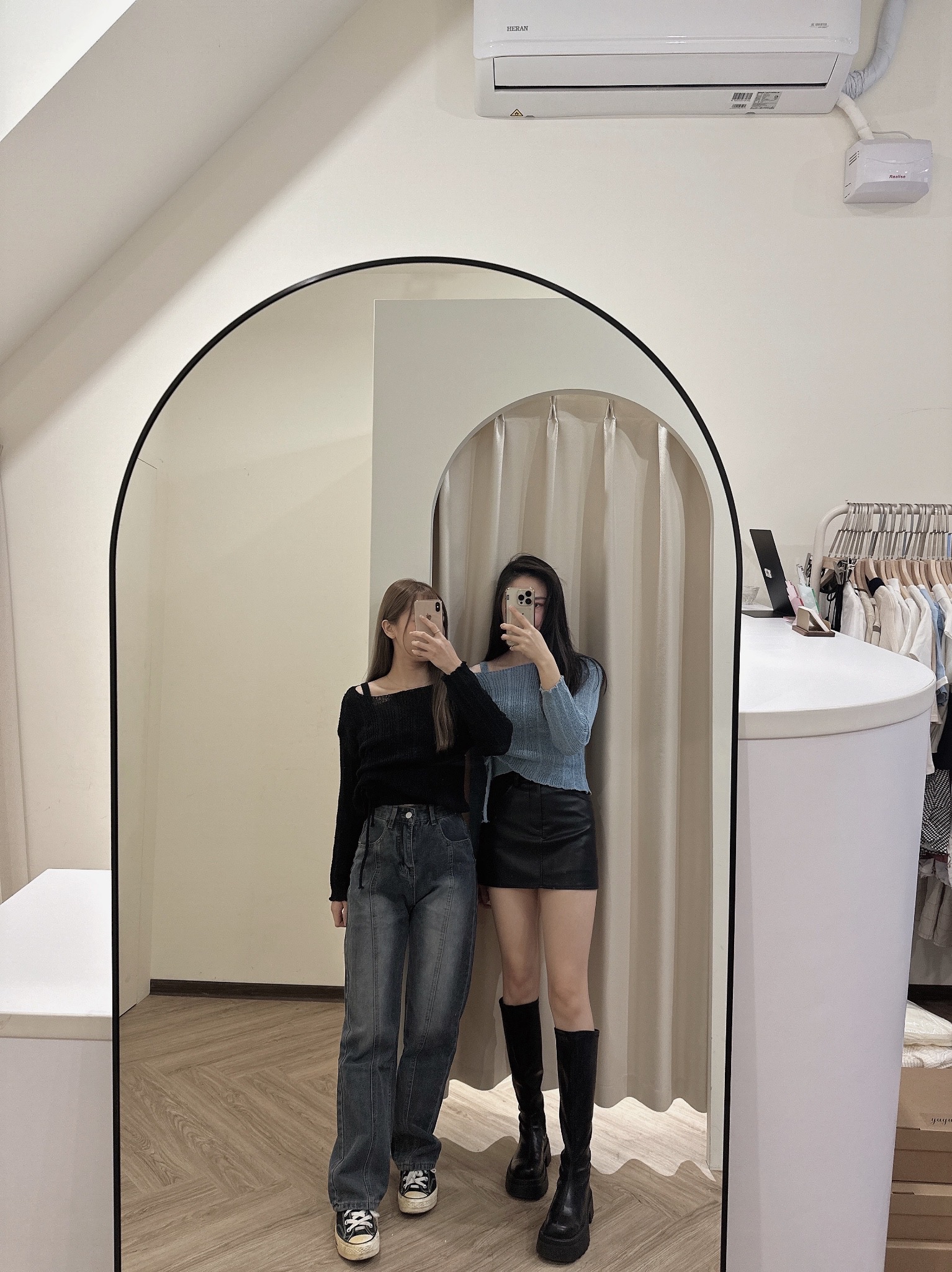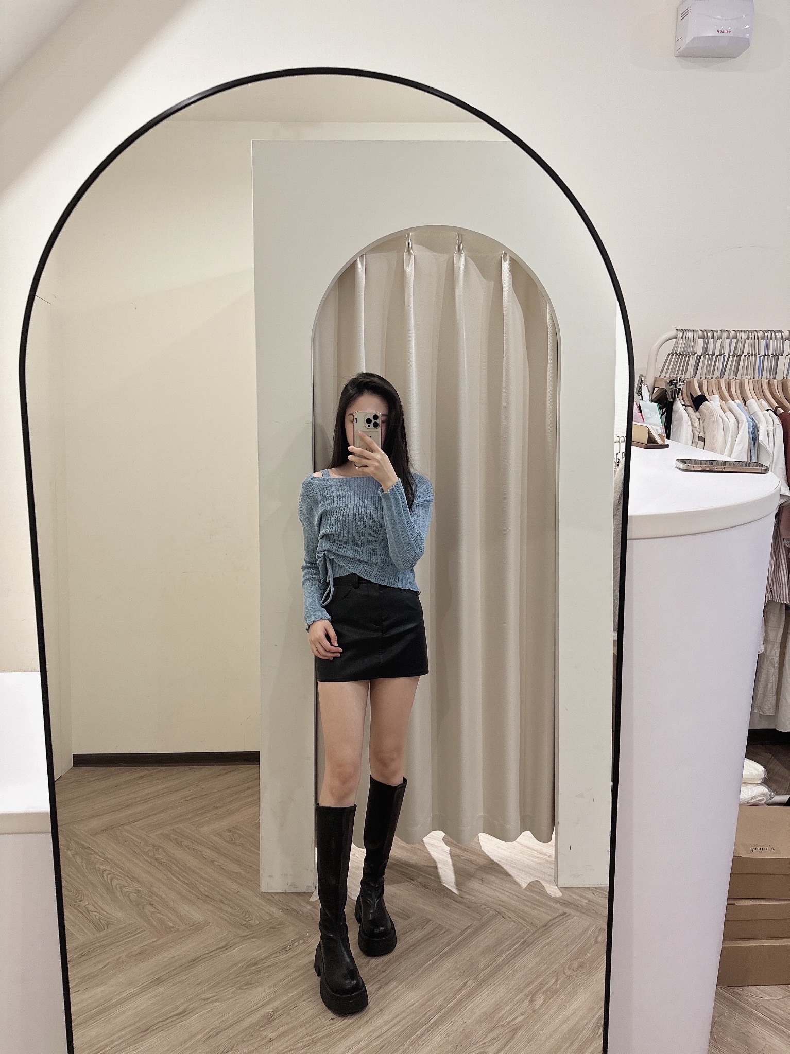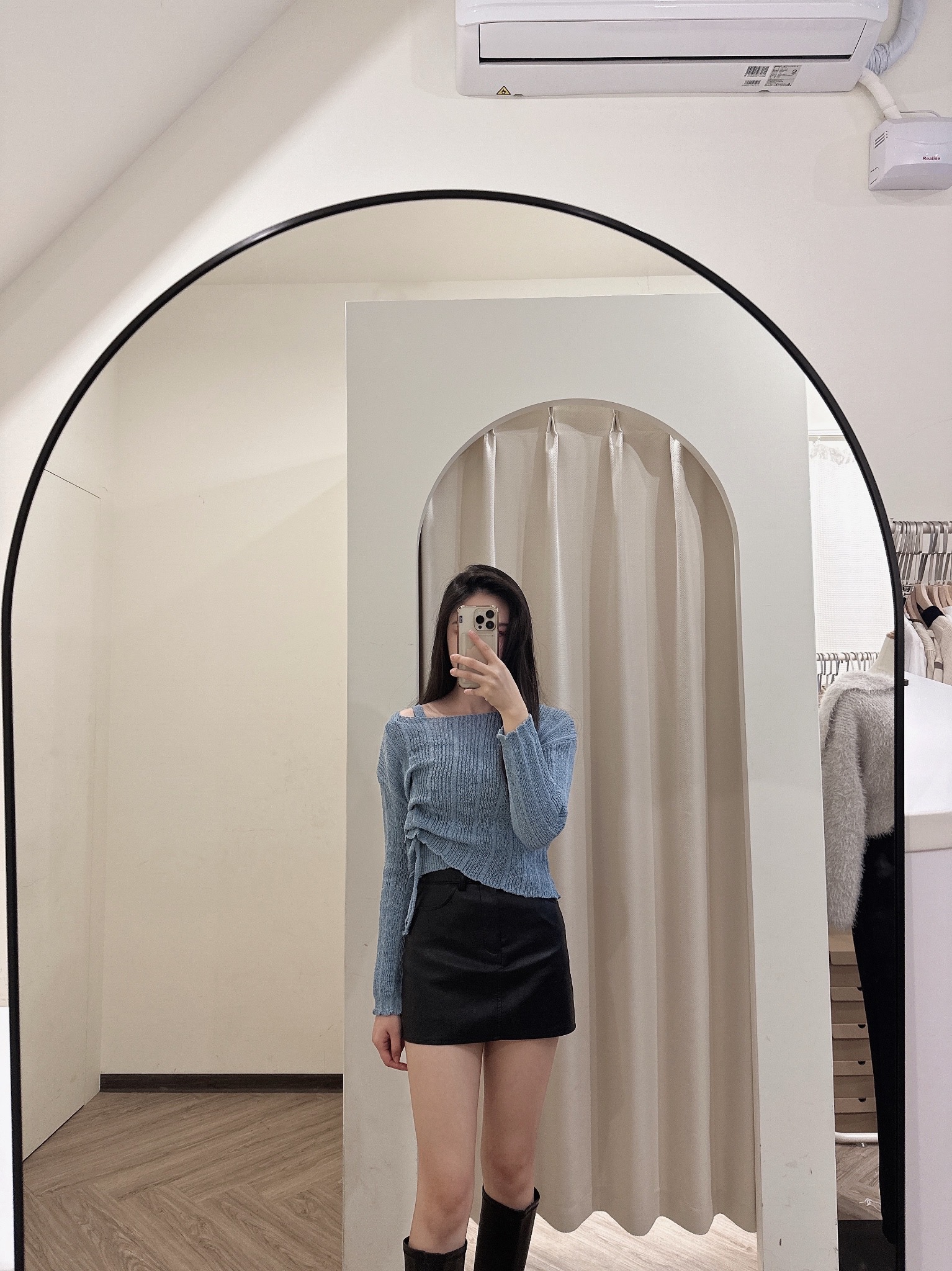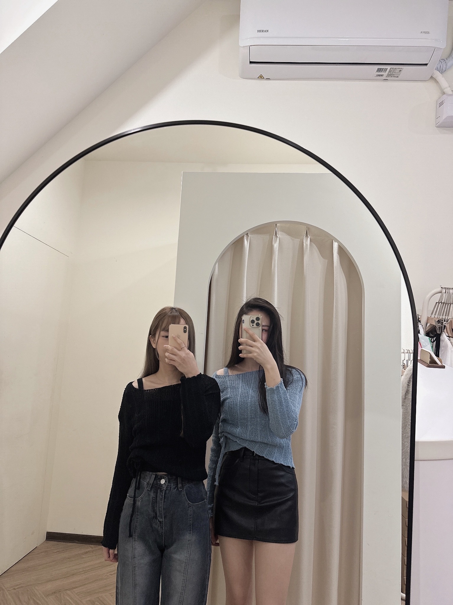 # 抽繩綁帶短版細針織兩件套