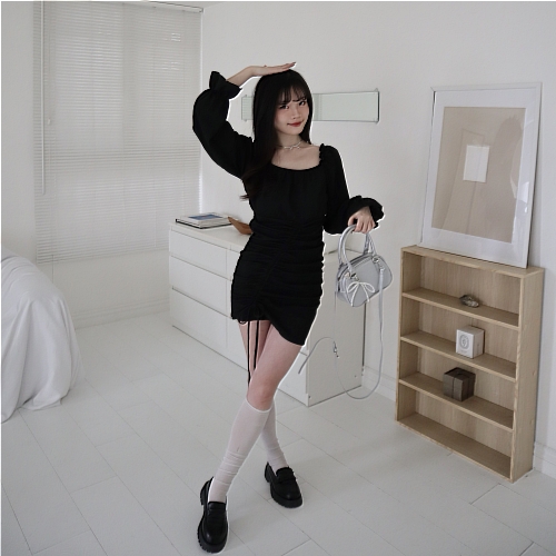 綁帶抽繩+側抓皺 版型非常修飾身材