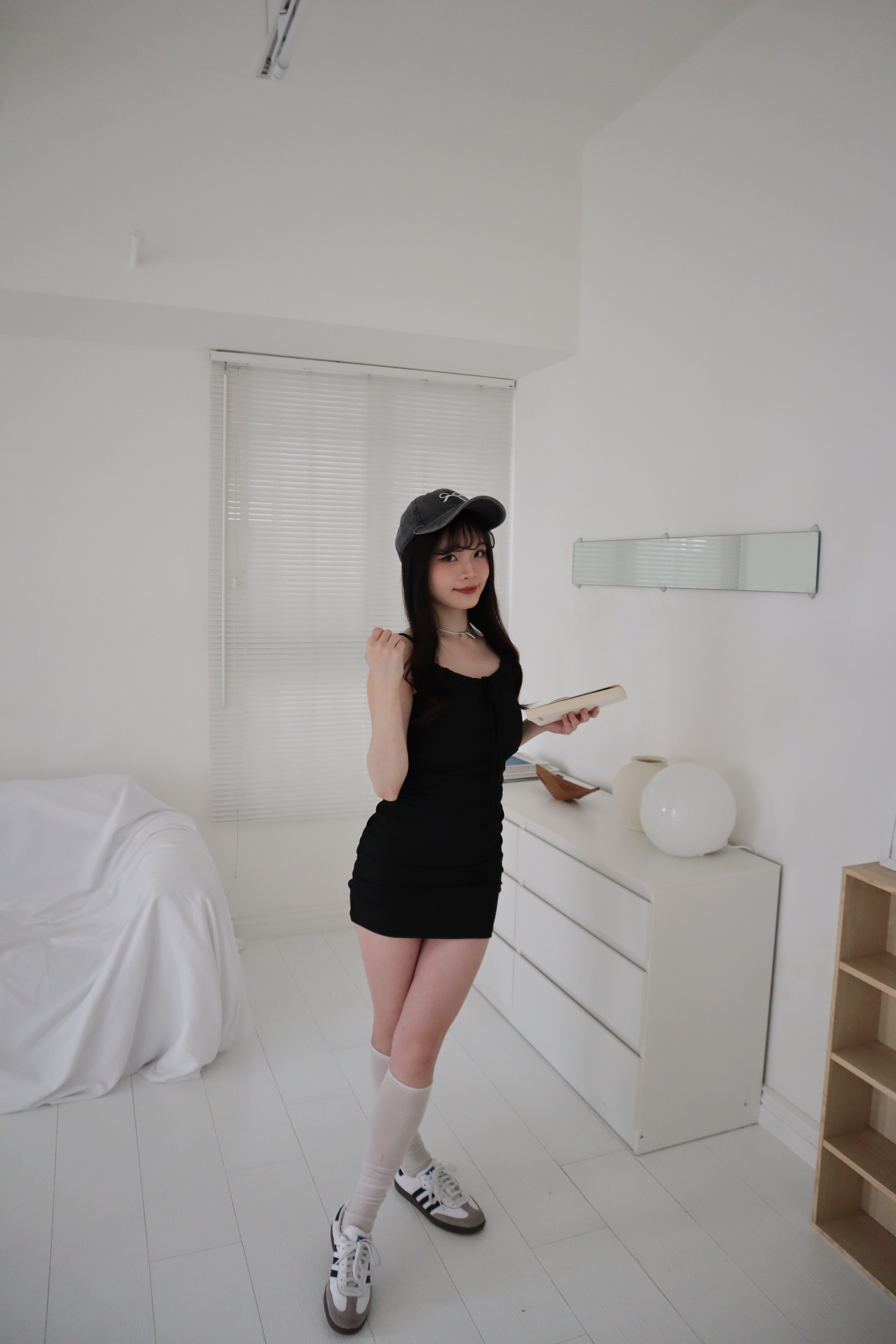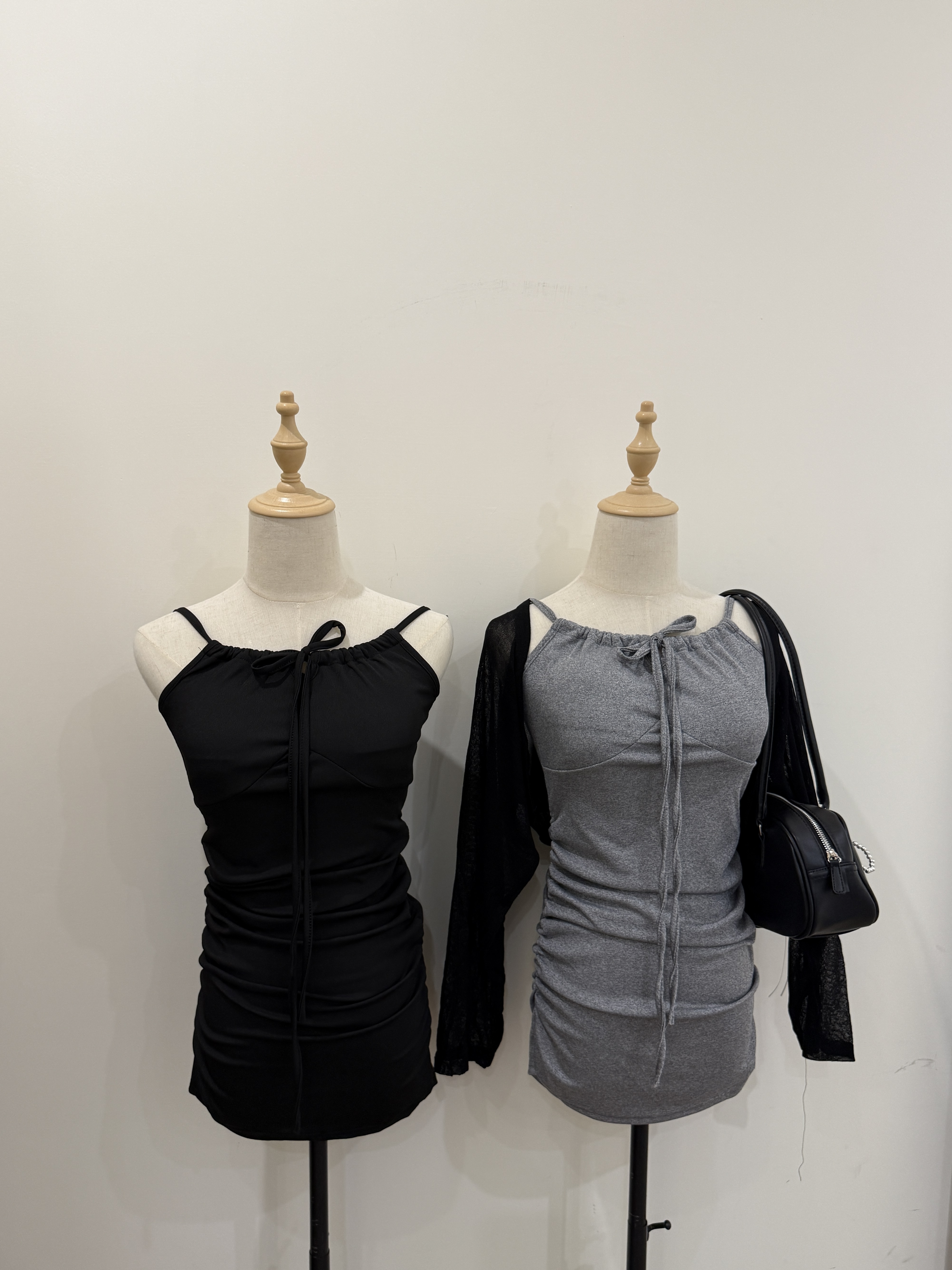 細肩帶+側抓皺包臀設計很顯身材.ᐟ