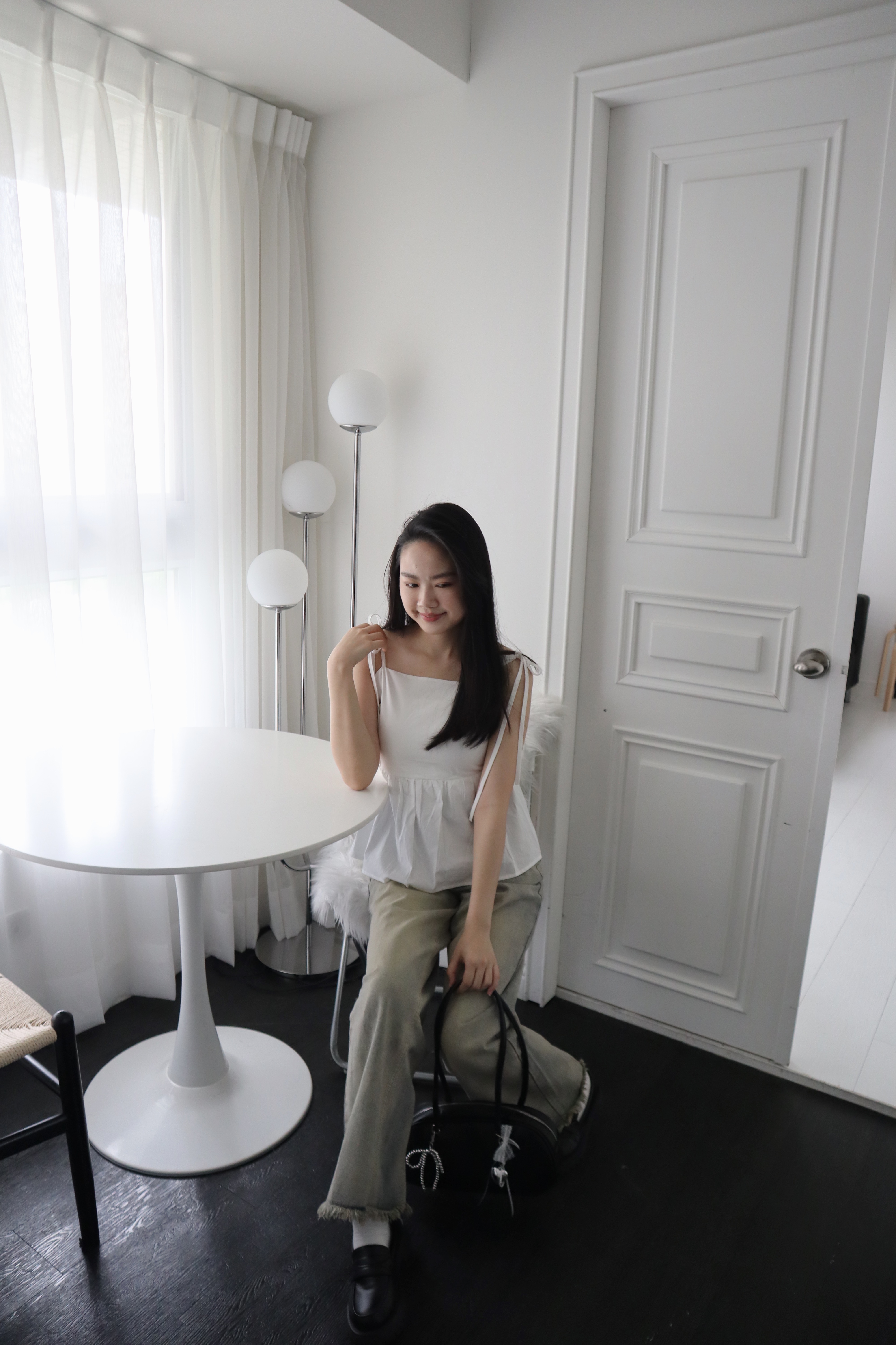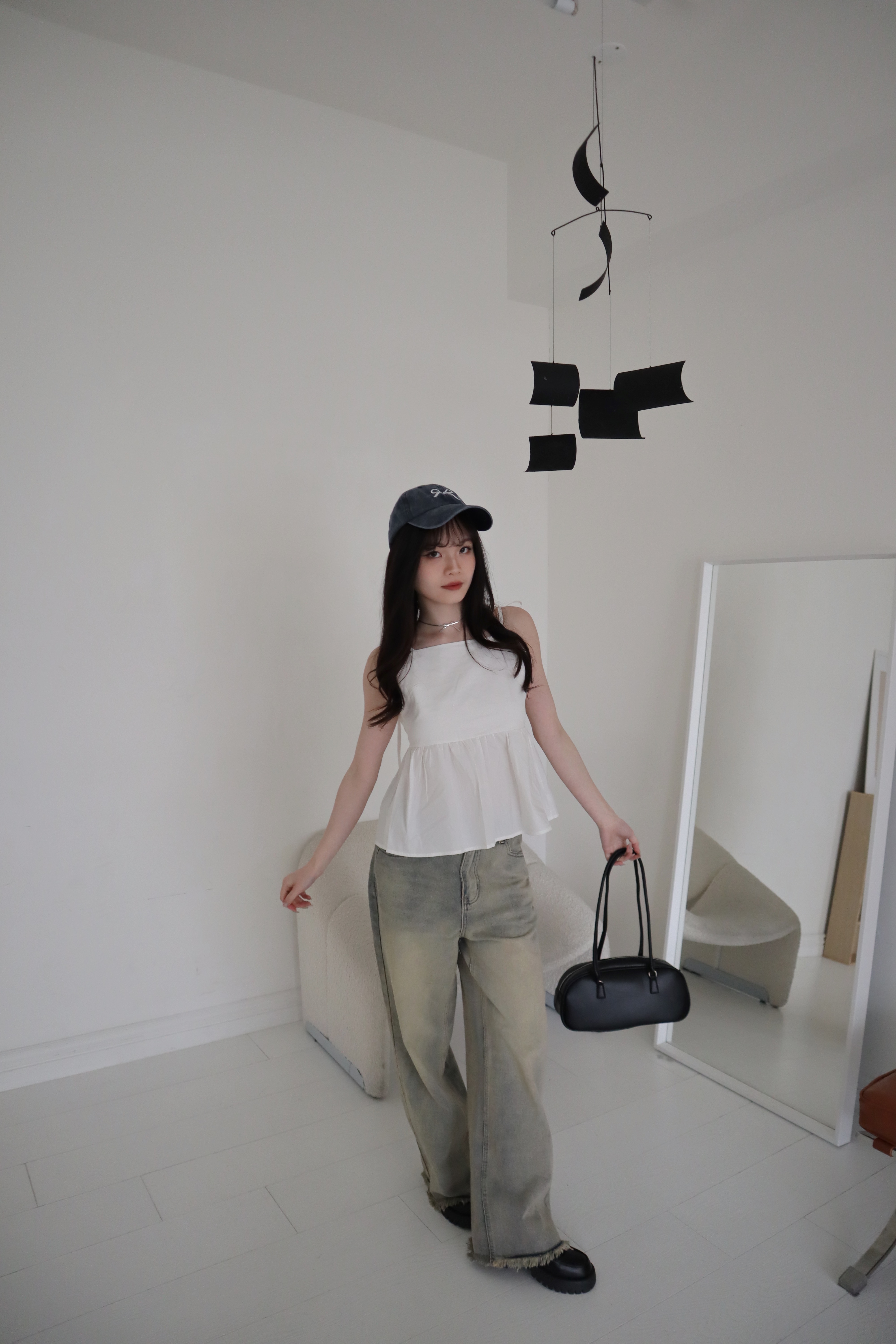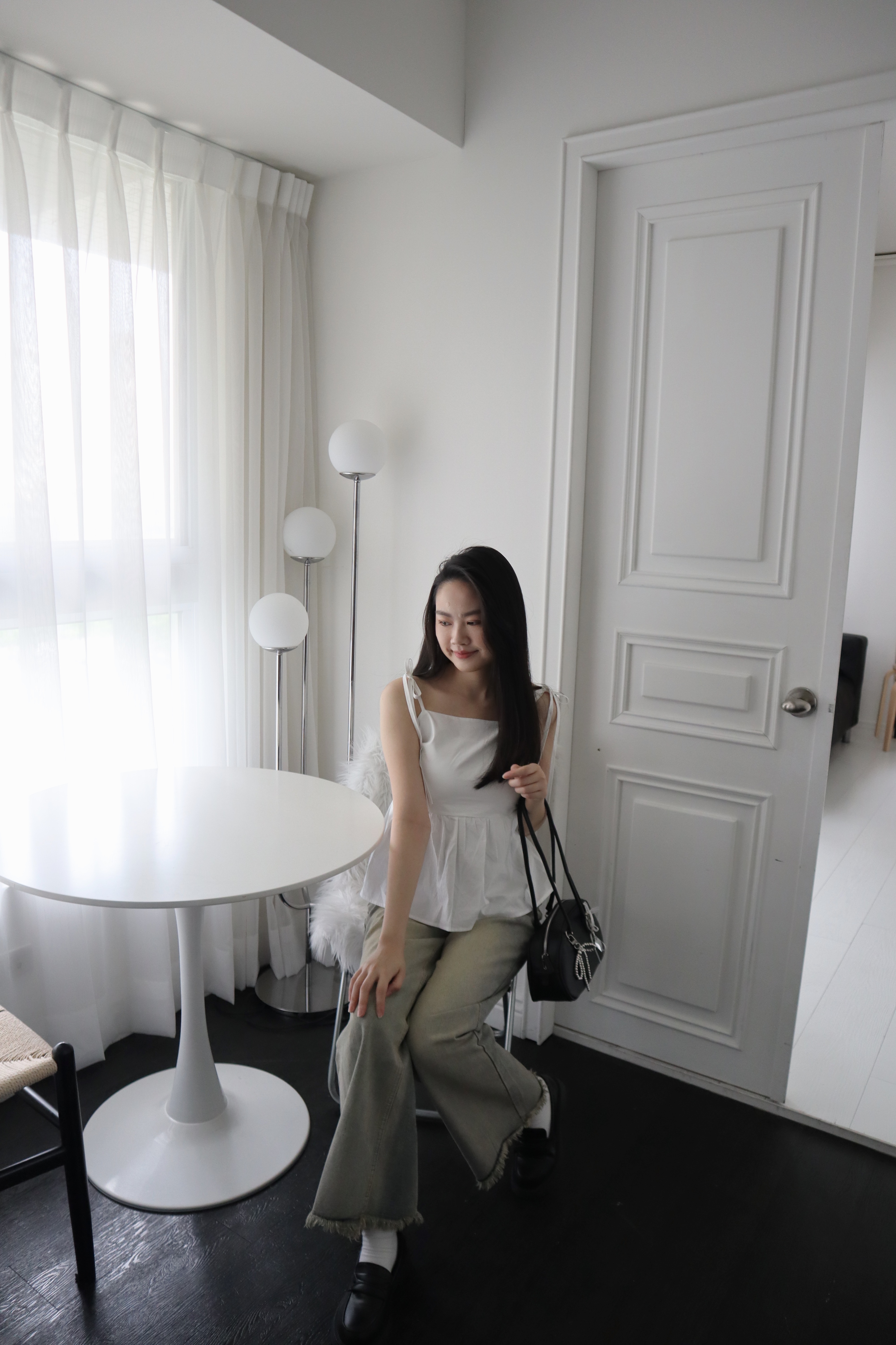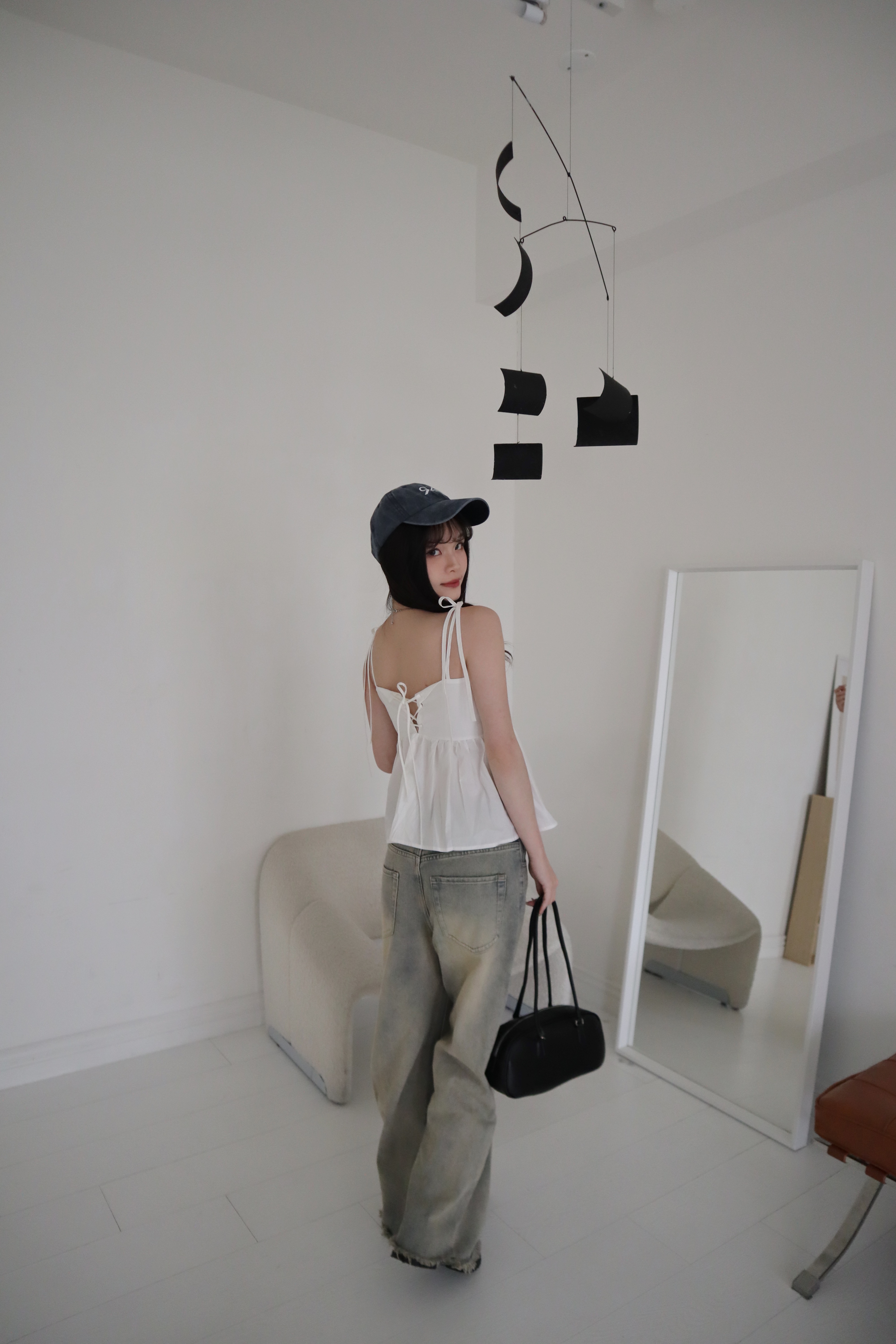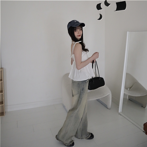 # 交叉綁帶荷葉邊細肩背心