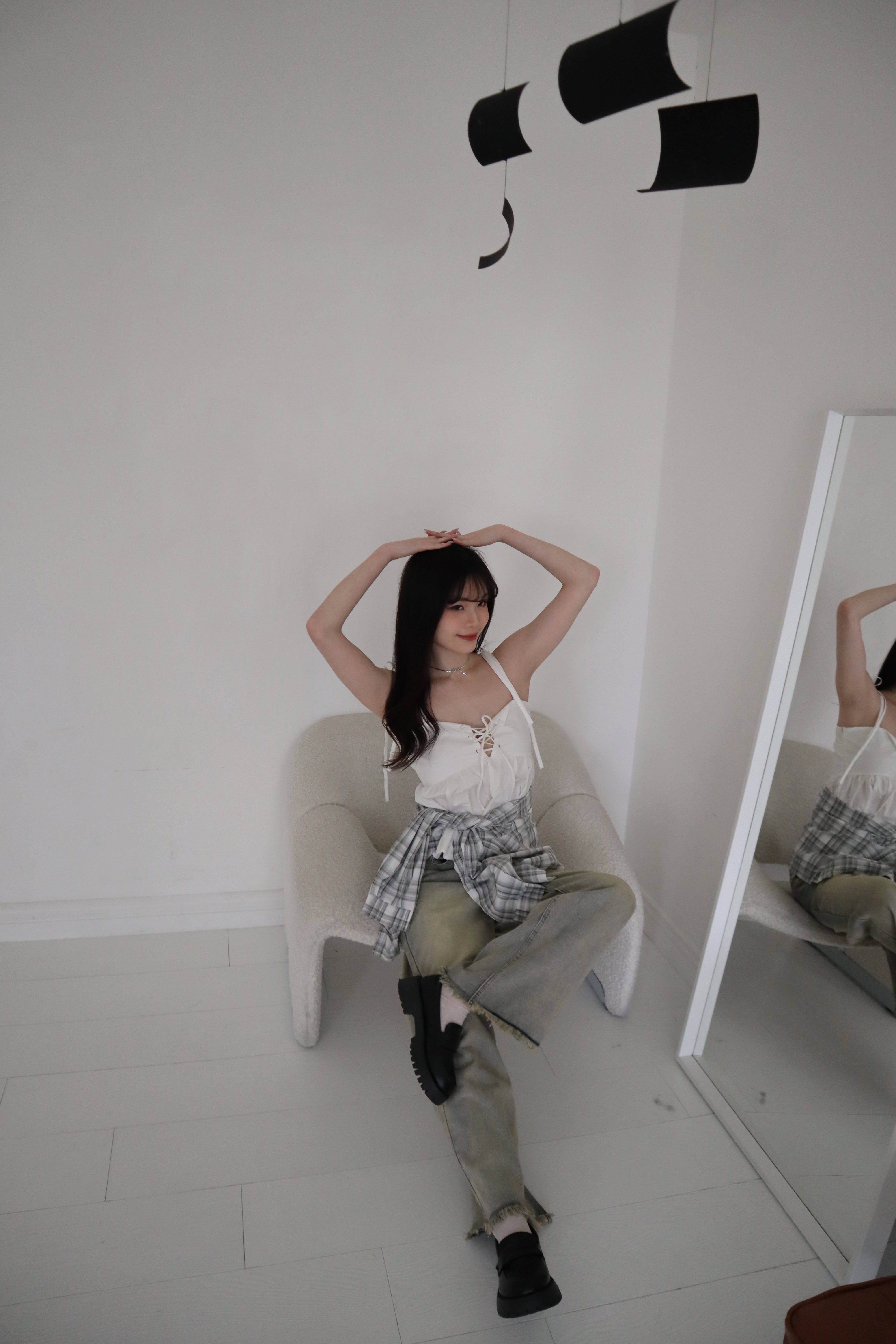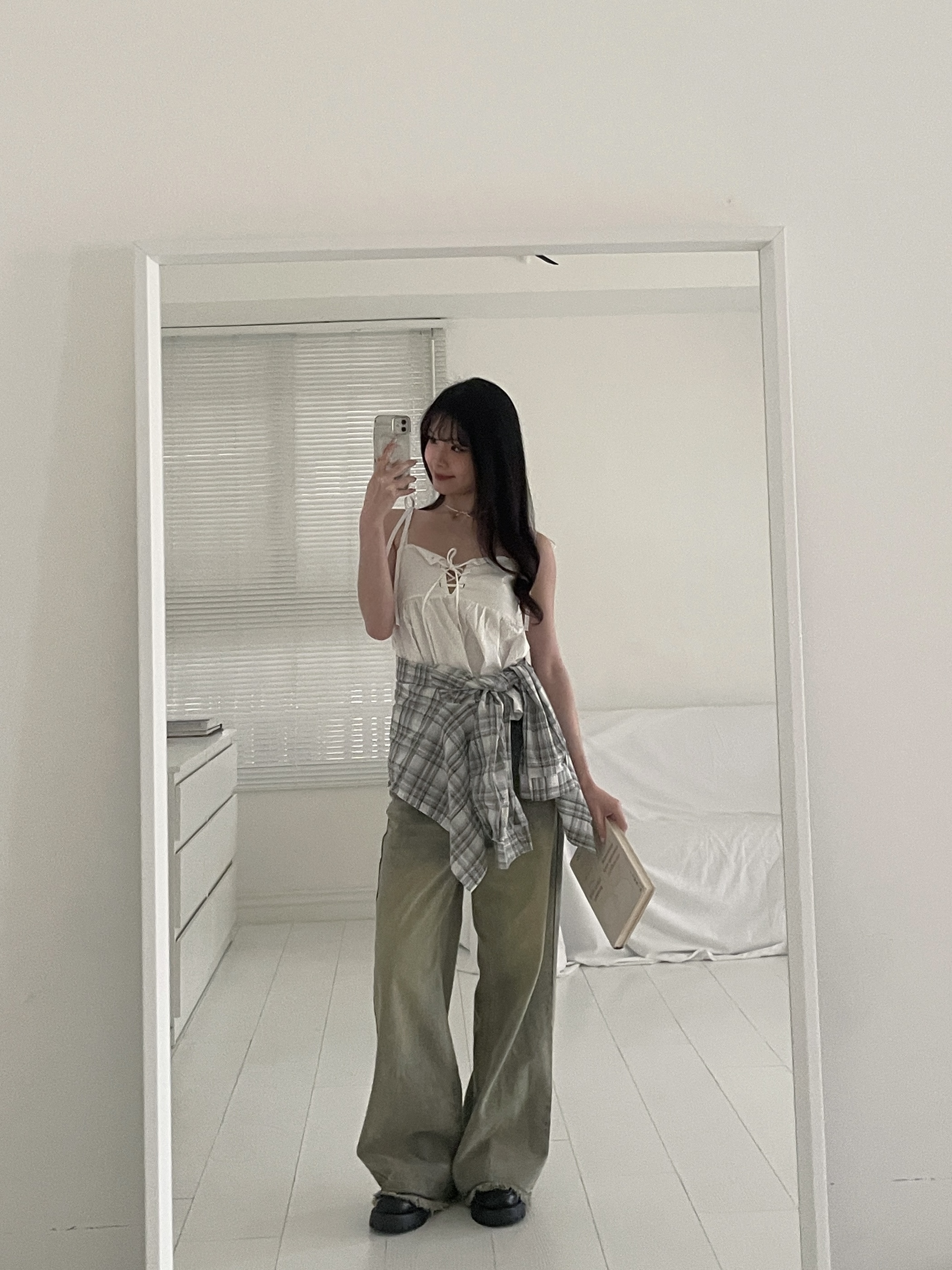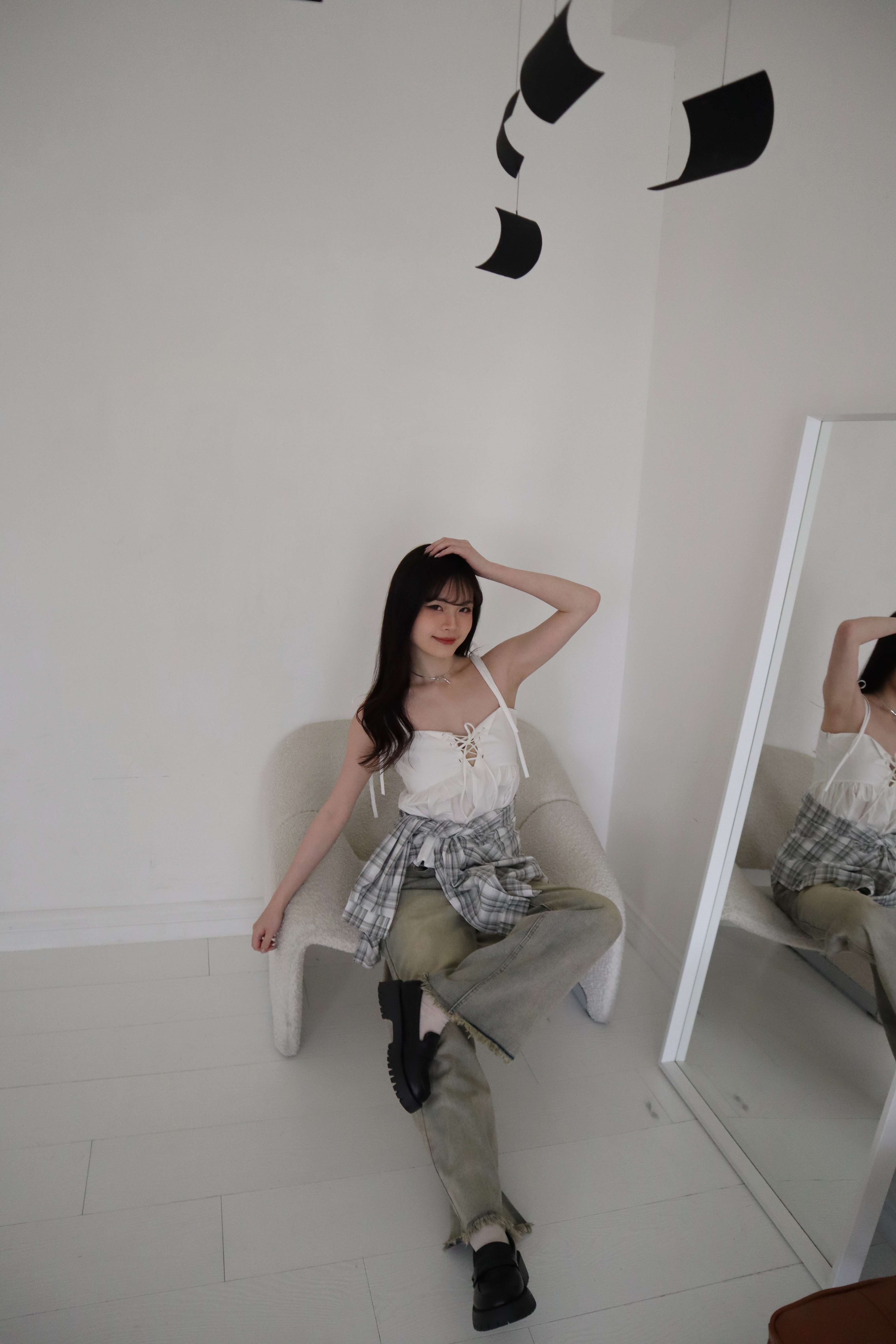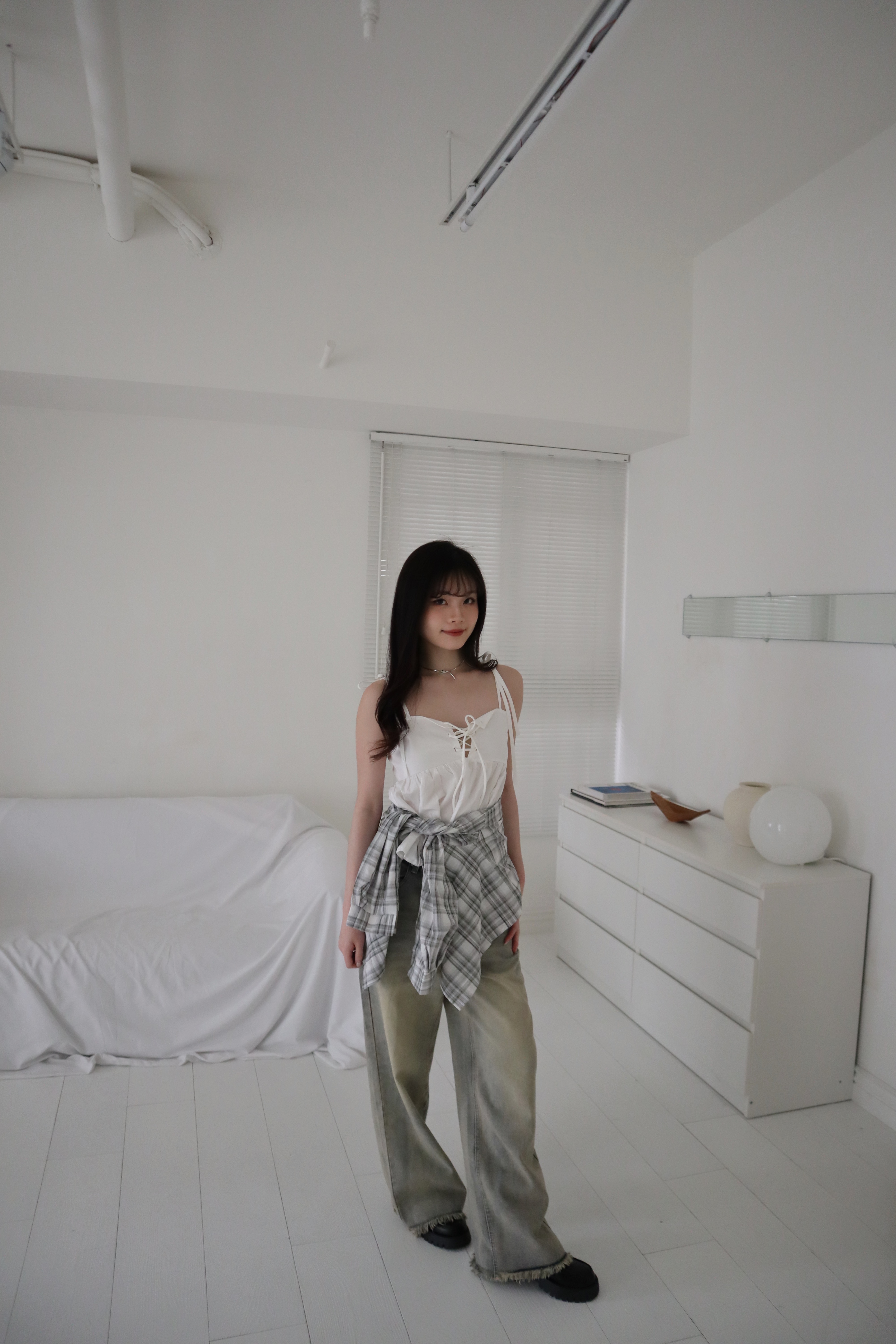 # 交叉綁帶荷葉邊細肩背心