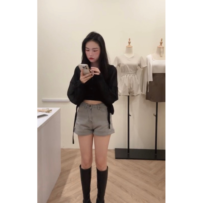 #版型偏小顯瘦單釦高腰彈性牛仔短褲