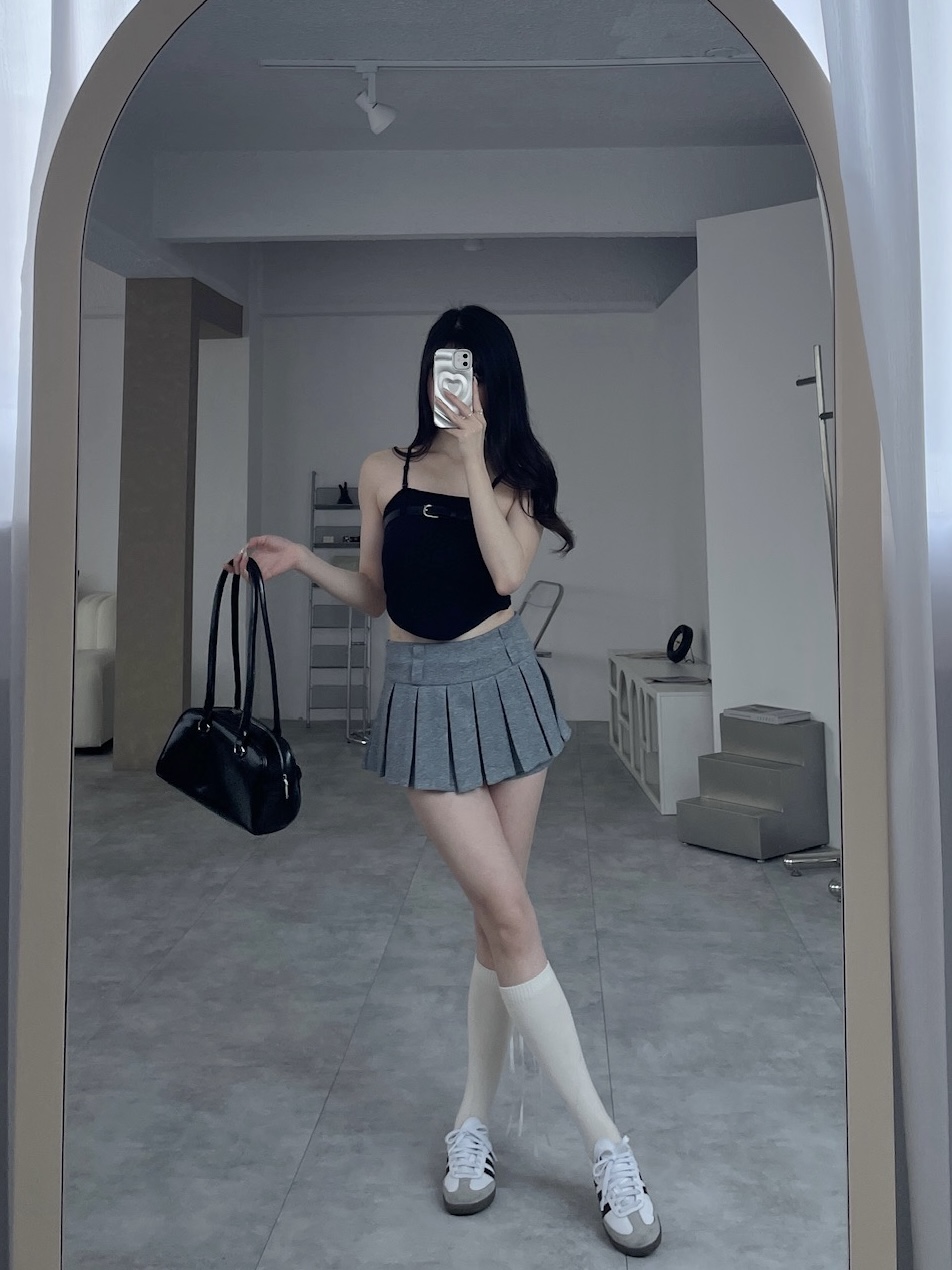 厚磅棉質穿起來很顯瘦 褲裙設計不怕走光