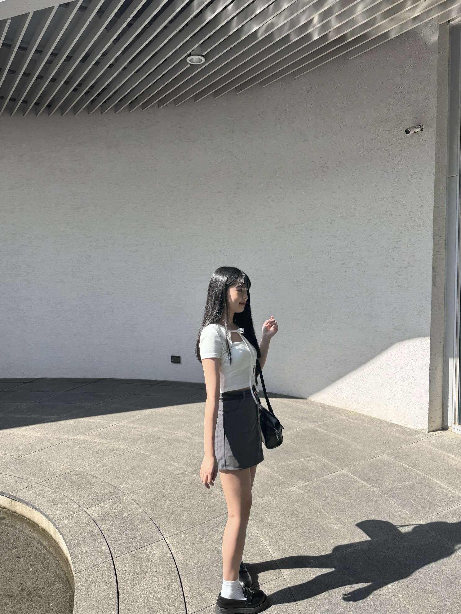 # 微甜綁帶 | 自帶bra簍空綁帶短袖