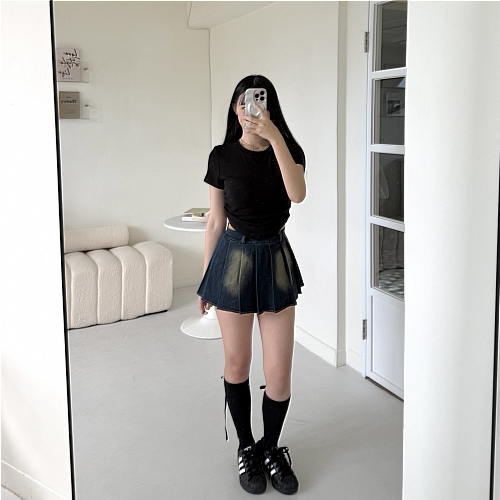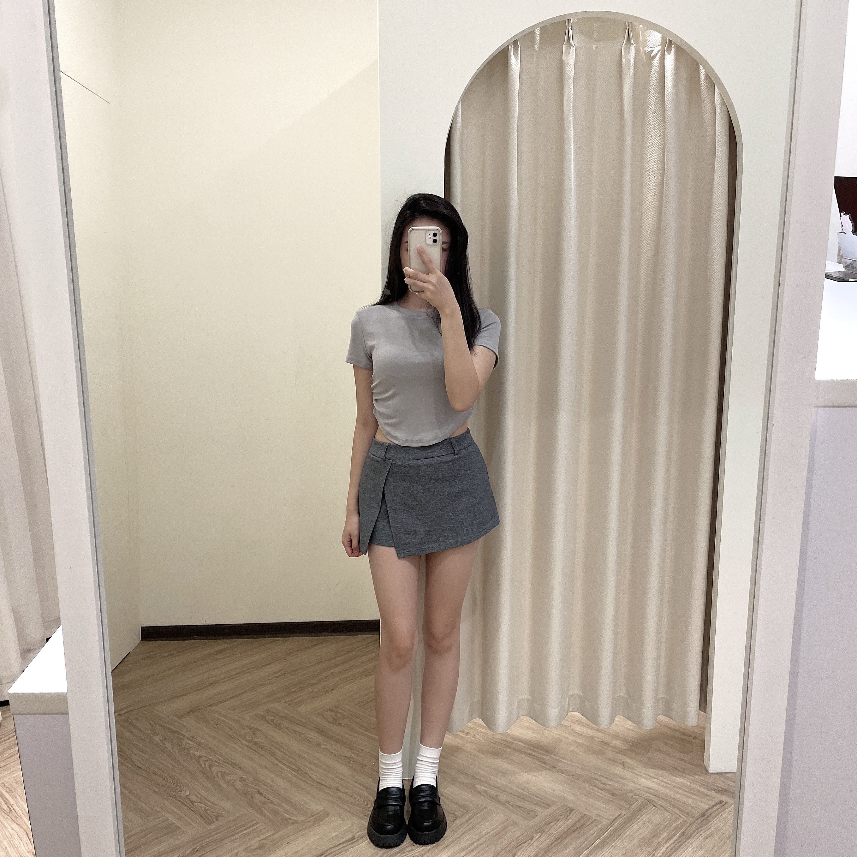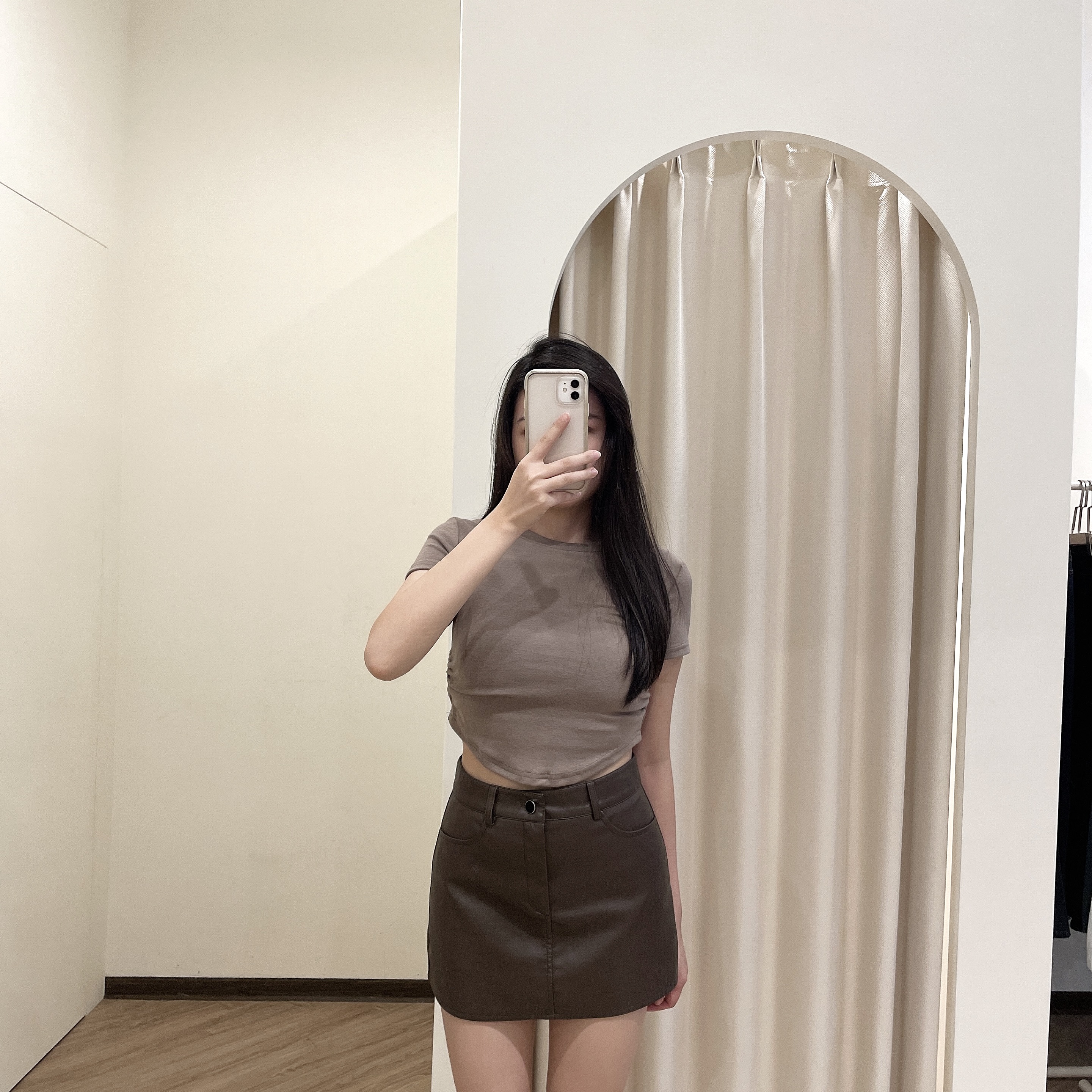 建議包色!! # 柔軟彈性棉抓皺素色短T
