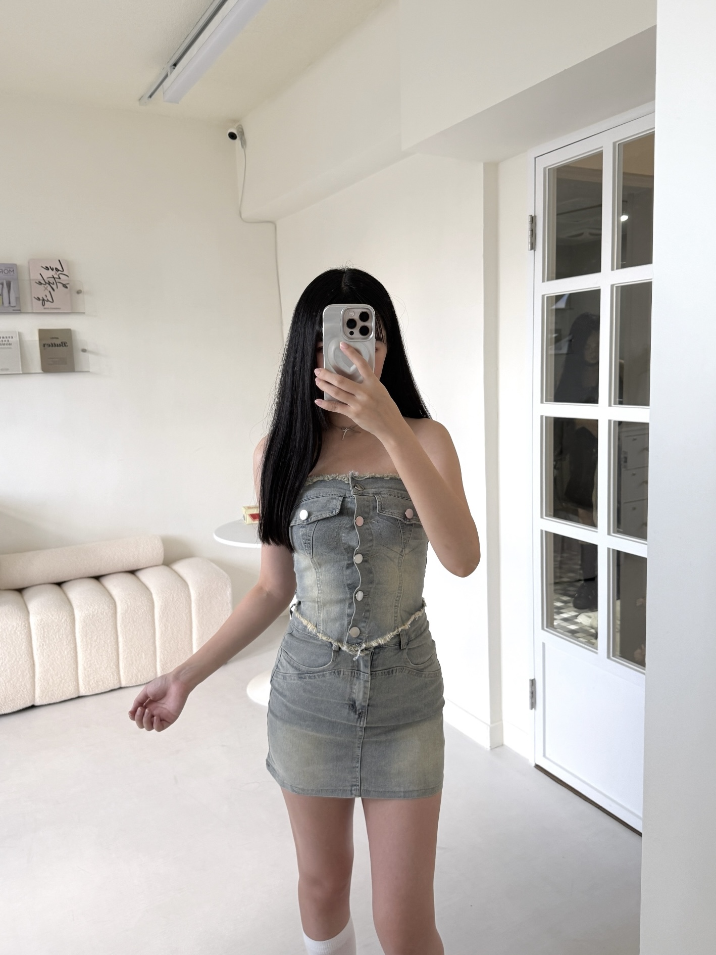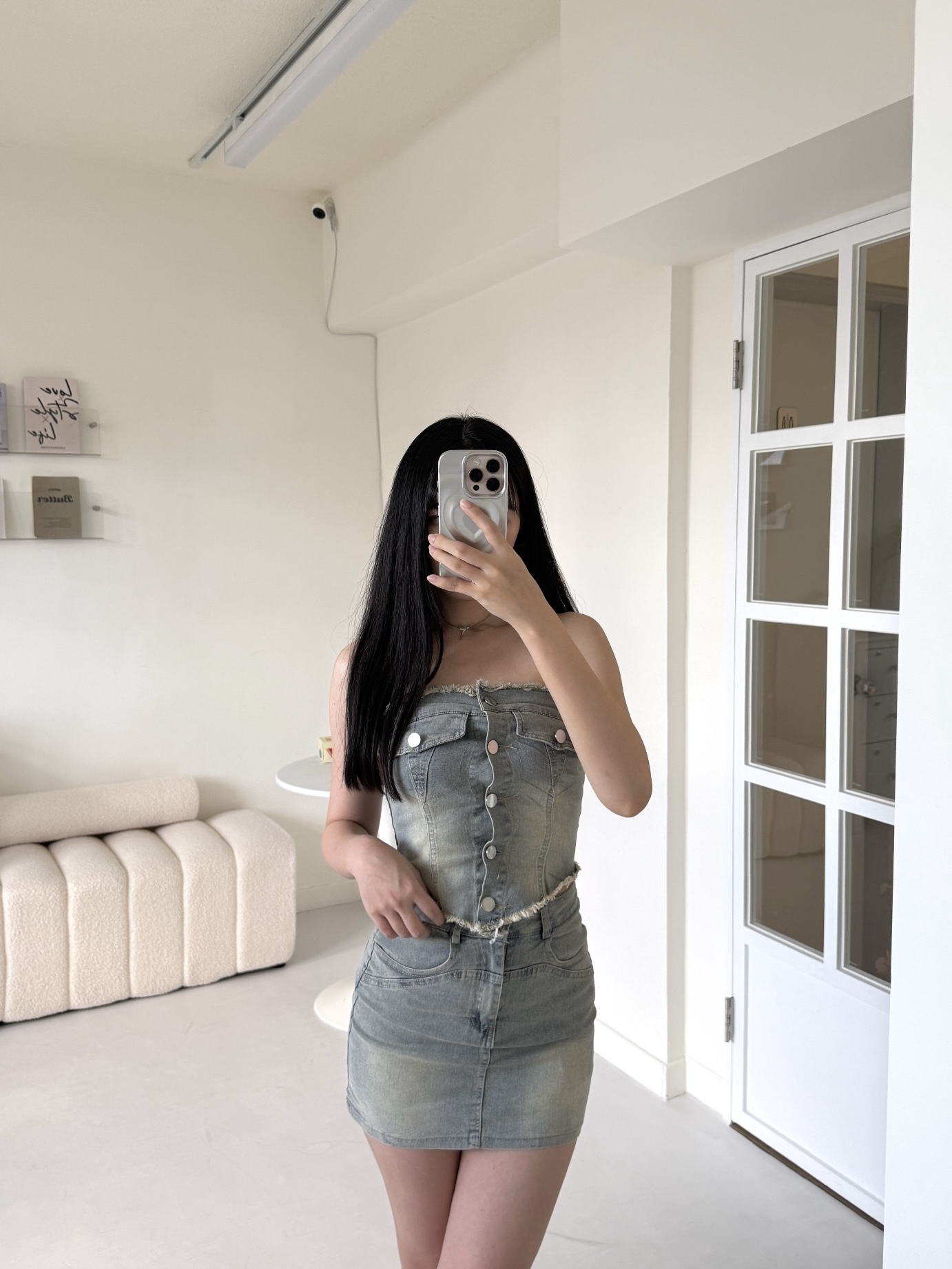 合身剪裁+刷色 排扣平口的線條很顯身材