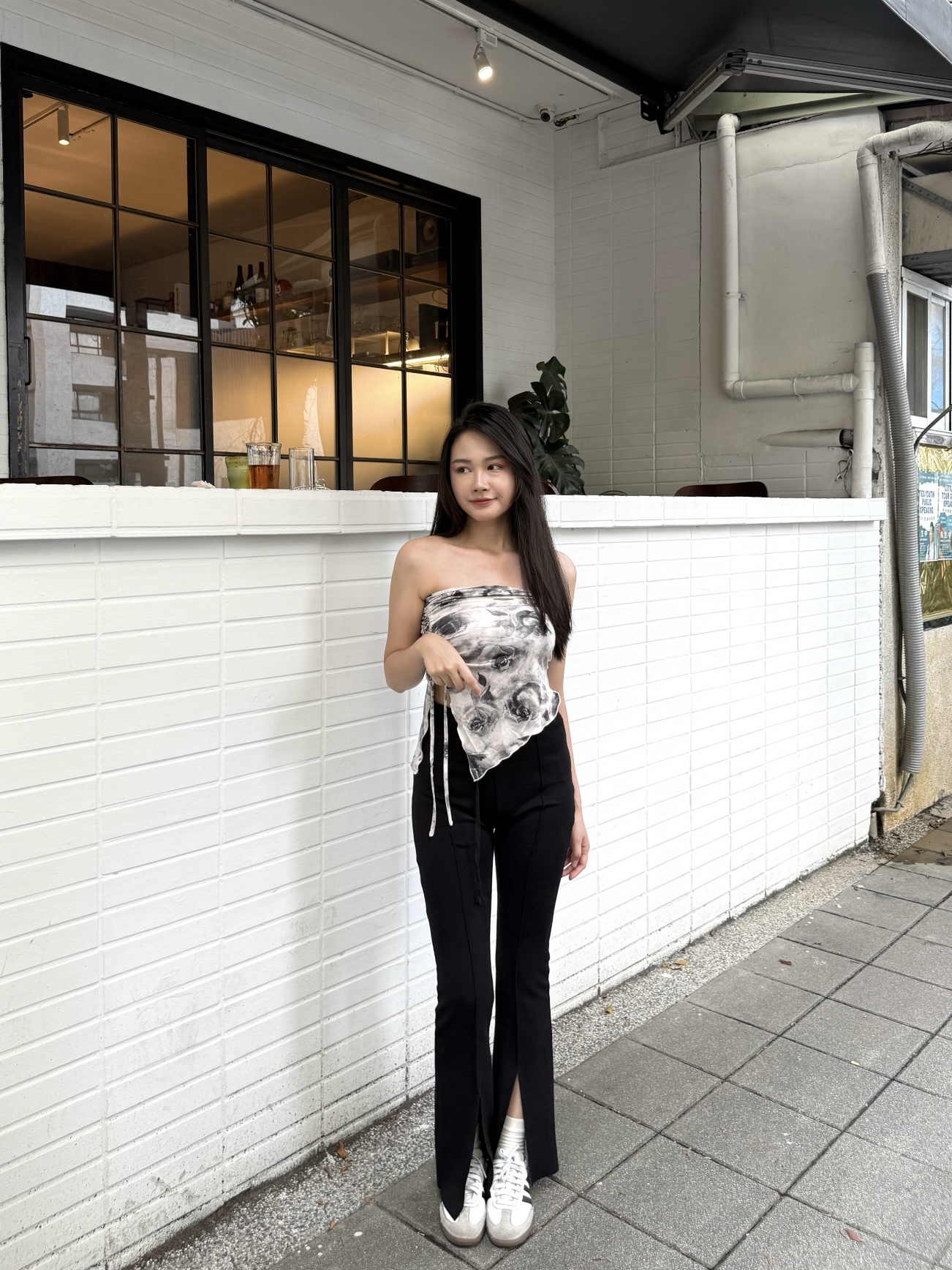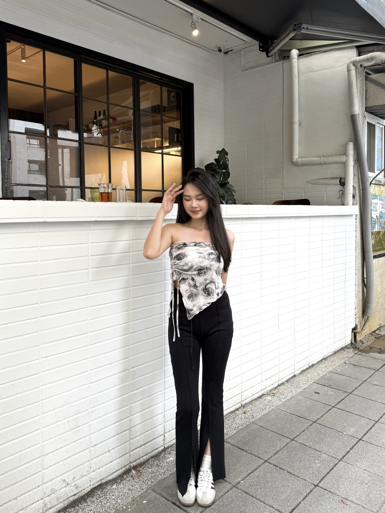 冷淡感的灰階玫瑰搭配抽皺不對稱下擺