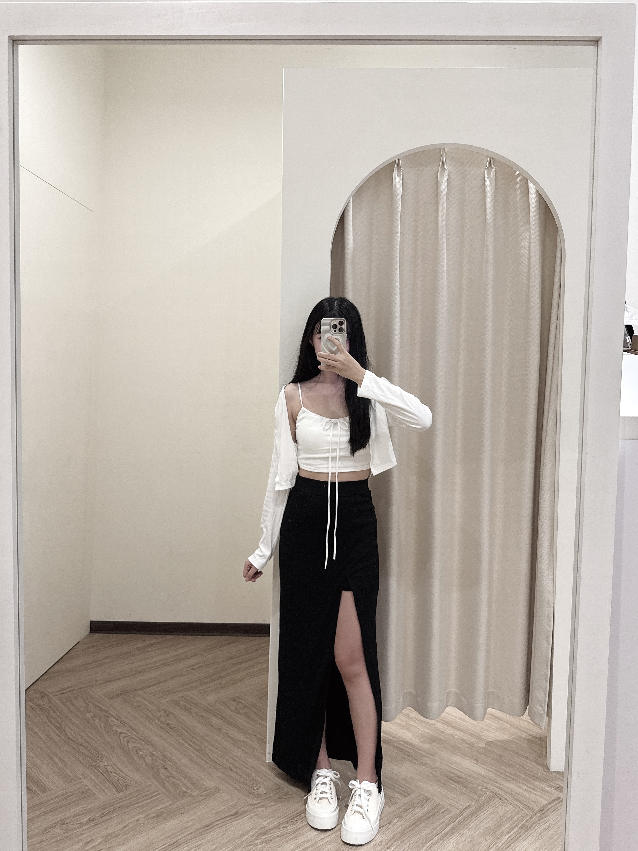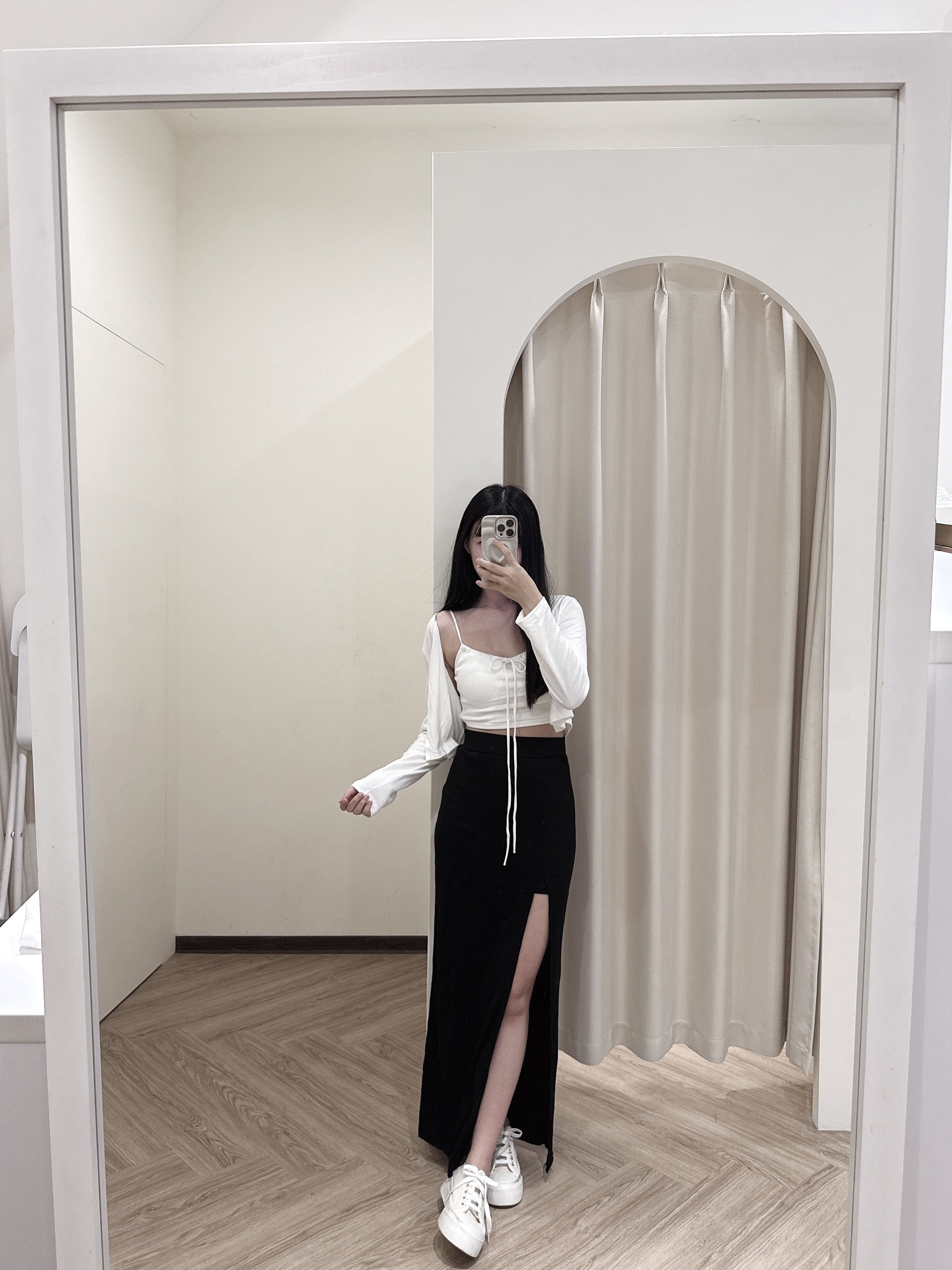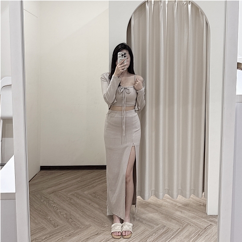 綁帶背心.小外套.長裙3件組 附胸墊 內有安全褲