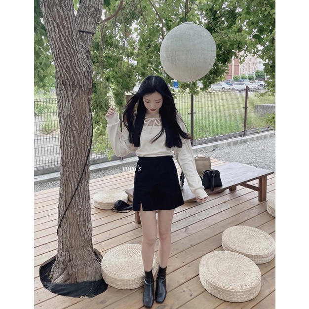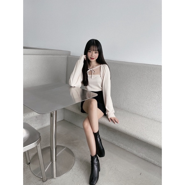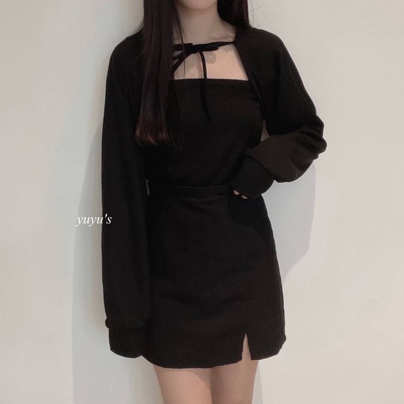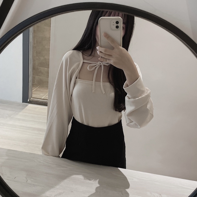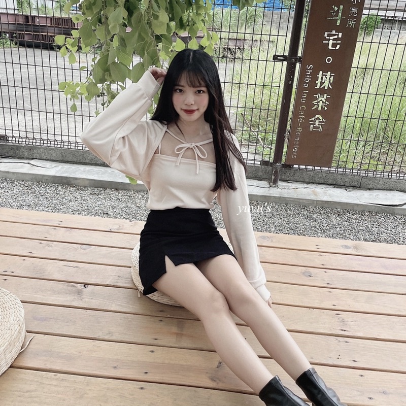 #版型偏小螺紋綁帶澎袖兩件式套裝 闆娘自留~