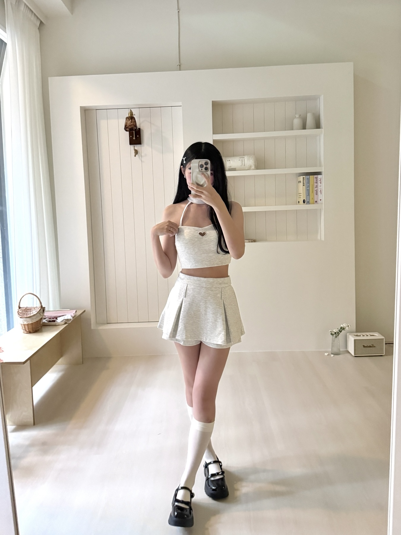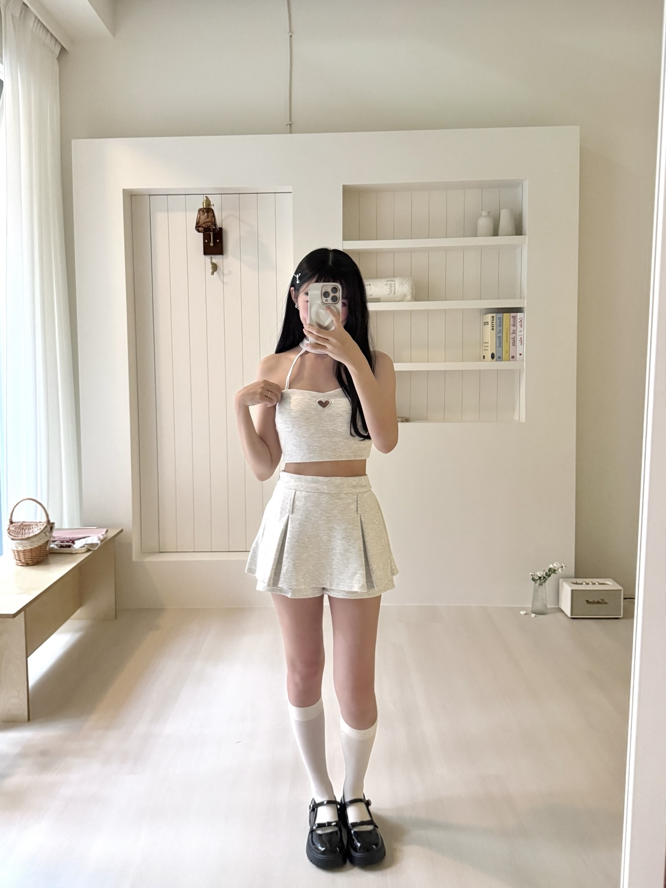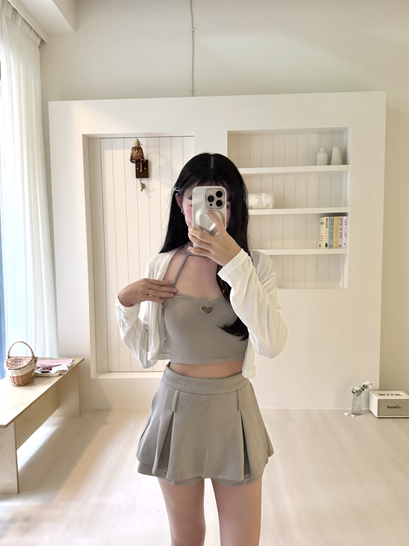 # 掛脖胸簍空愛心裙set