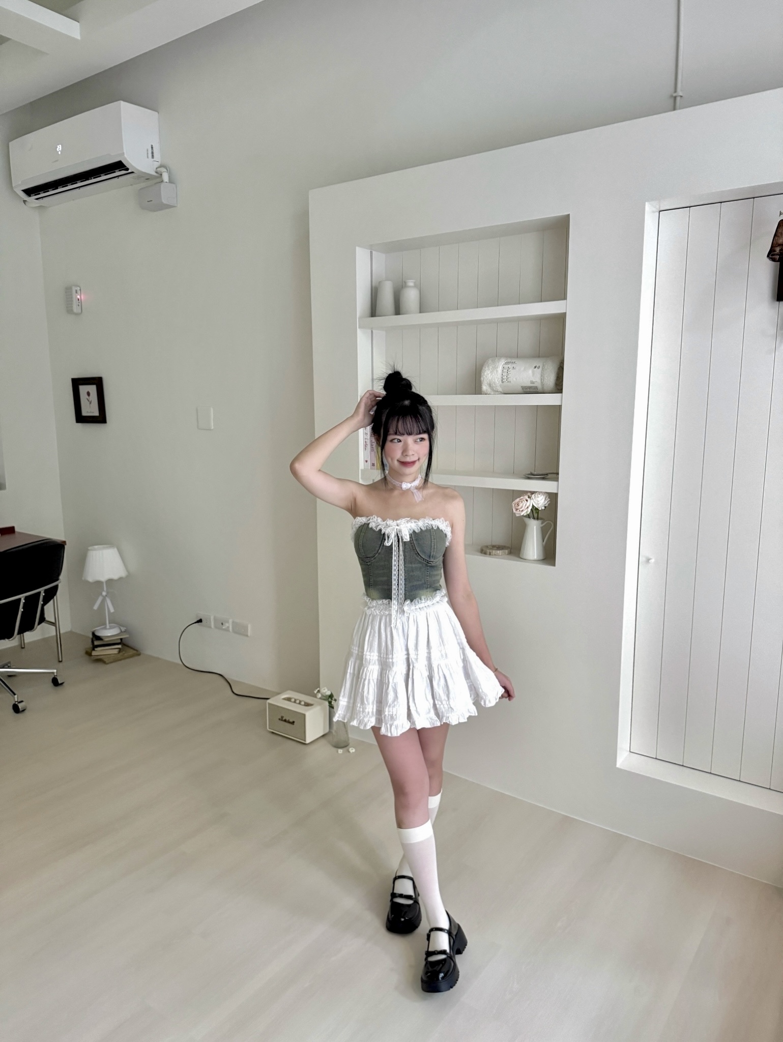 復古刷色丹寧搭上甜美蕾絲౨ৎ