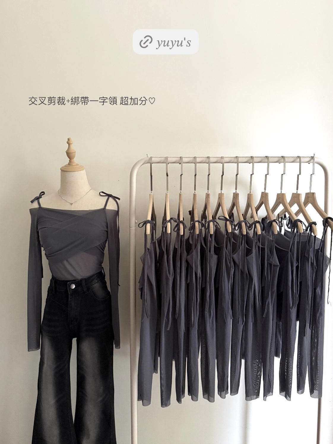 交叉剪裁+綁帶一字領很加分౨ৎ