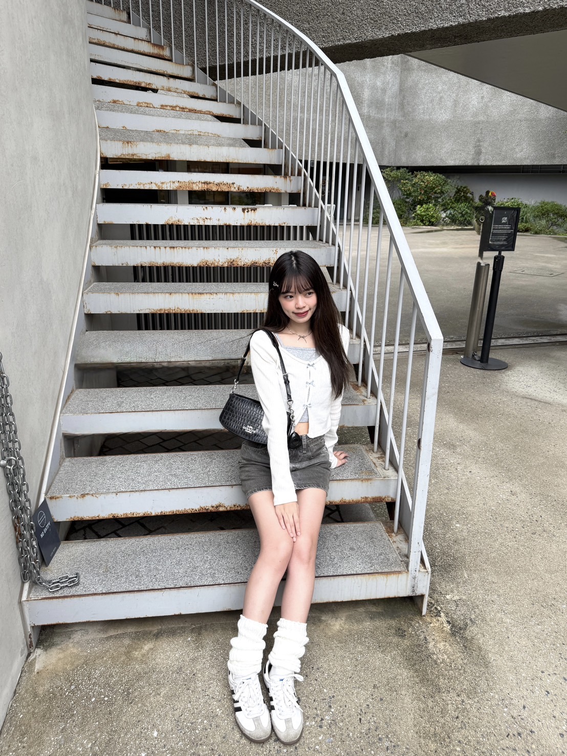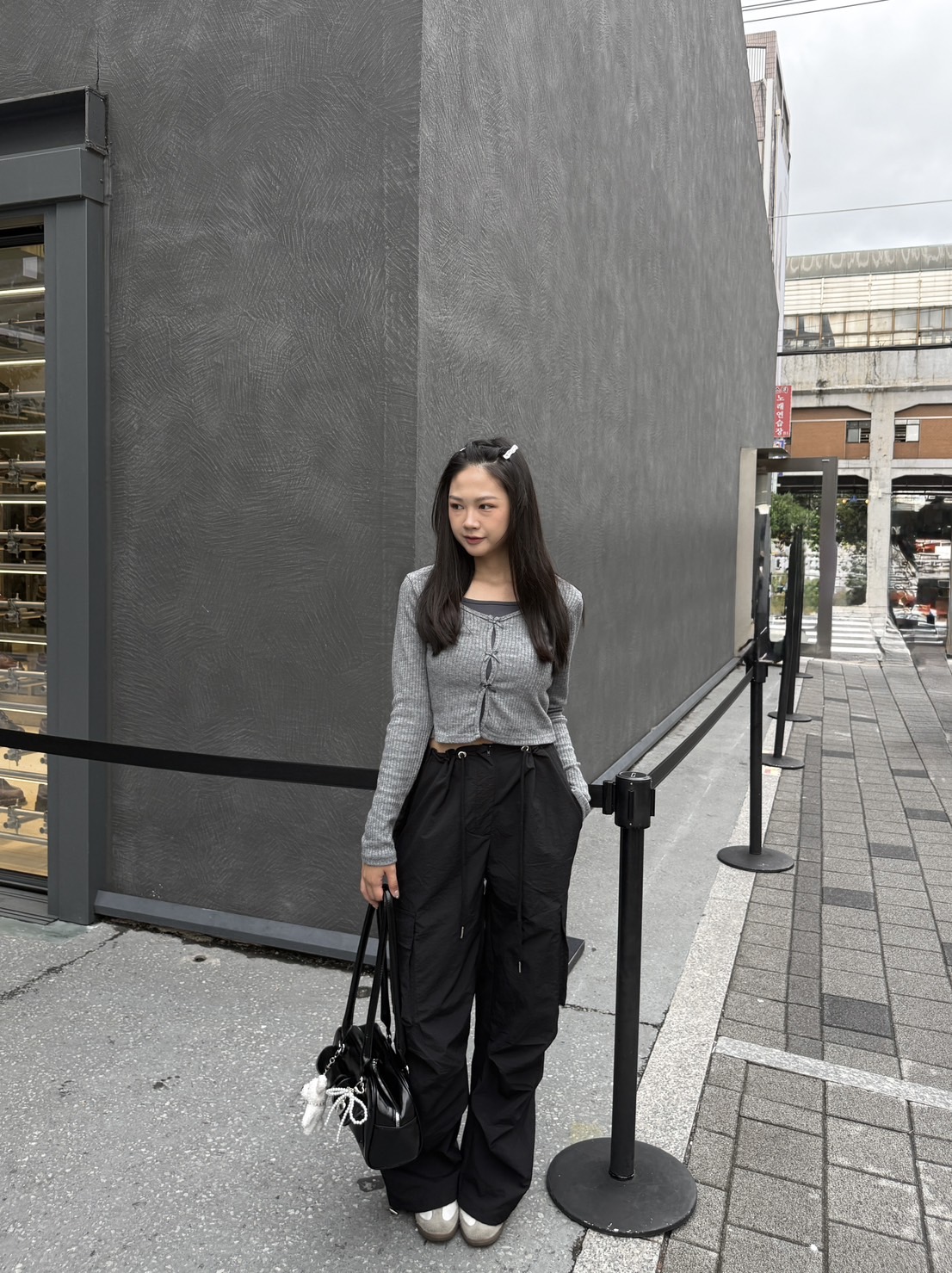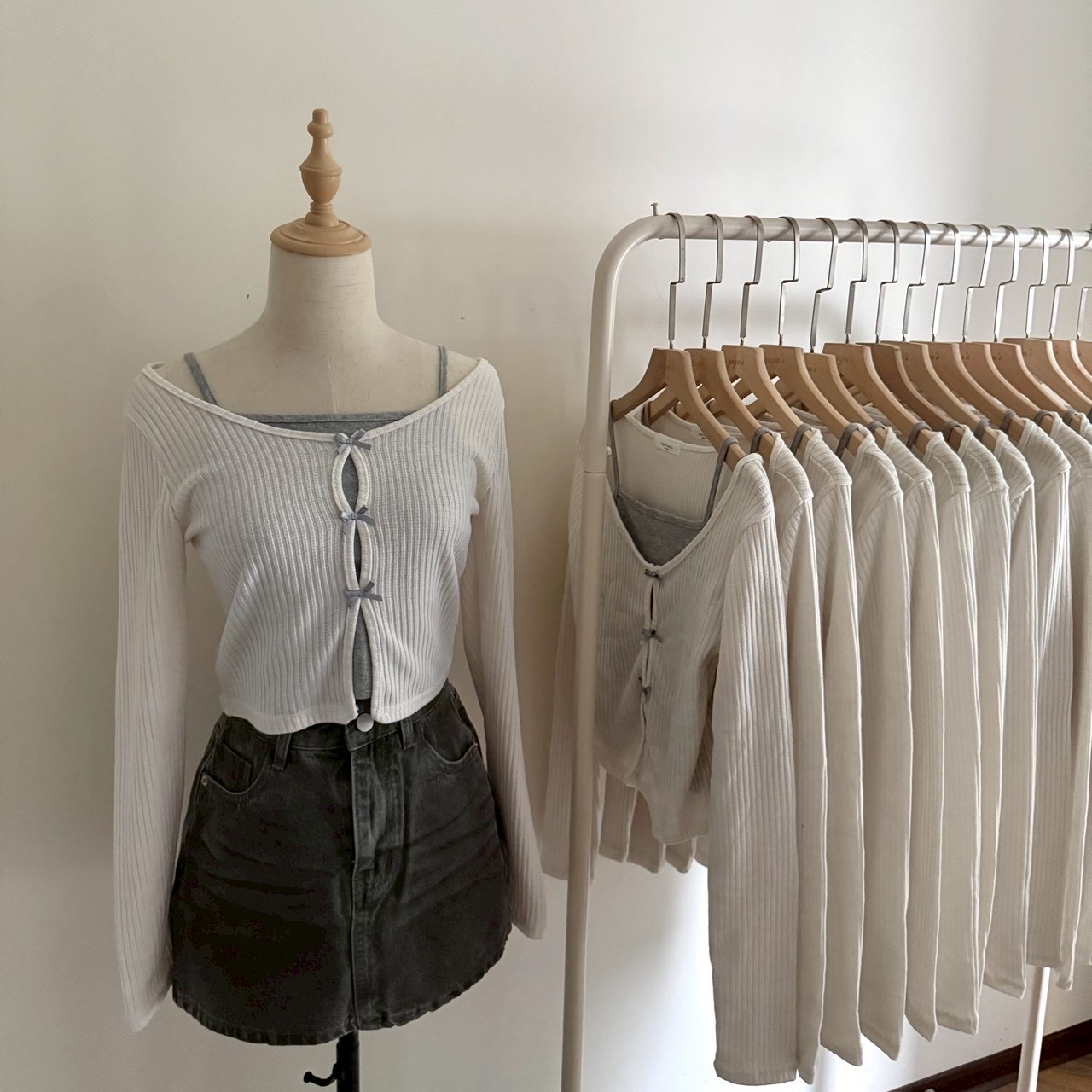 # 韓製蝴蝶結螺紋針織假兩件