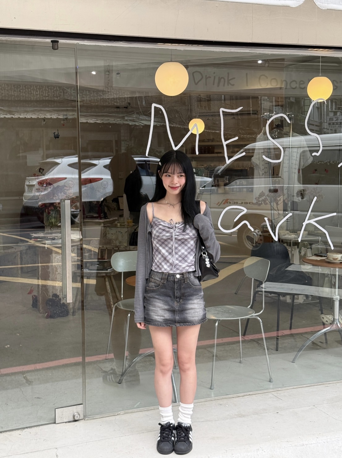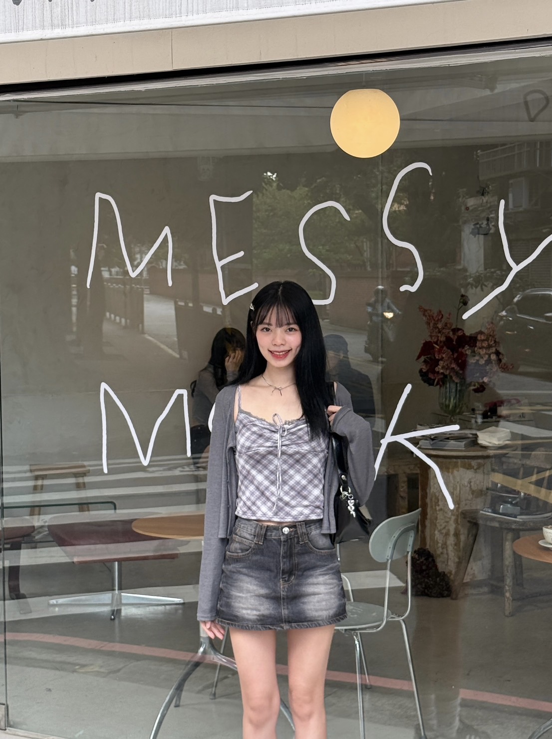 # 菱格紋拼接蝴蝶結小背心罩衫set