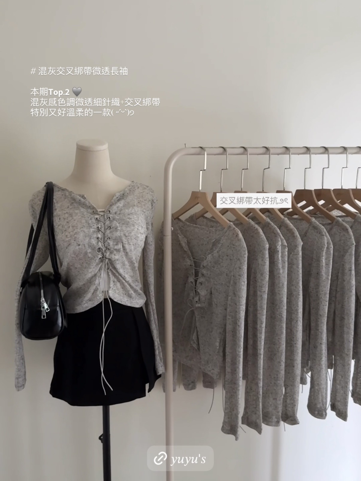 混灰感色調微透細針織+交叉綁帶౨ৎ