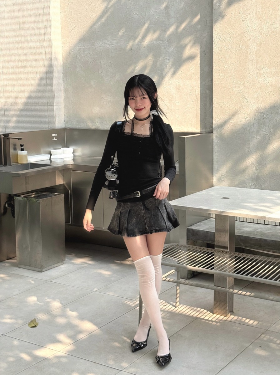 復古刷色低腰牛仔百褶裙