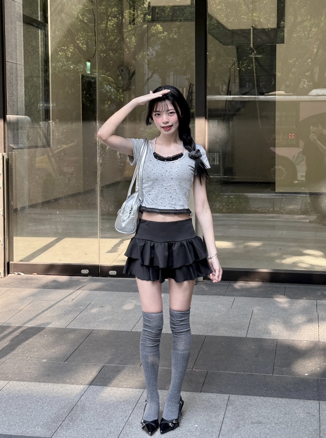黑色蕾絲拼花灰色+掛脖綁帶