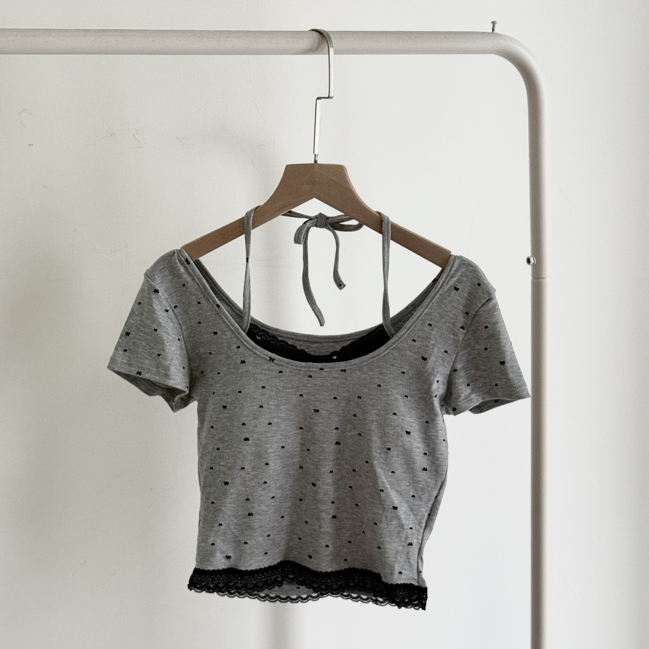 # 甜系蕾絲領綁帶bra短袖