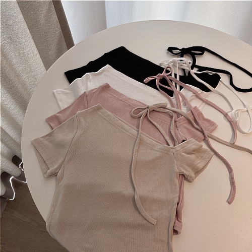 韓製 | 斜肩繞脖彈力棉質上衣