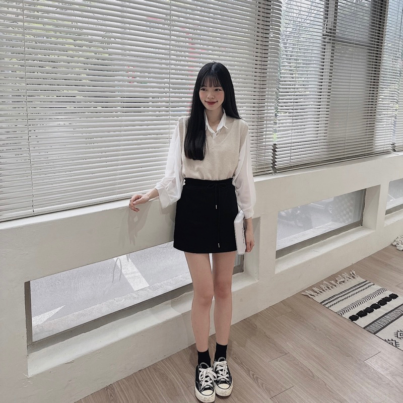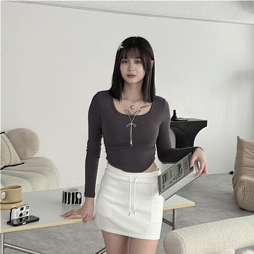 #棉質鬆緊腰挺版短裙