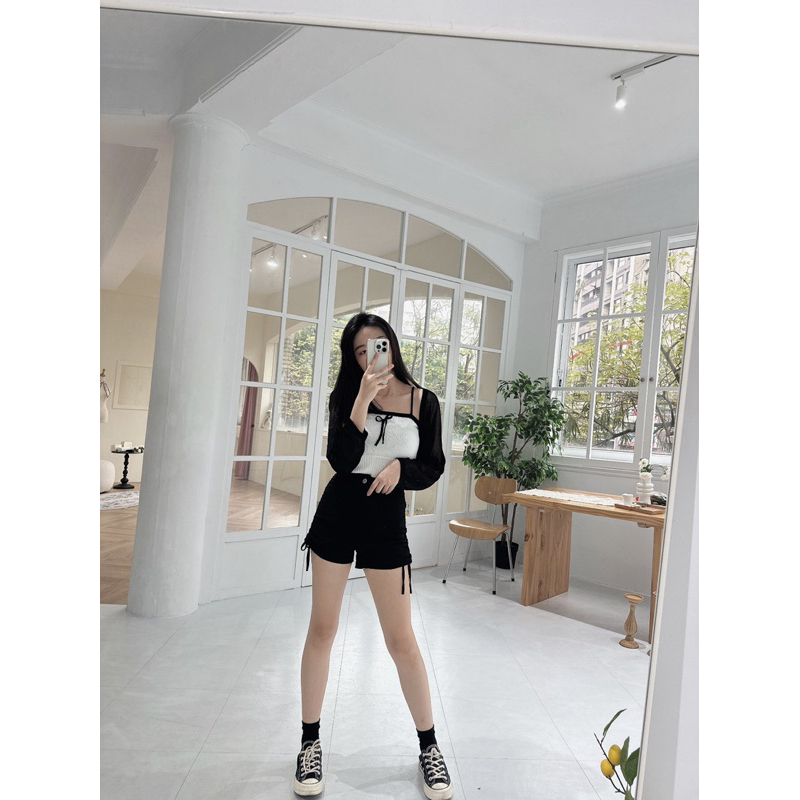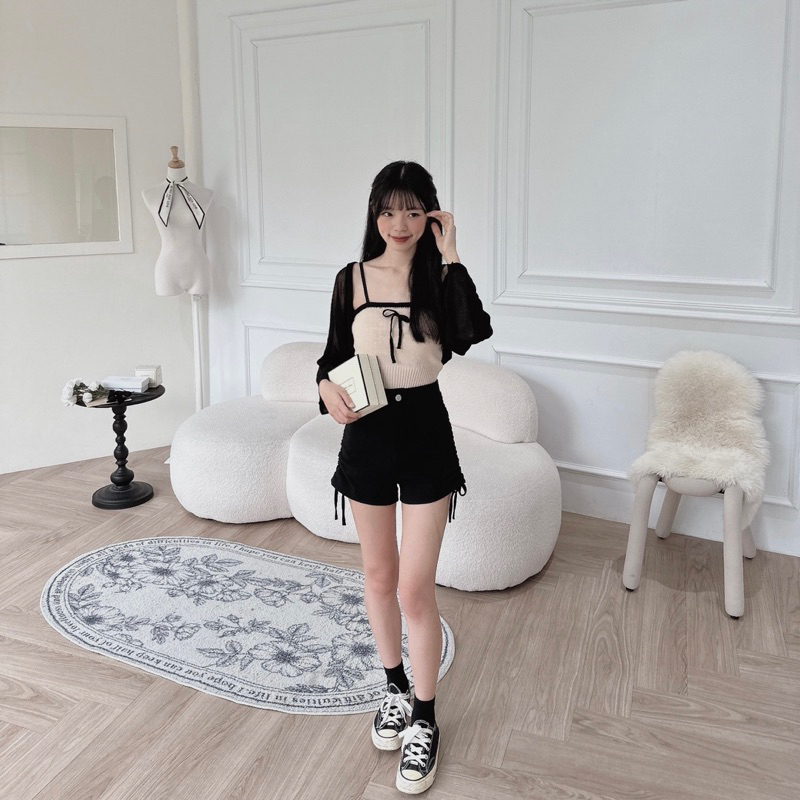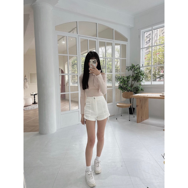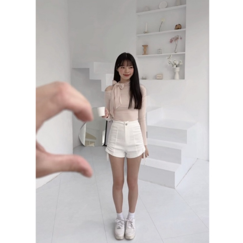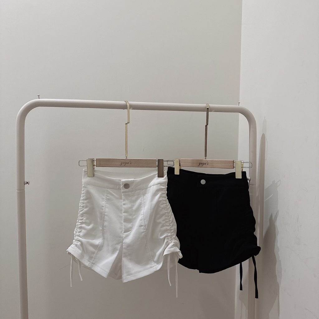 #側綁帶高腰彈性A字短褲