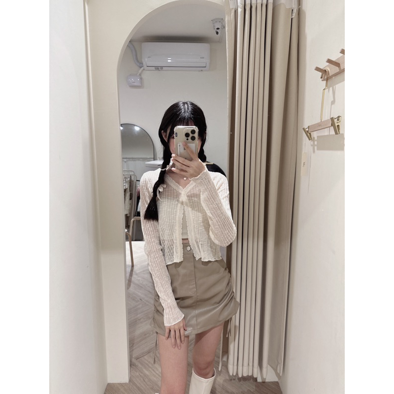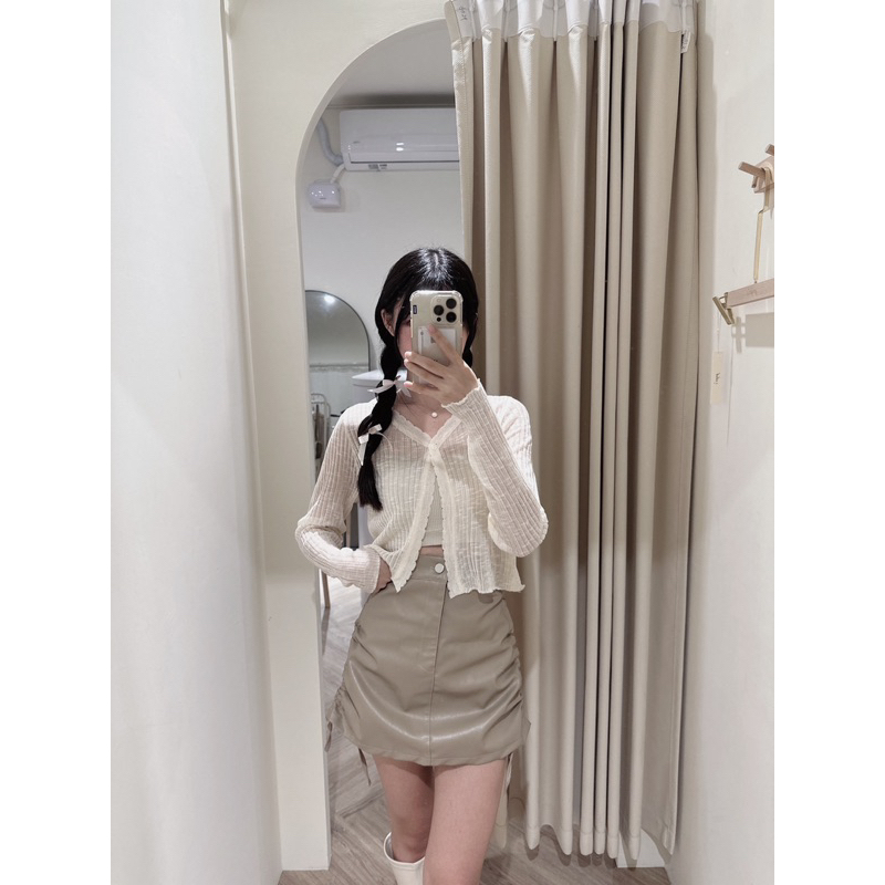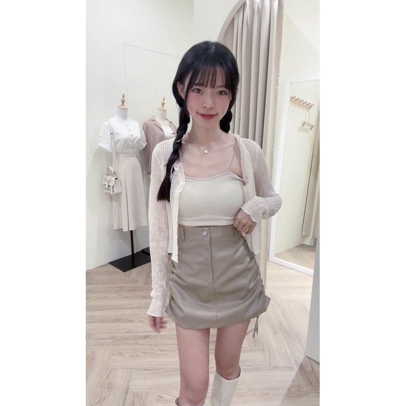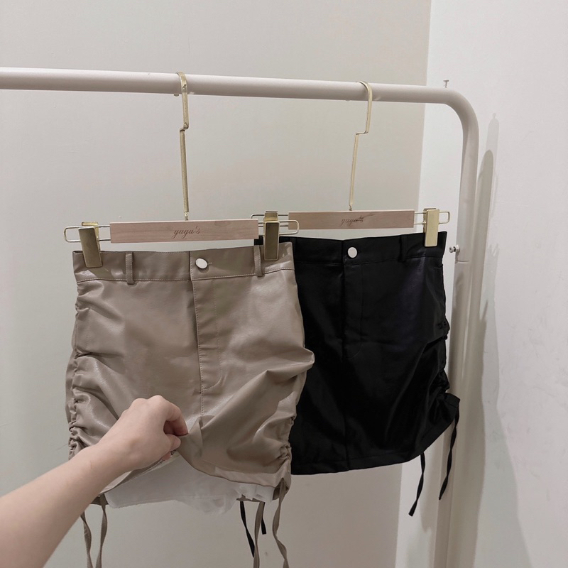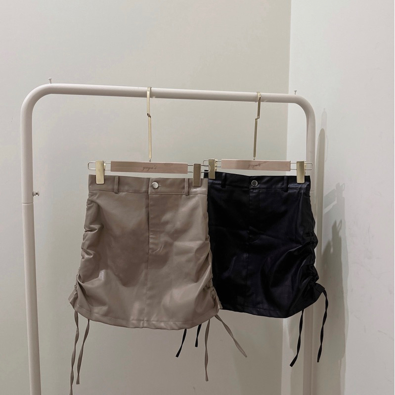皮面材質超美!! 綁帶可調節裙長