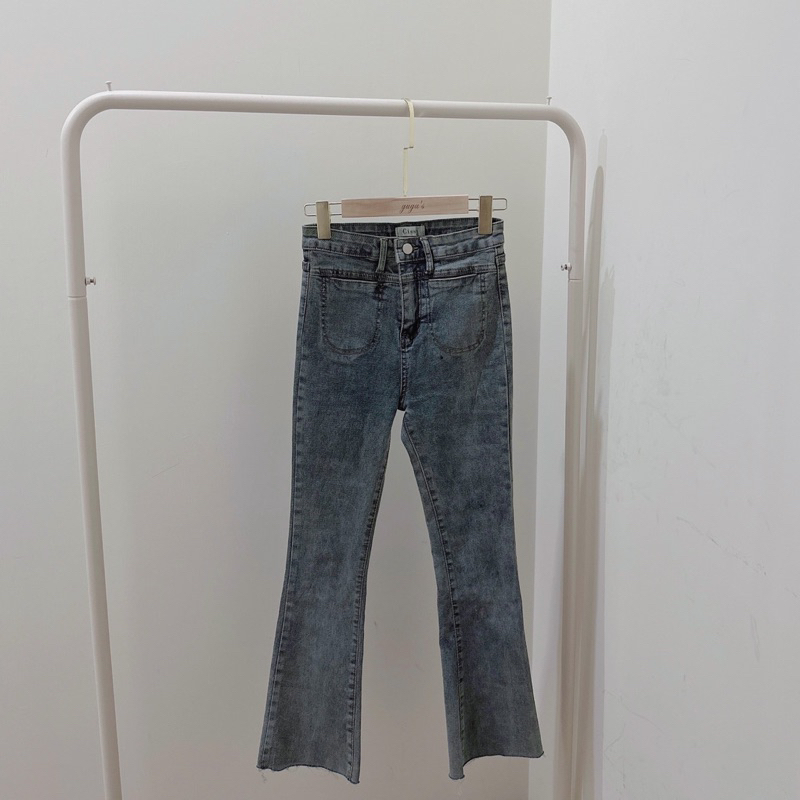 #版型偏小復古刷色微喇叭彈性牛仔長褲