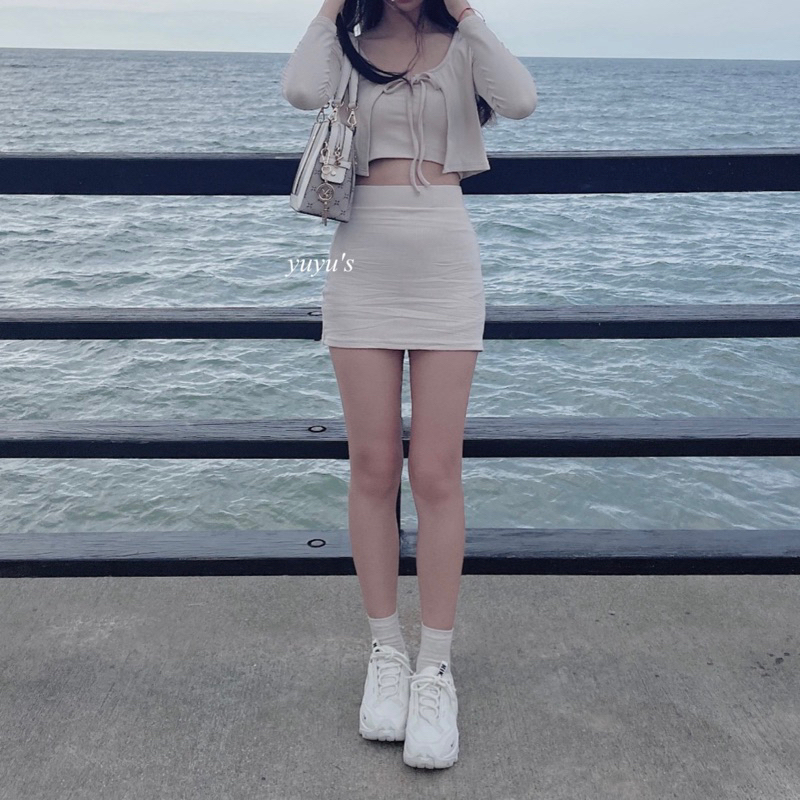 #版型偏小螺紋綁帶外套三件式套裝