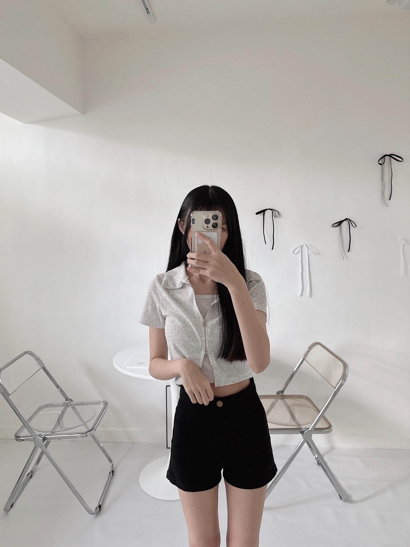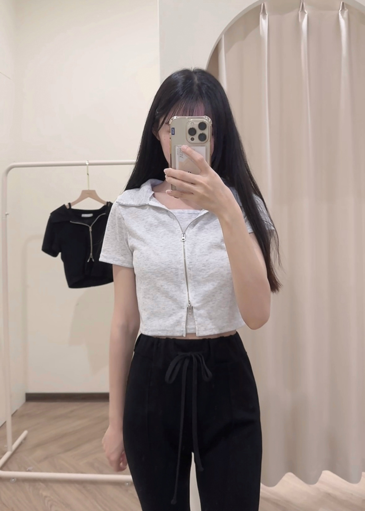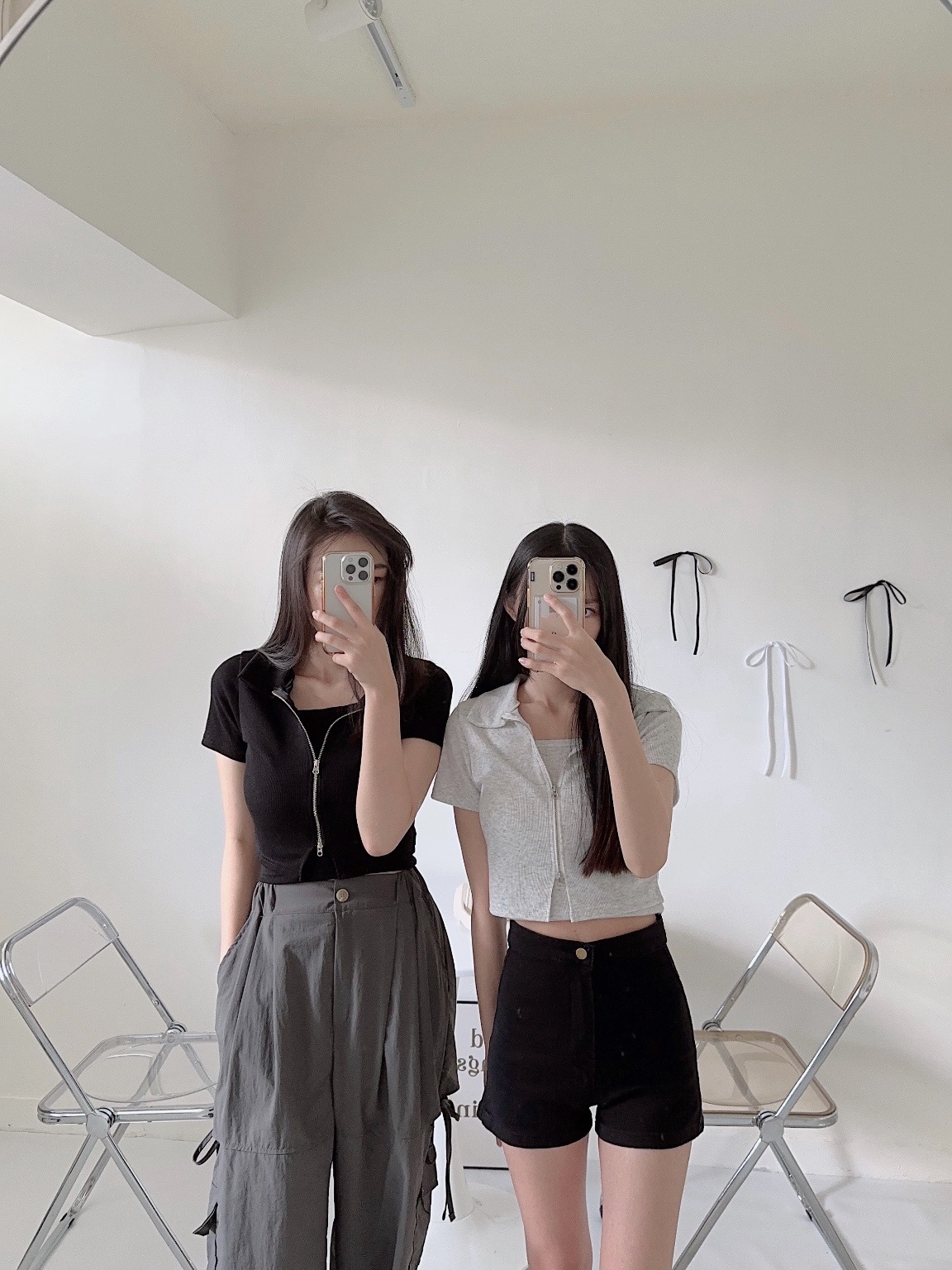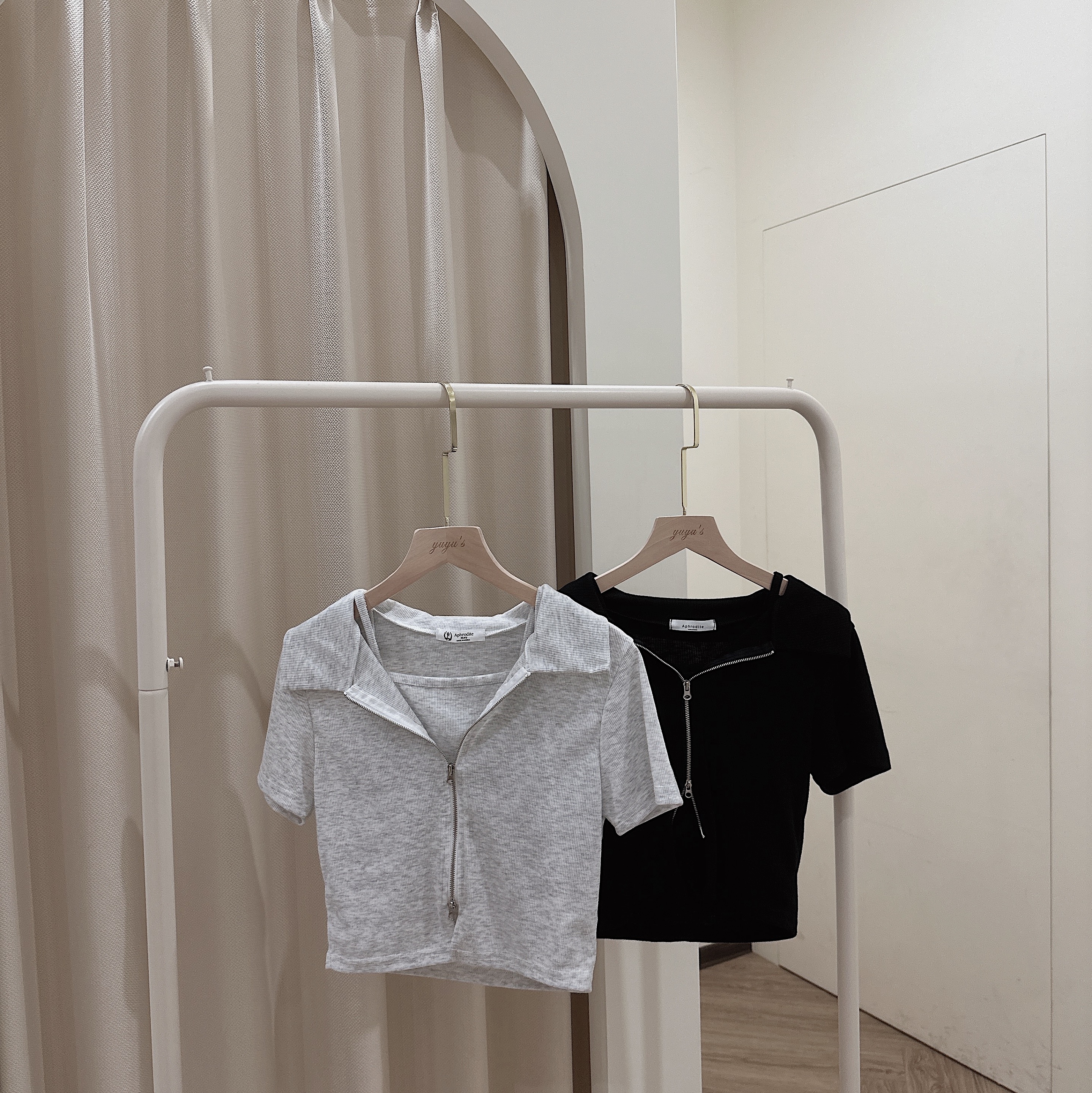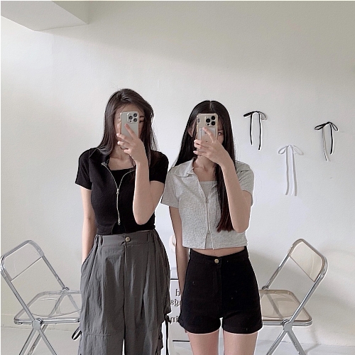#襯衫領雙拉鍊短版兩件套
