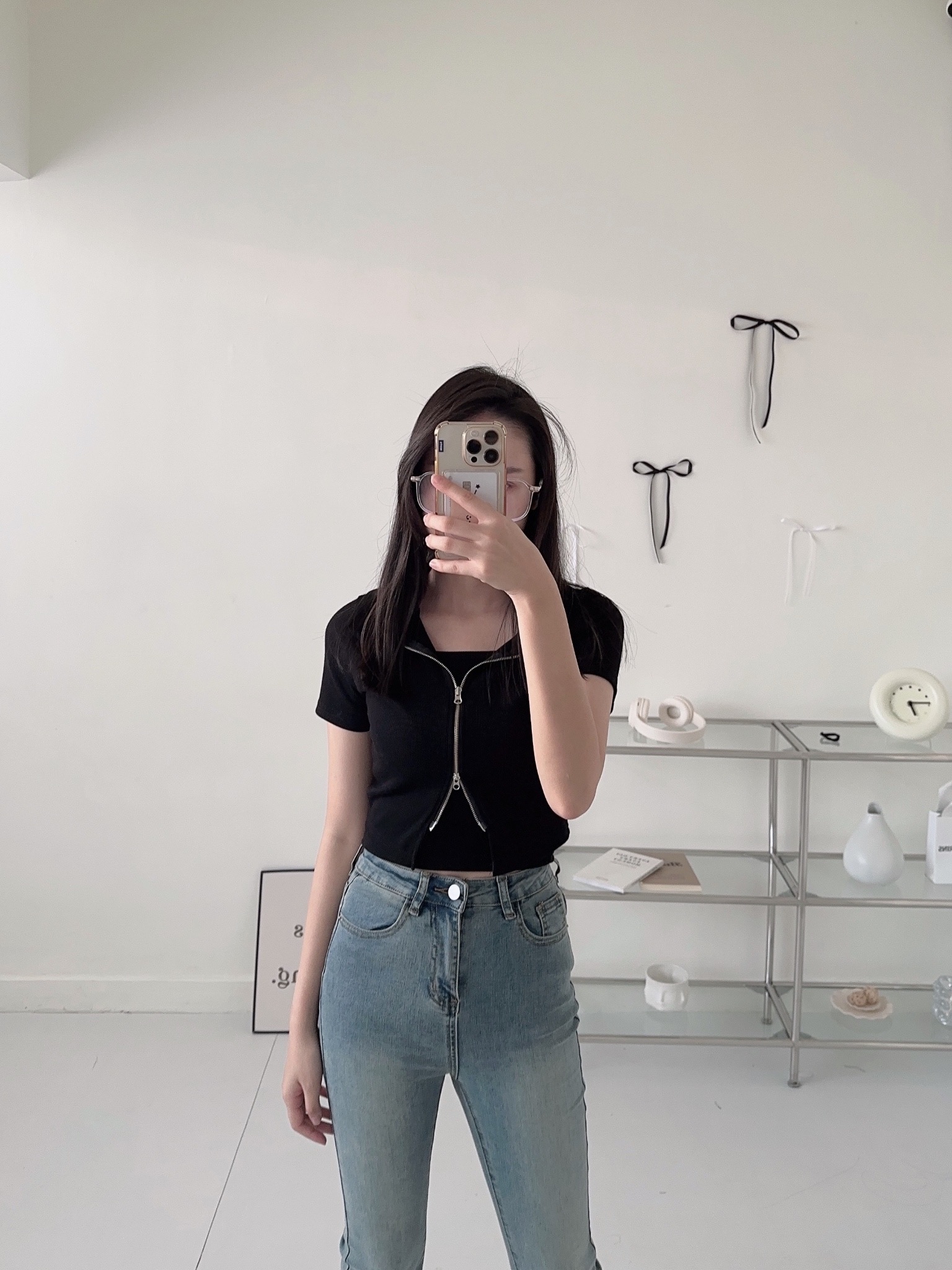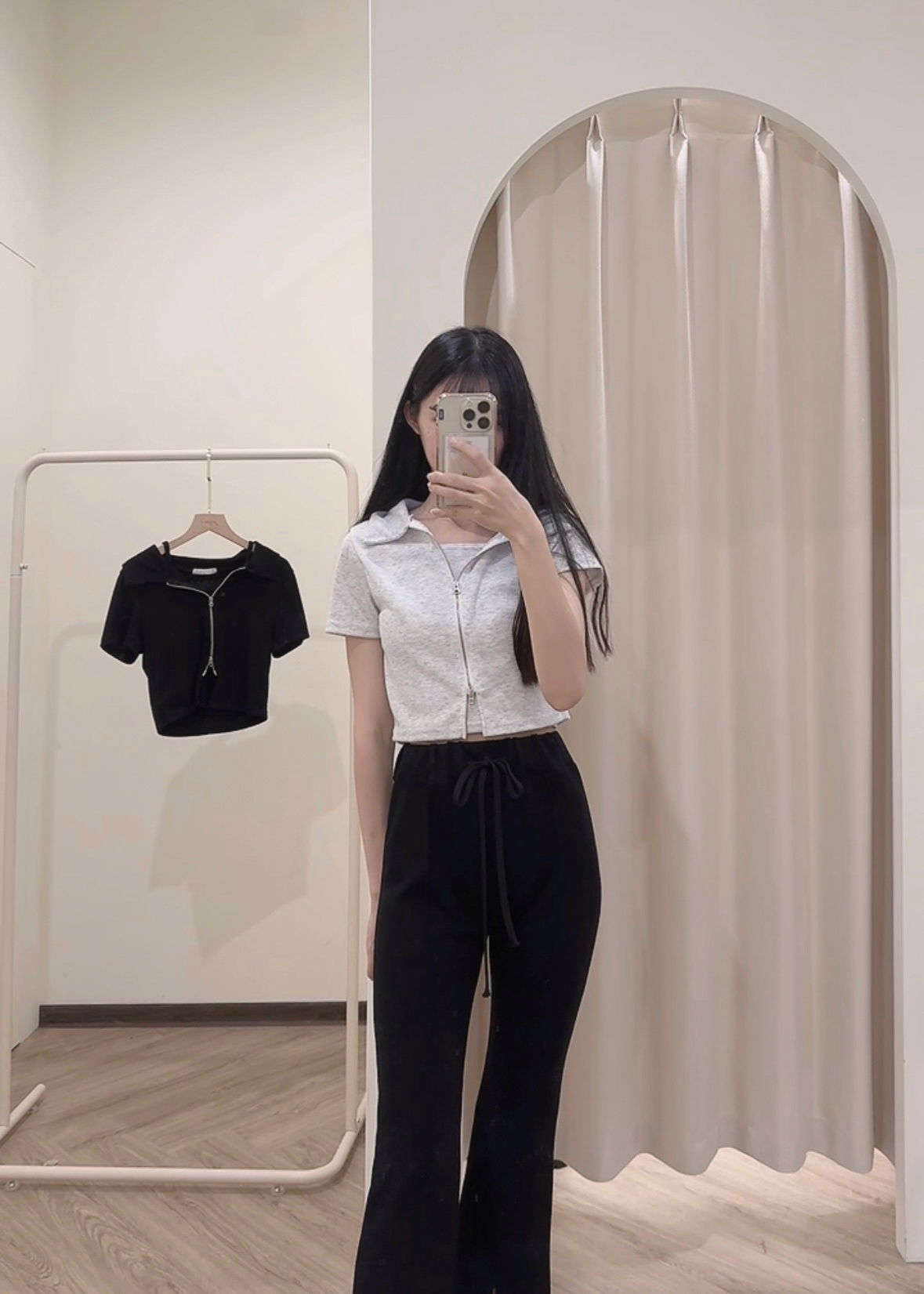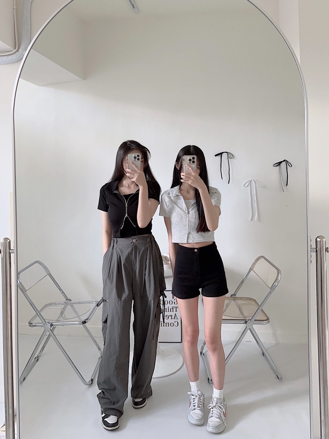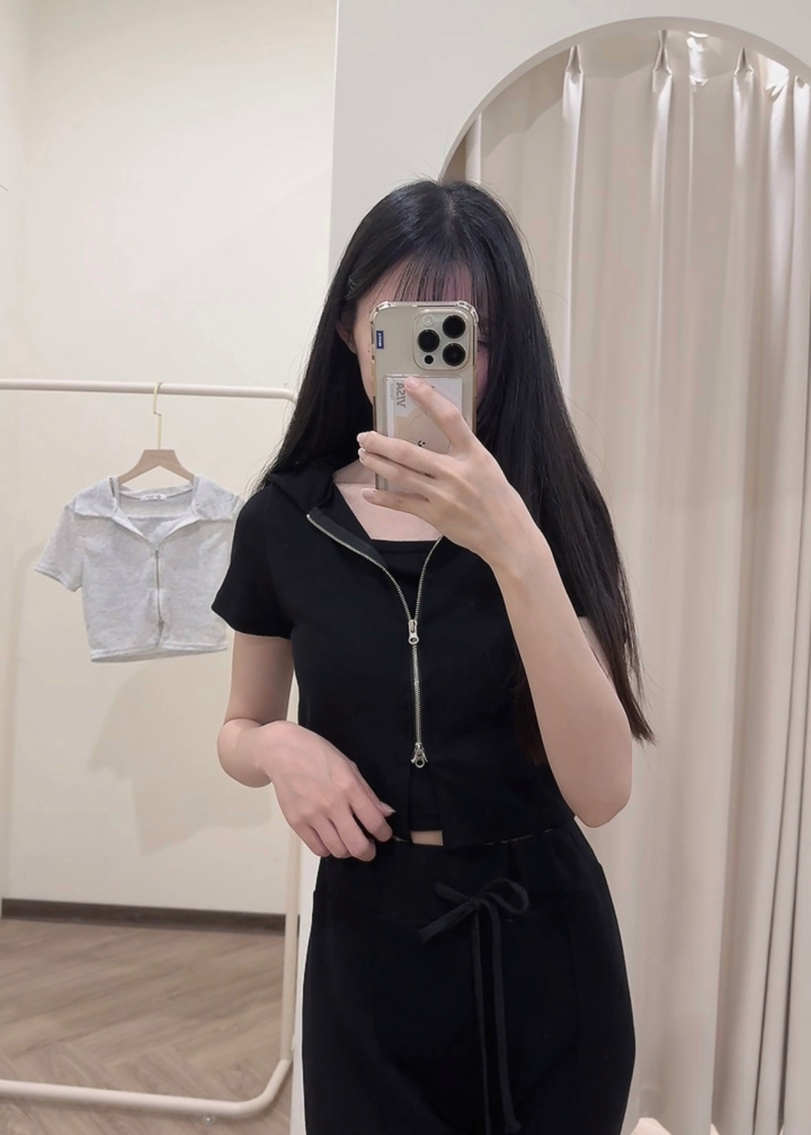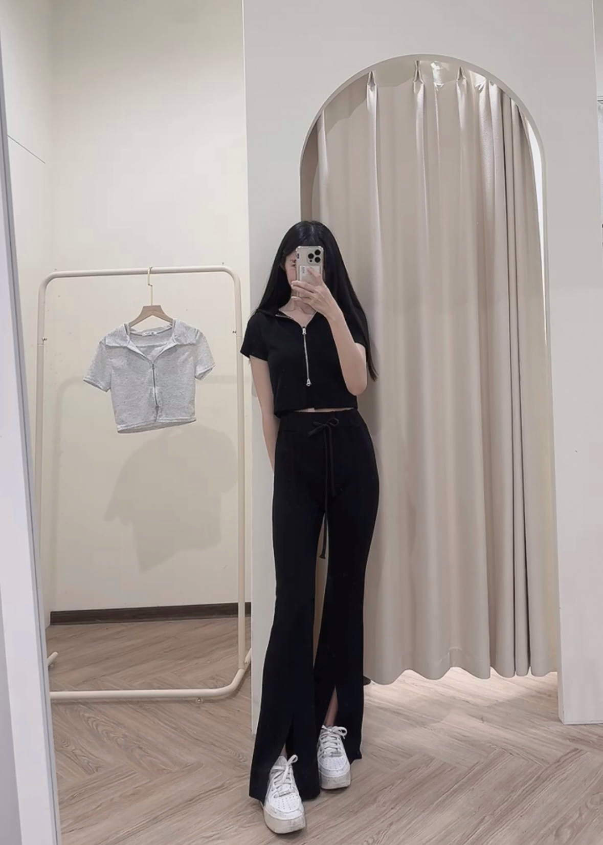 #襯衫領雙拉鍊短版兩件套