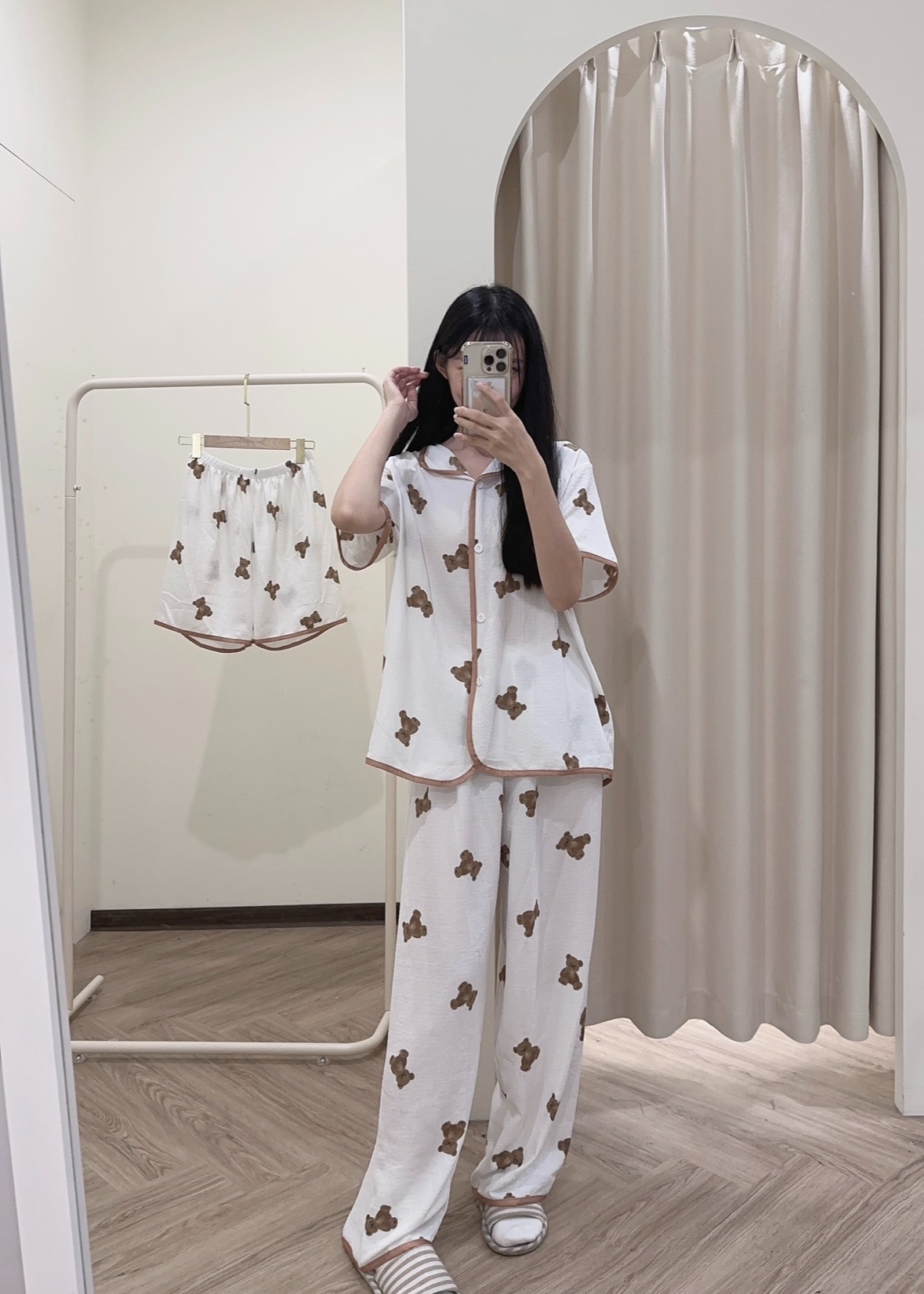 #舒服熊熊滾邊睡衣三件套