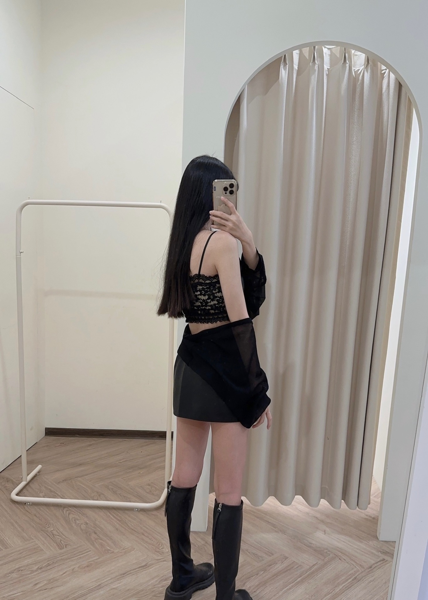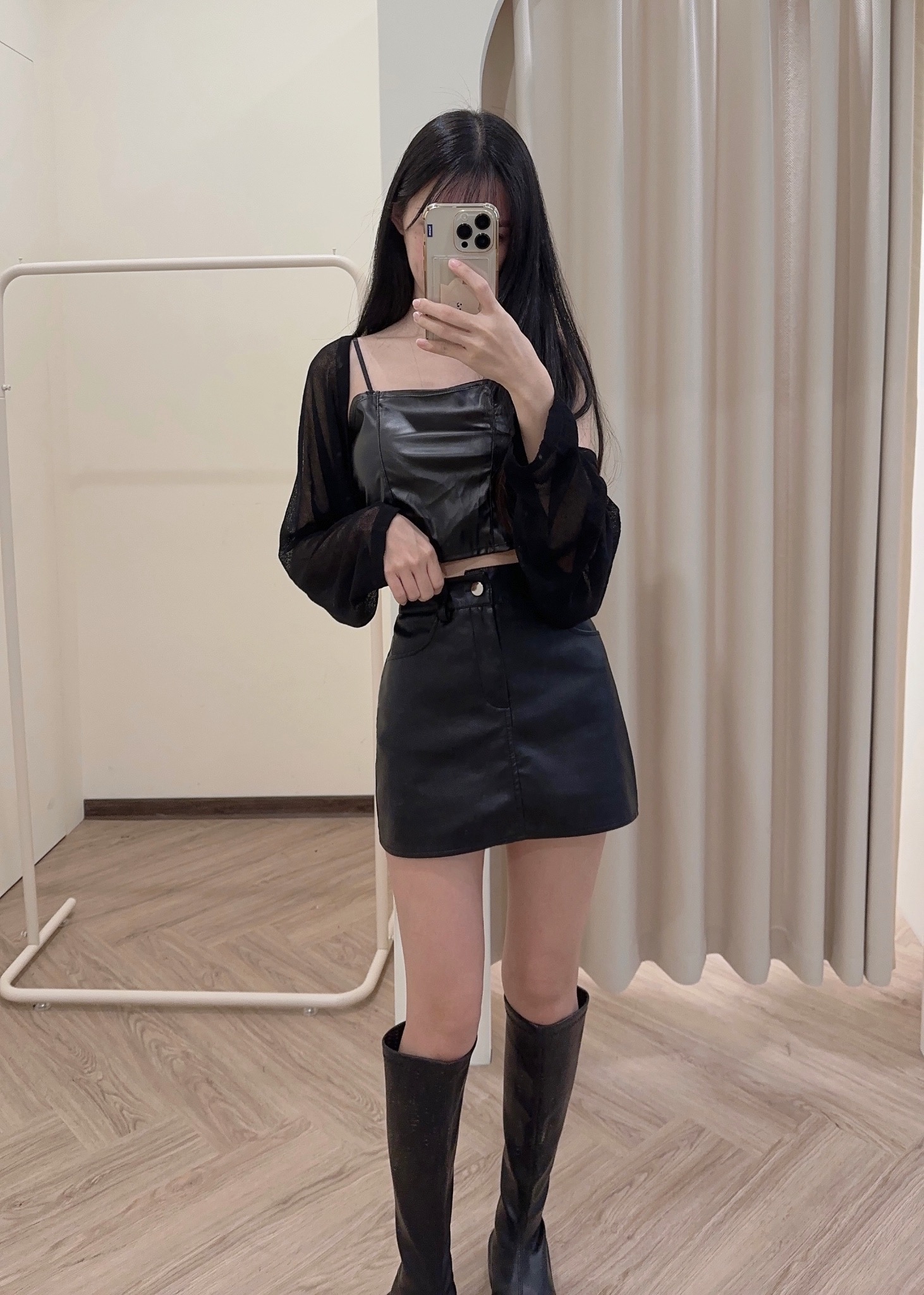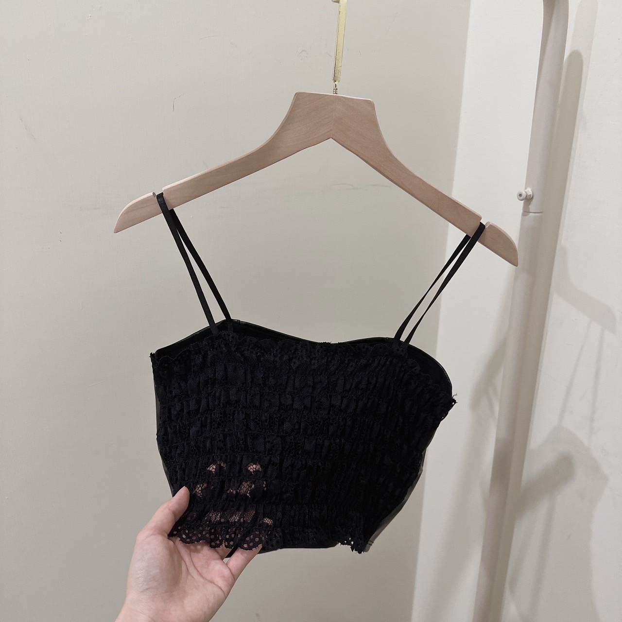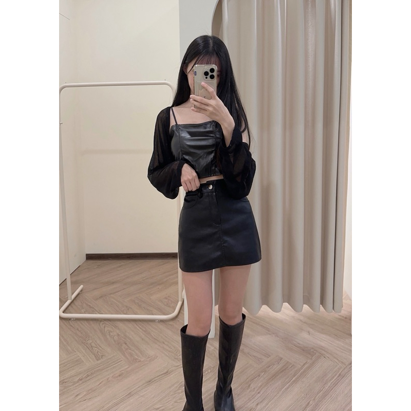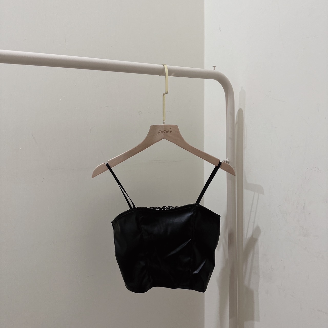 #皮面短版bra蕾絲背心