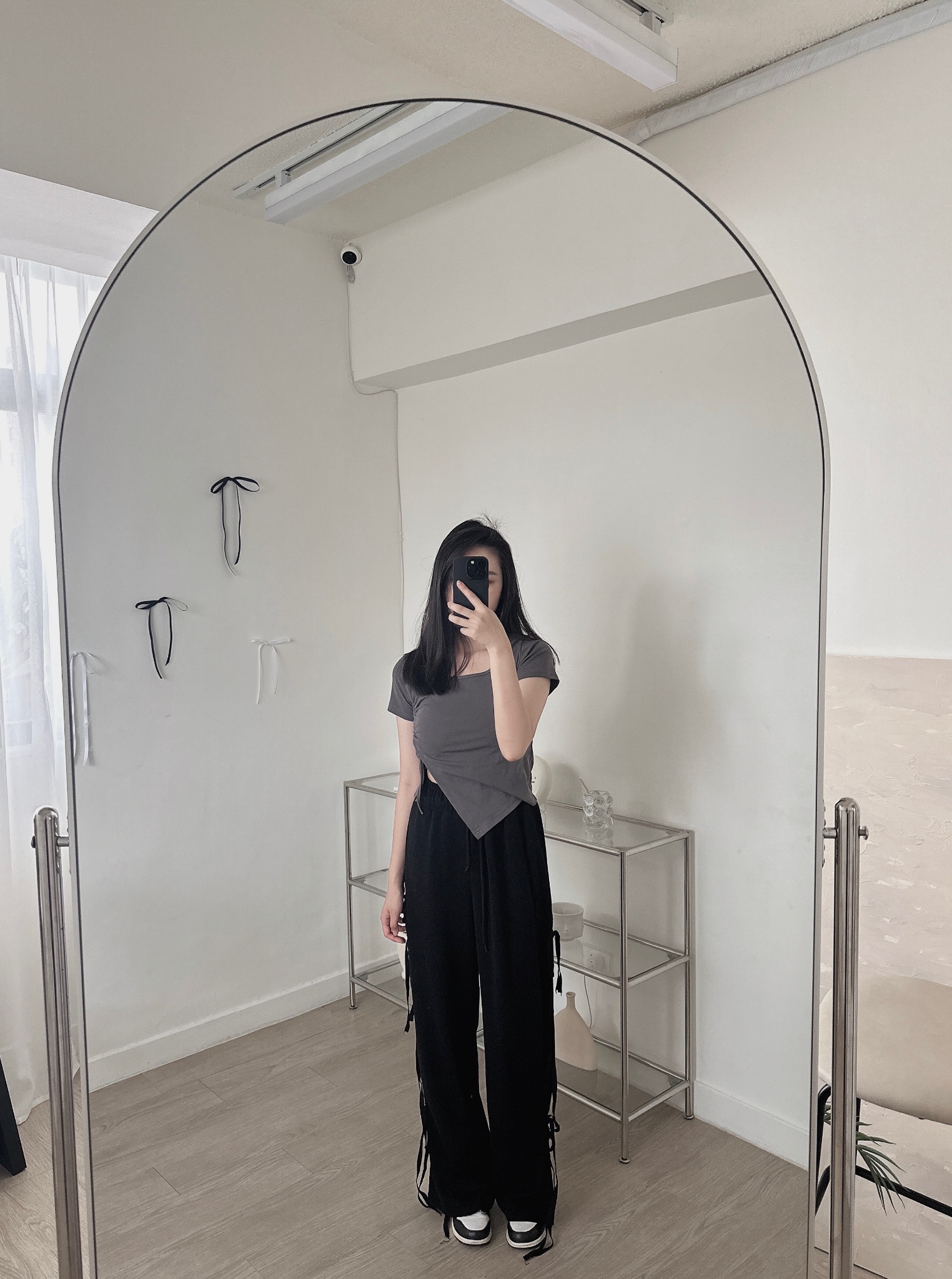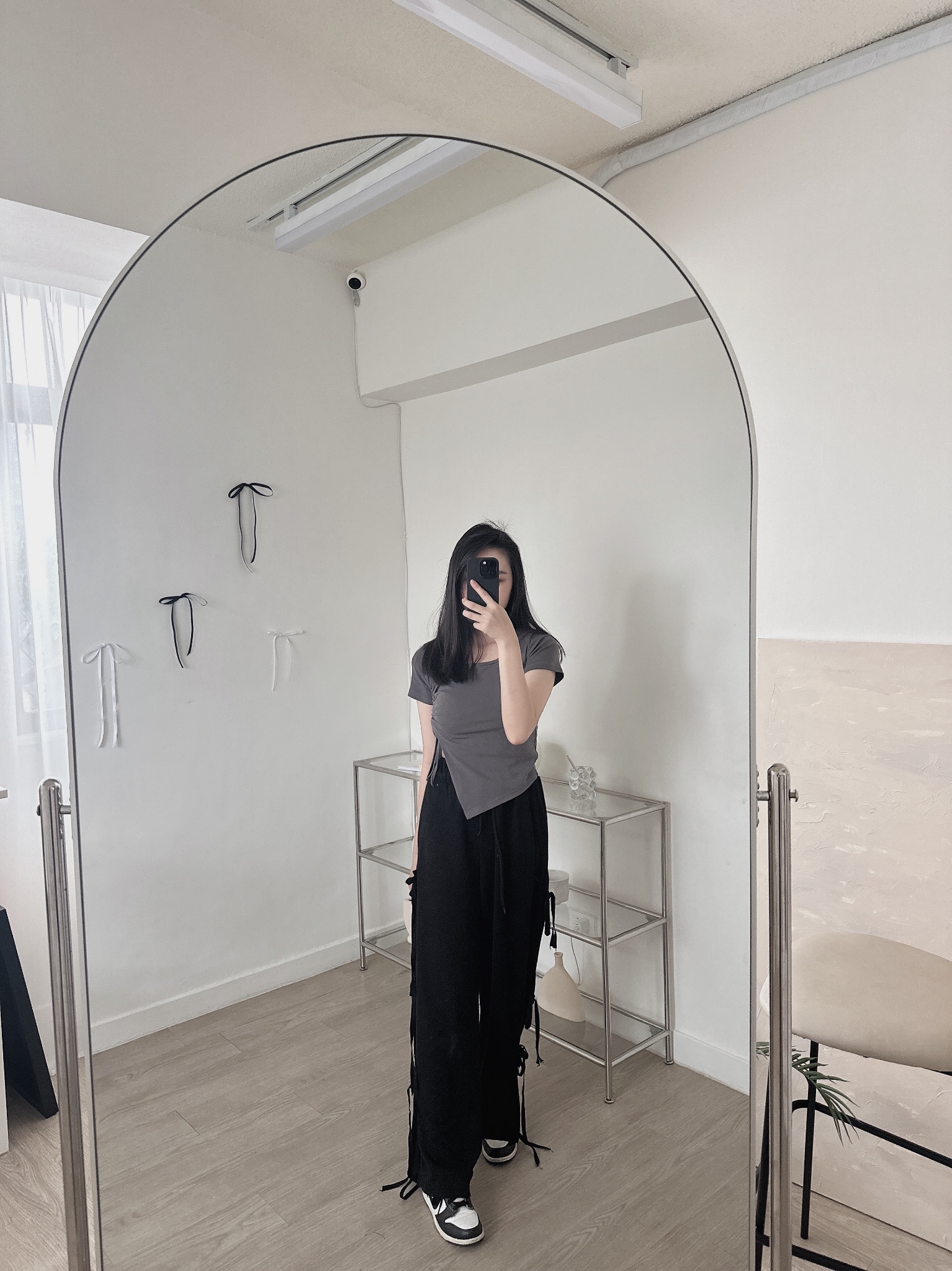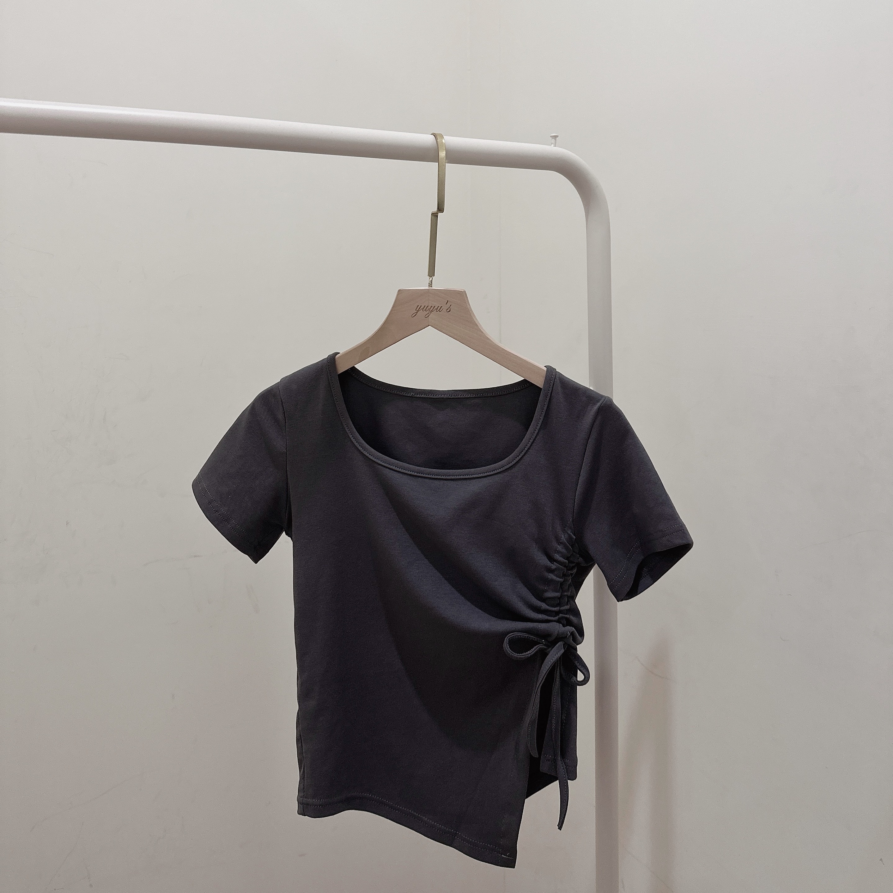 #U領不規則抽繩綁帶短袖