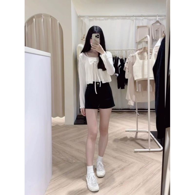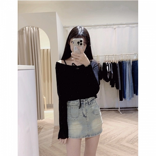 米白微微透感很襯膚 黑色簡單配個牛仔下身就很美