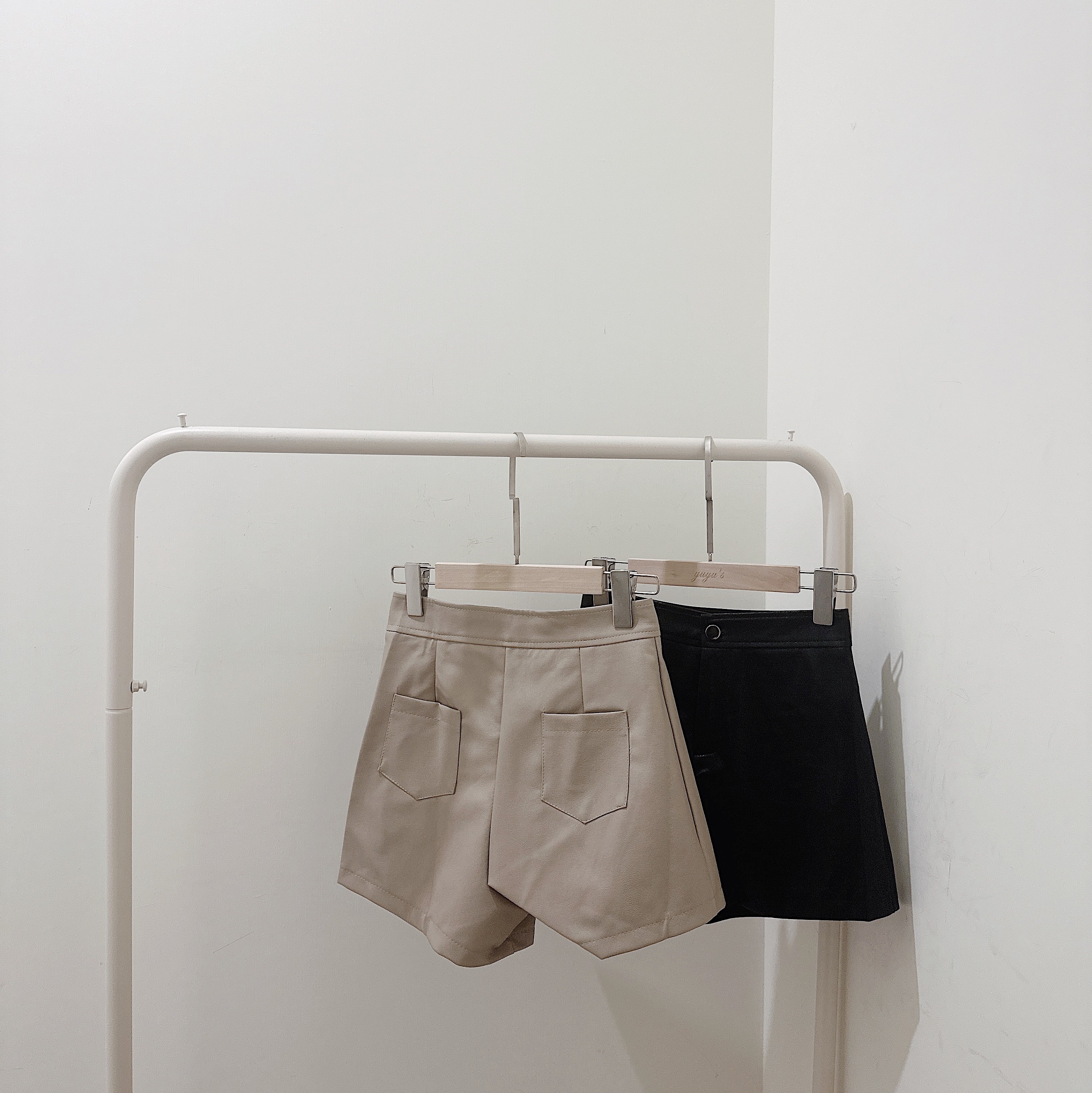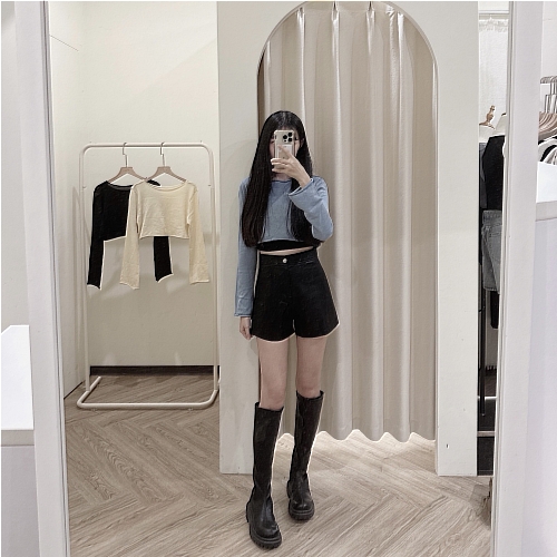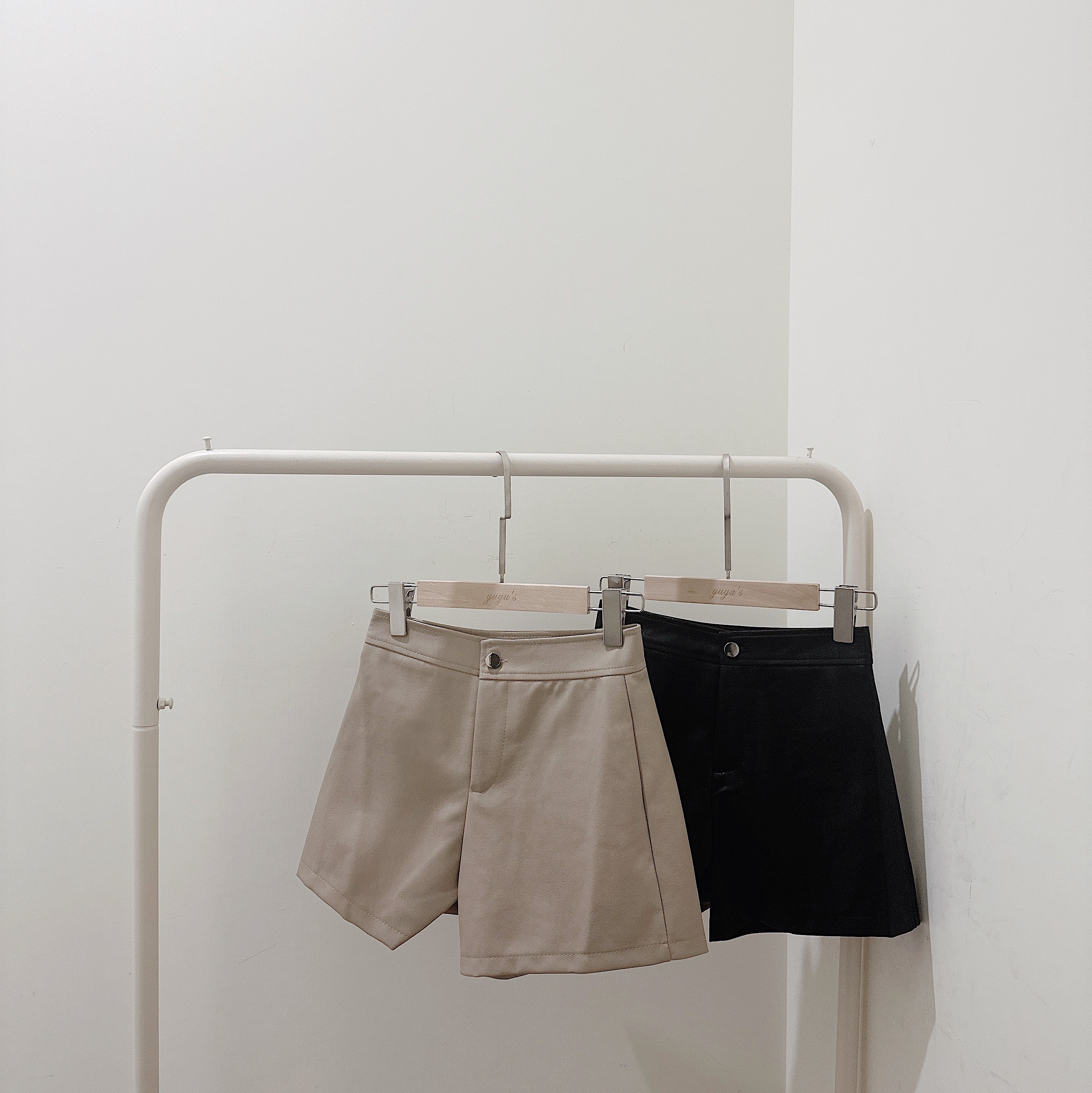 #質感單釦皮面A字短褲