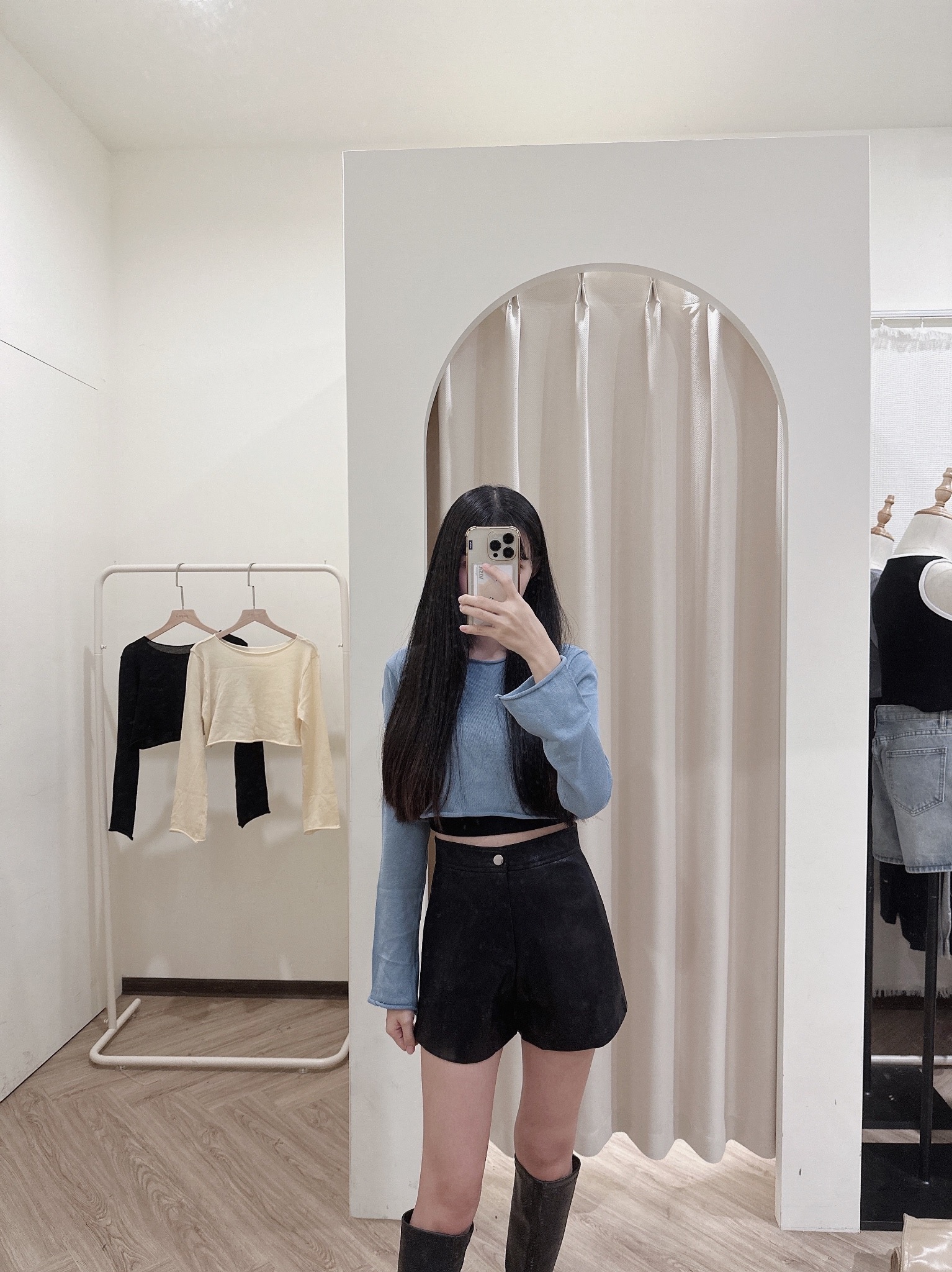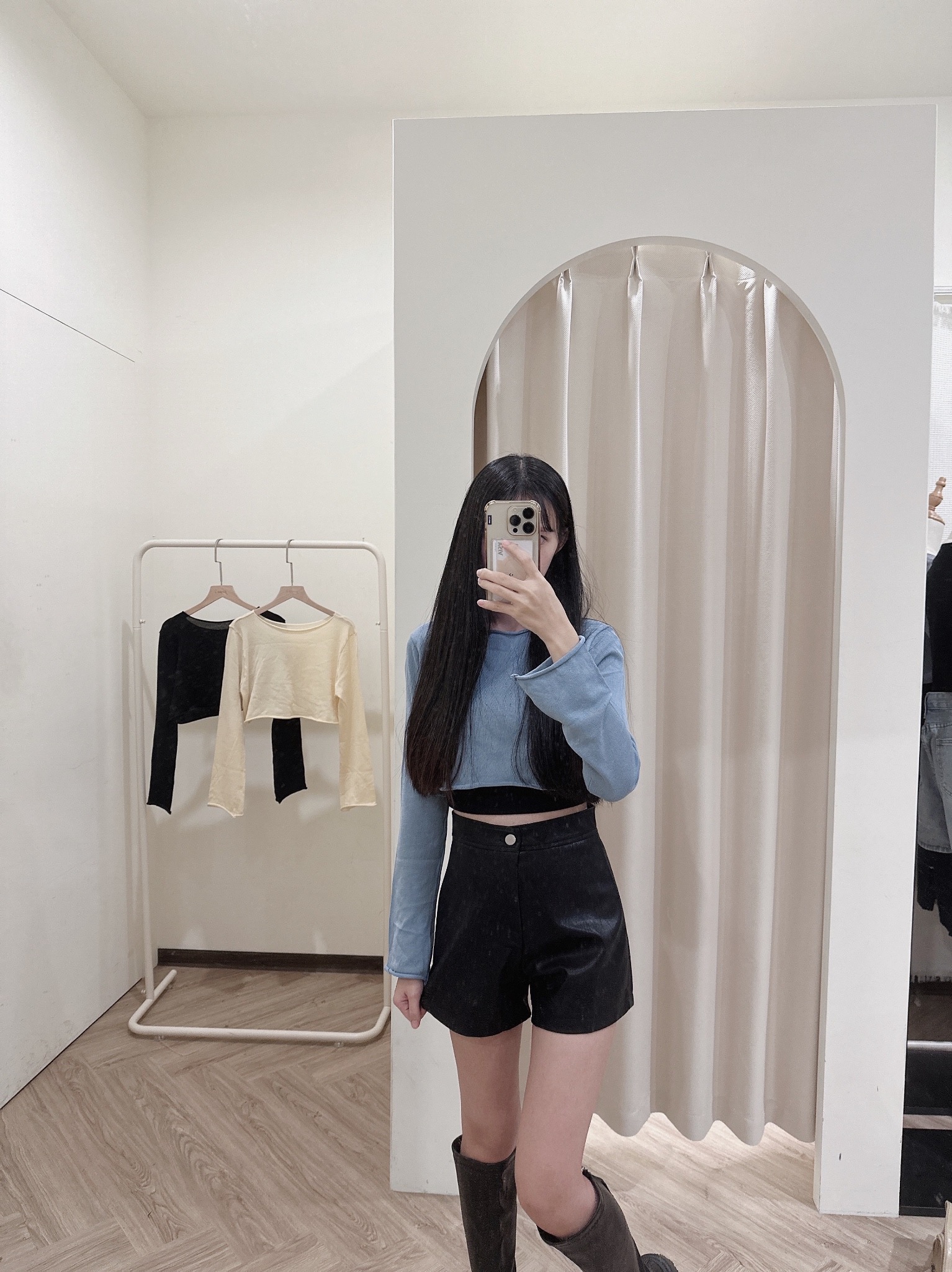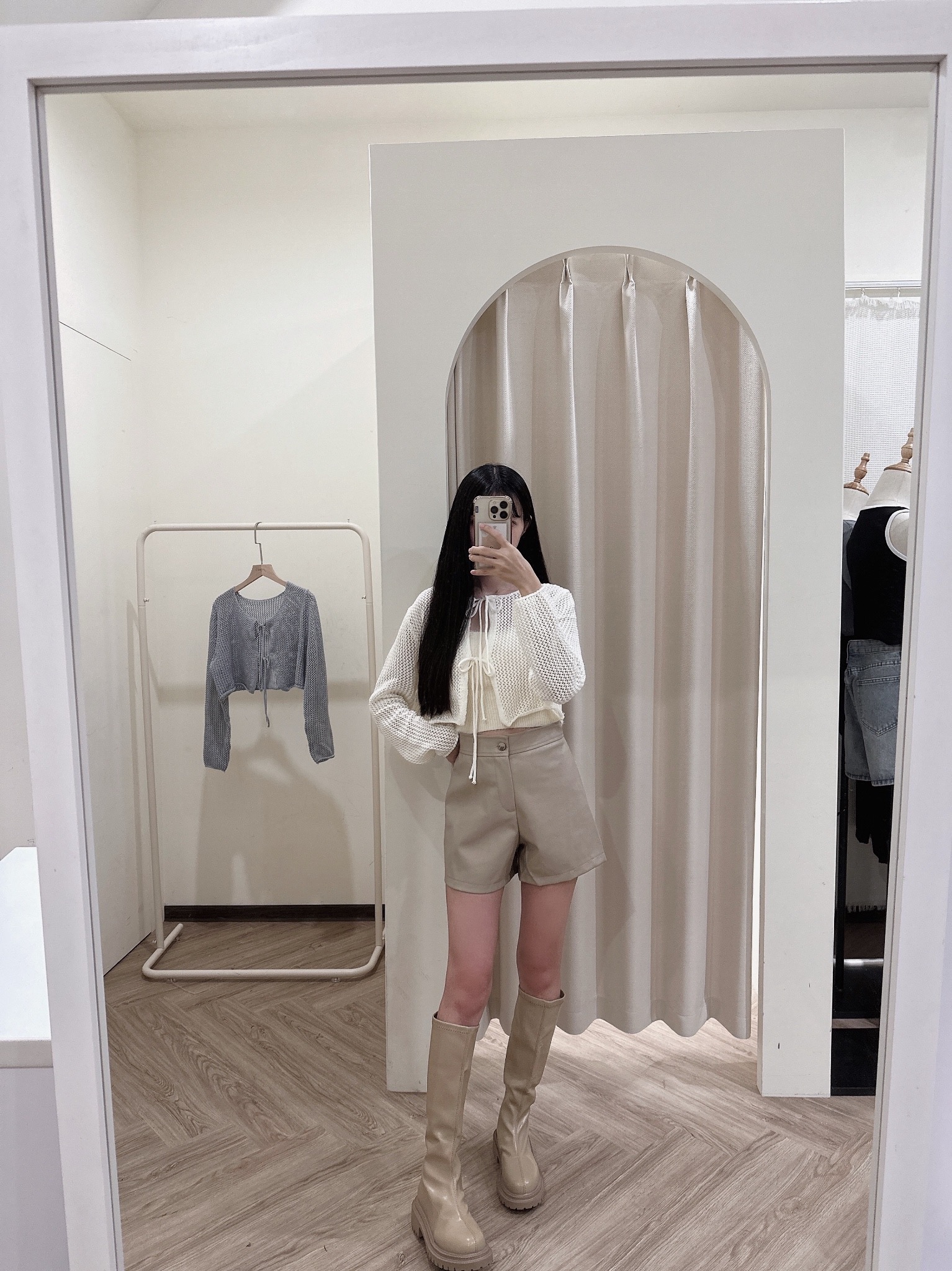 皮褲版型很挺 很遮小腹!