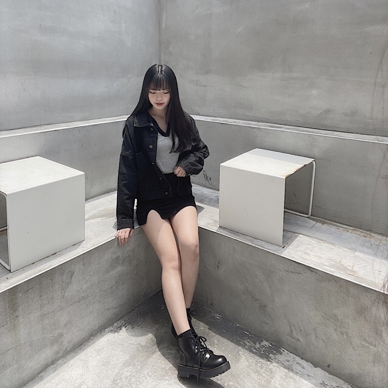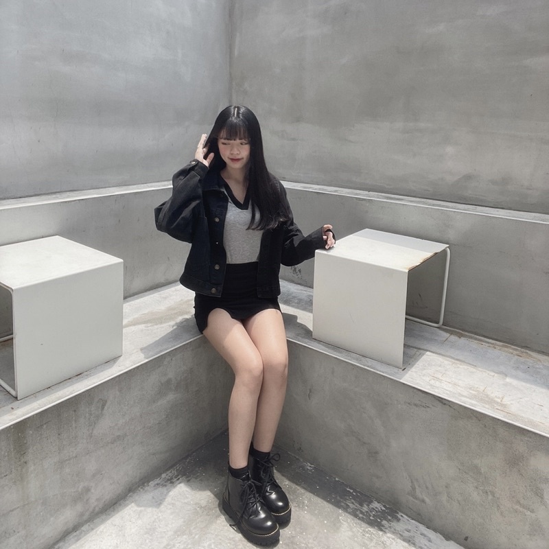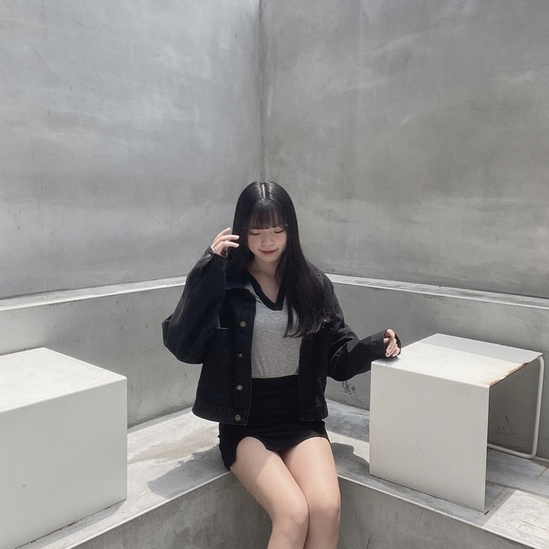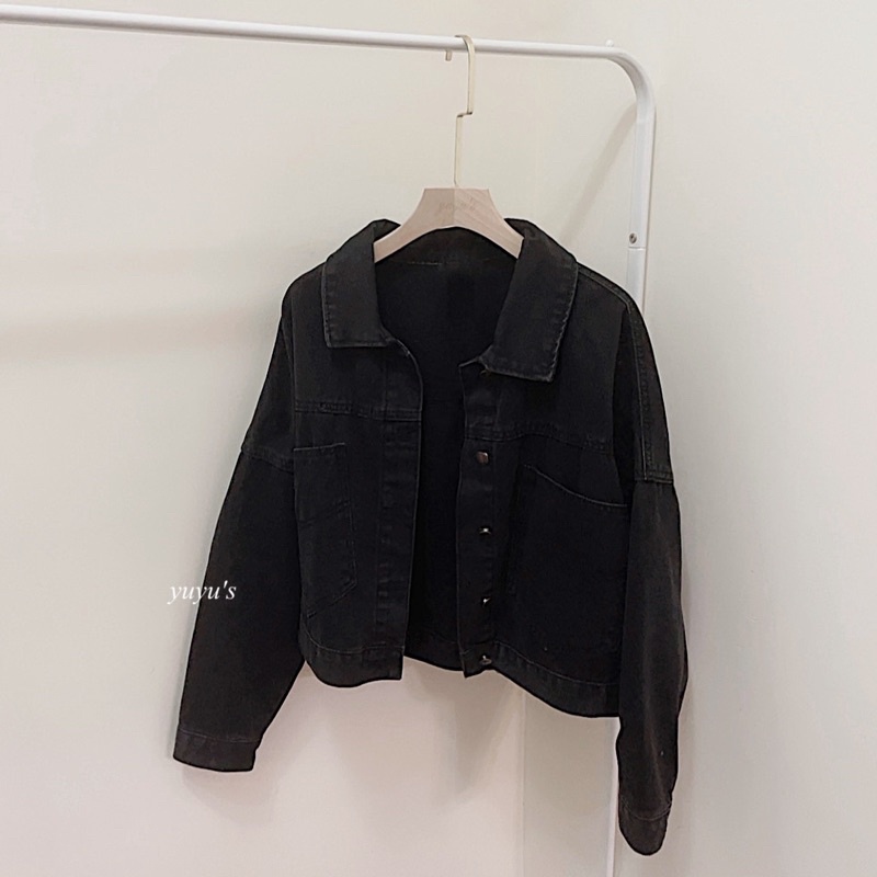 #yuyu’s自訂短版黑色寬鬆牛仔外套