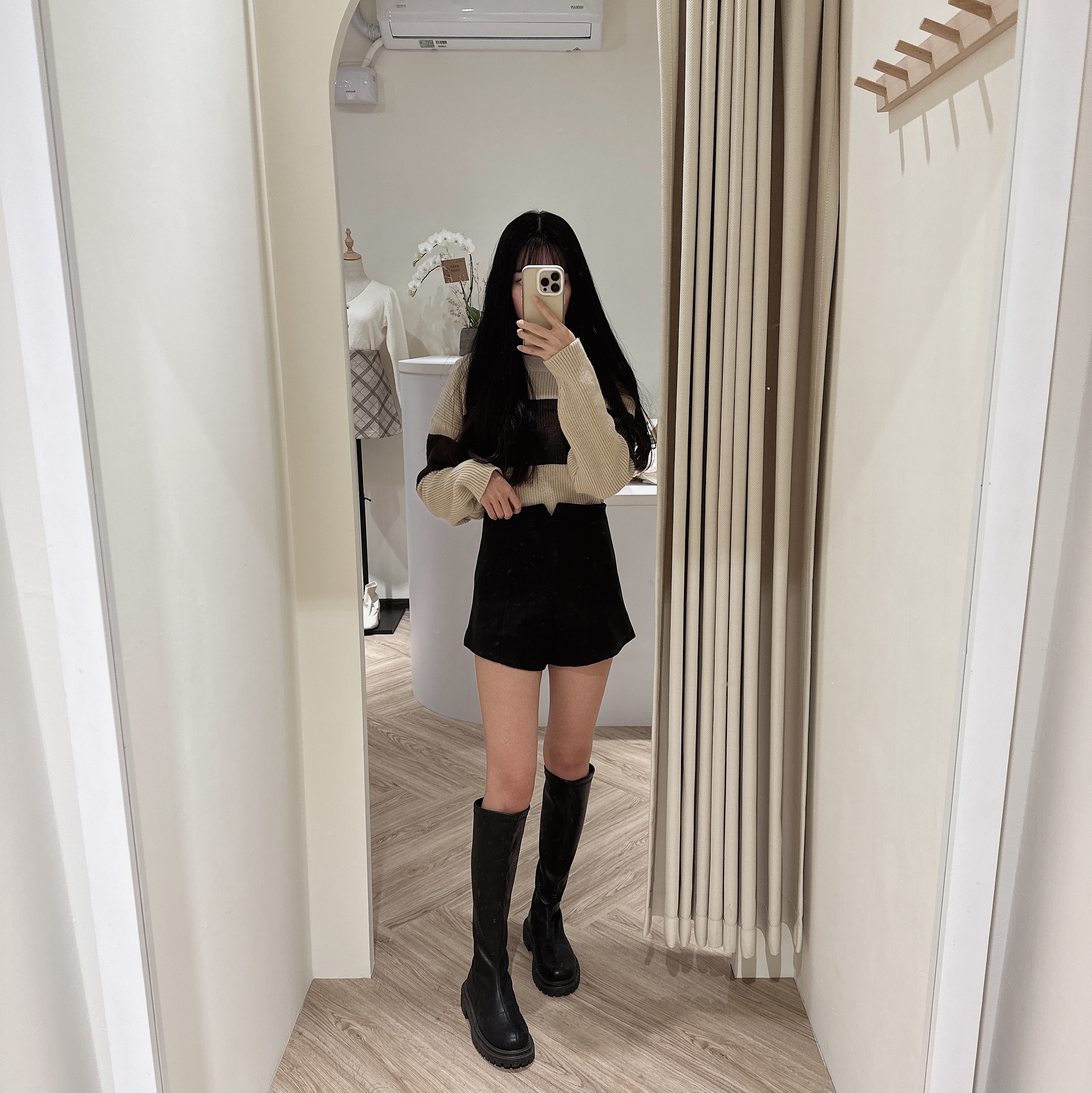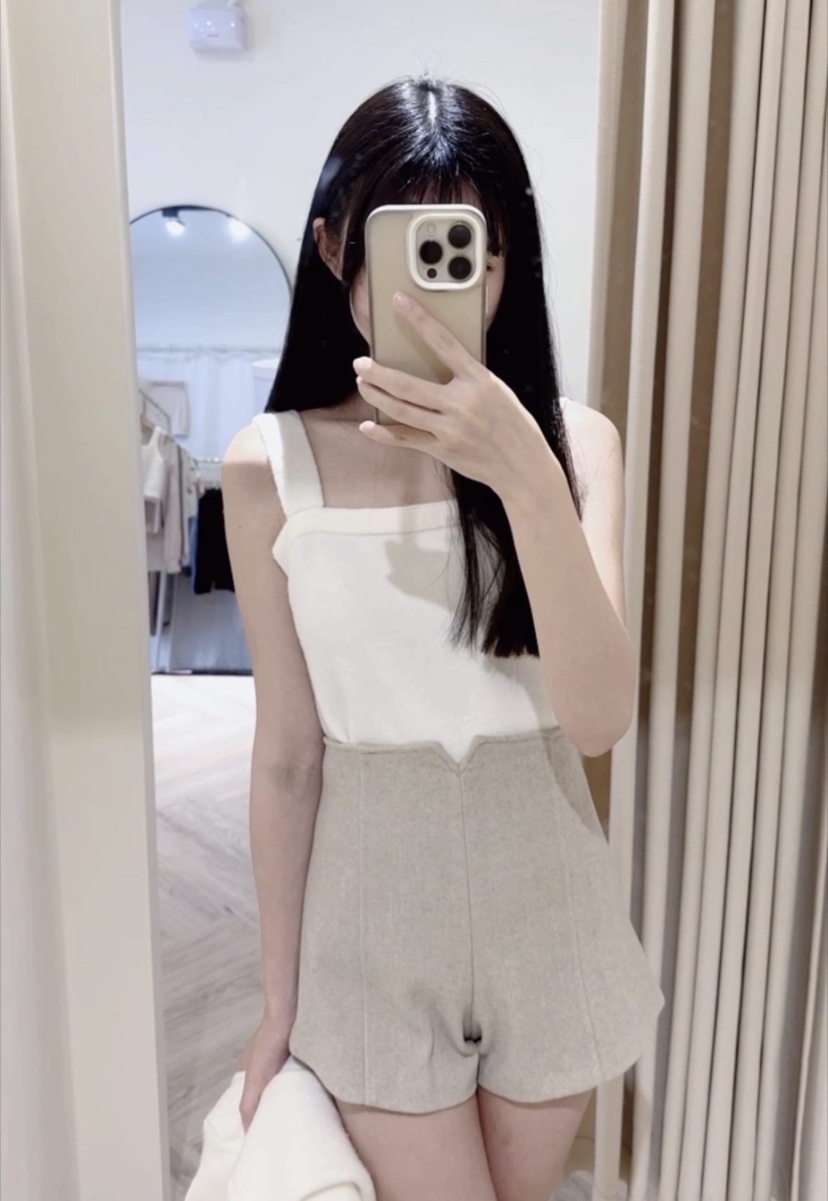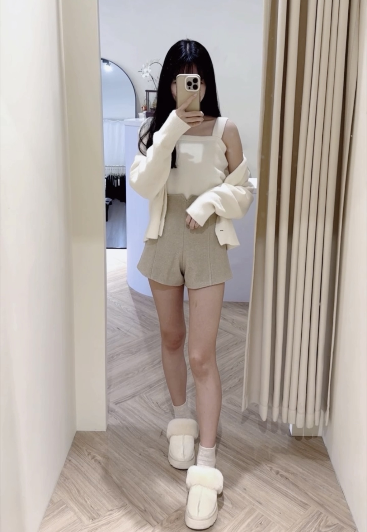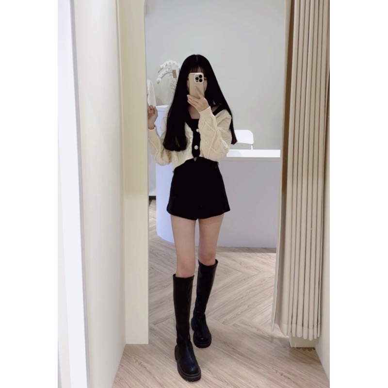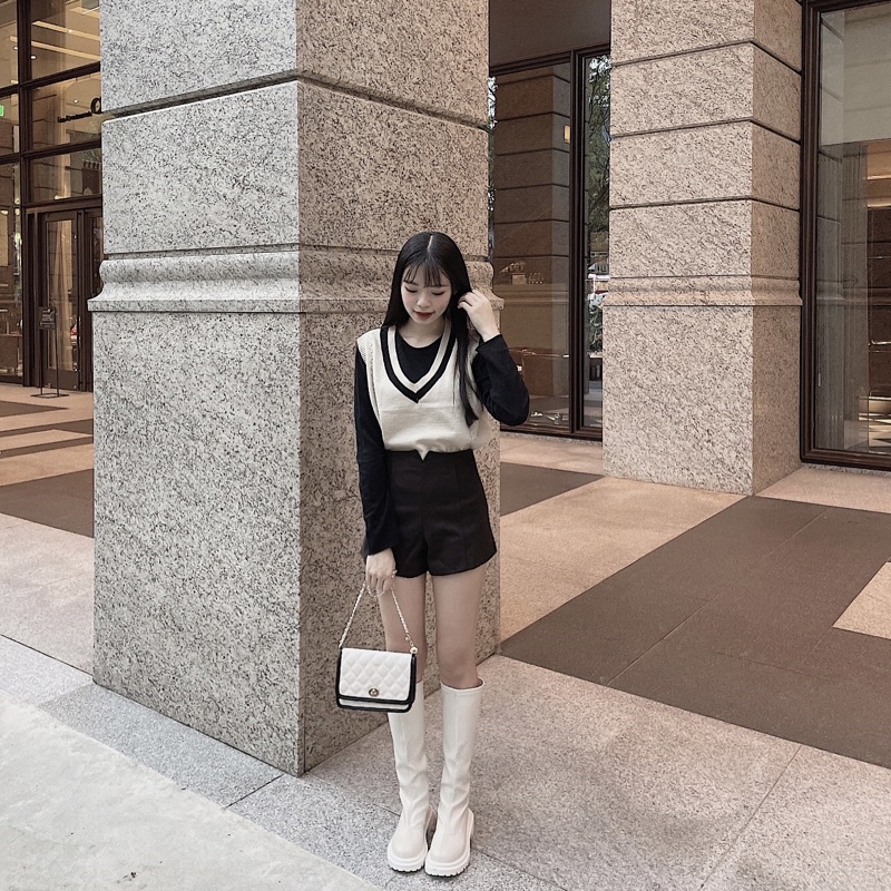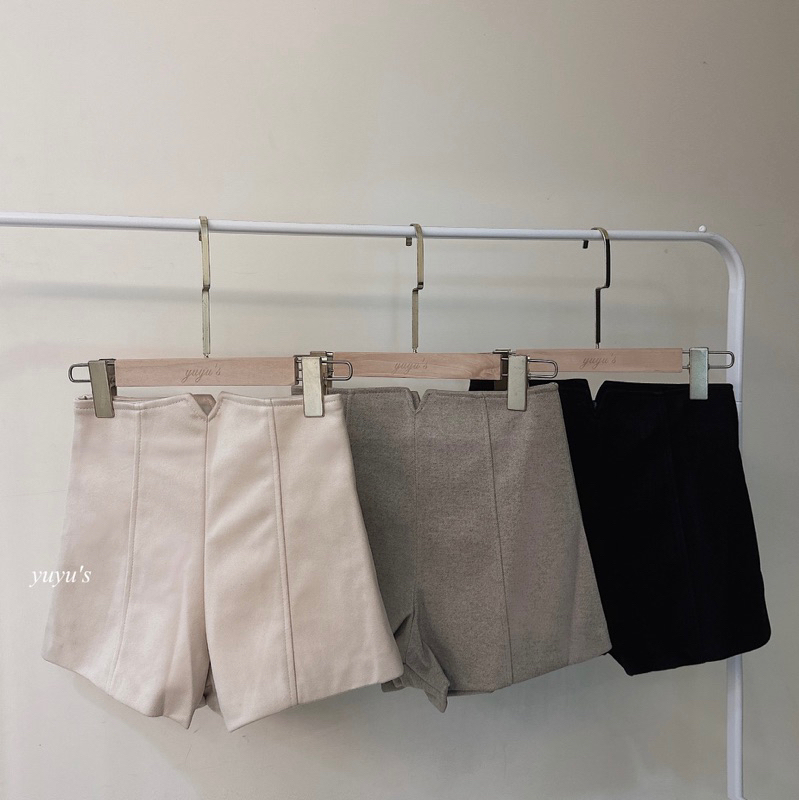 #版型偏小高腰修身絨面A字短褲