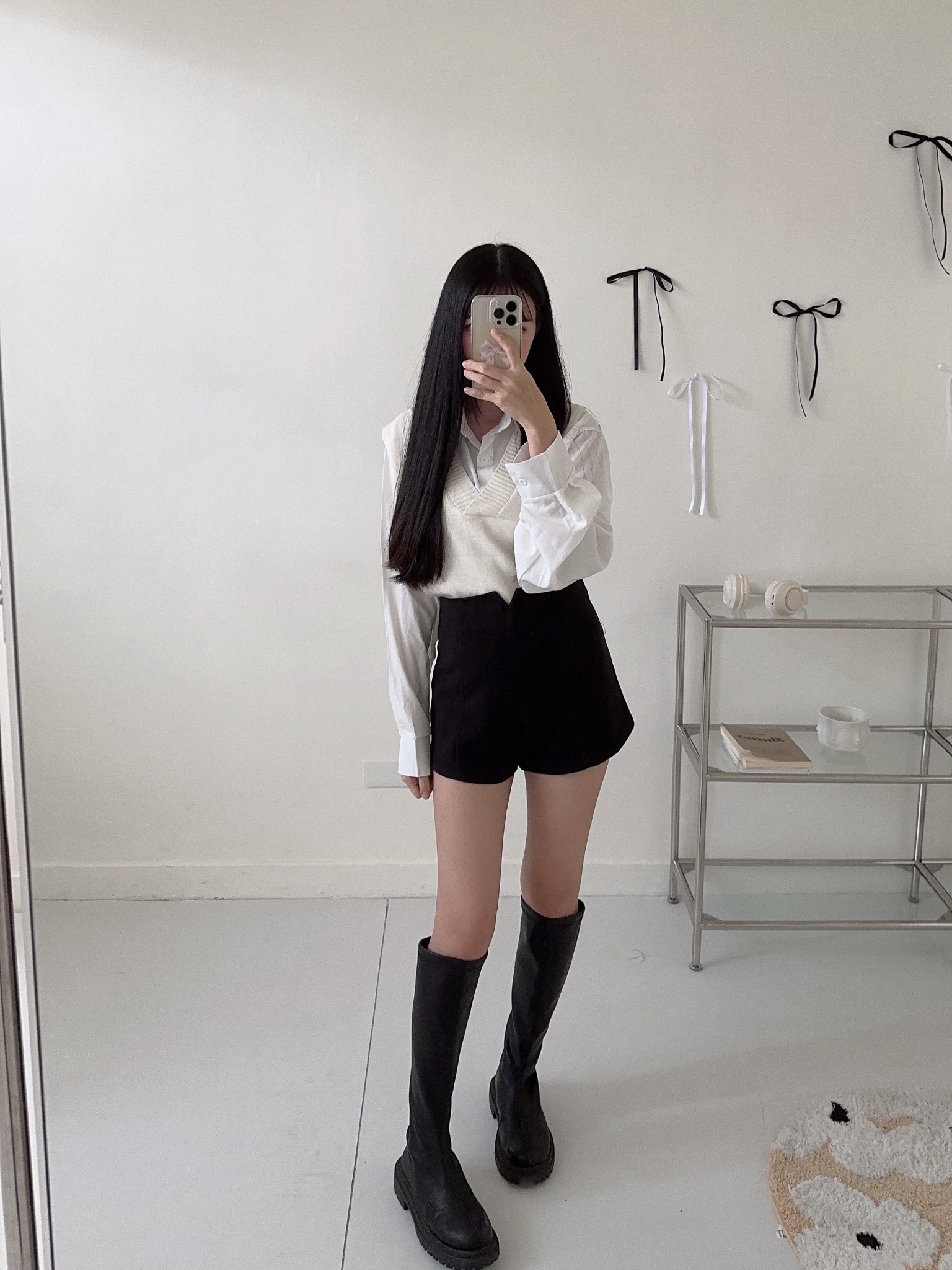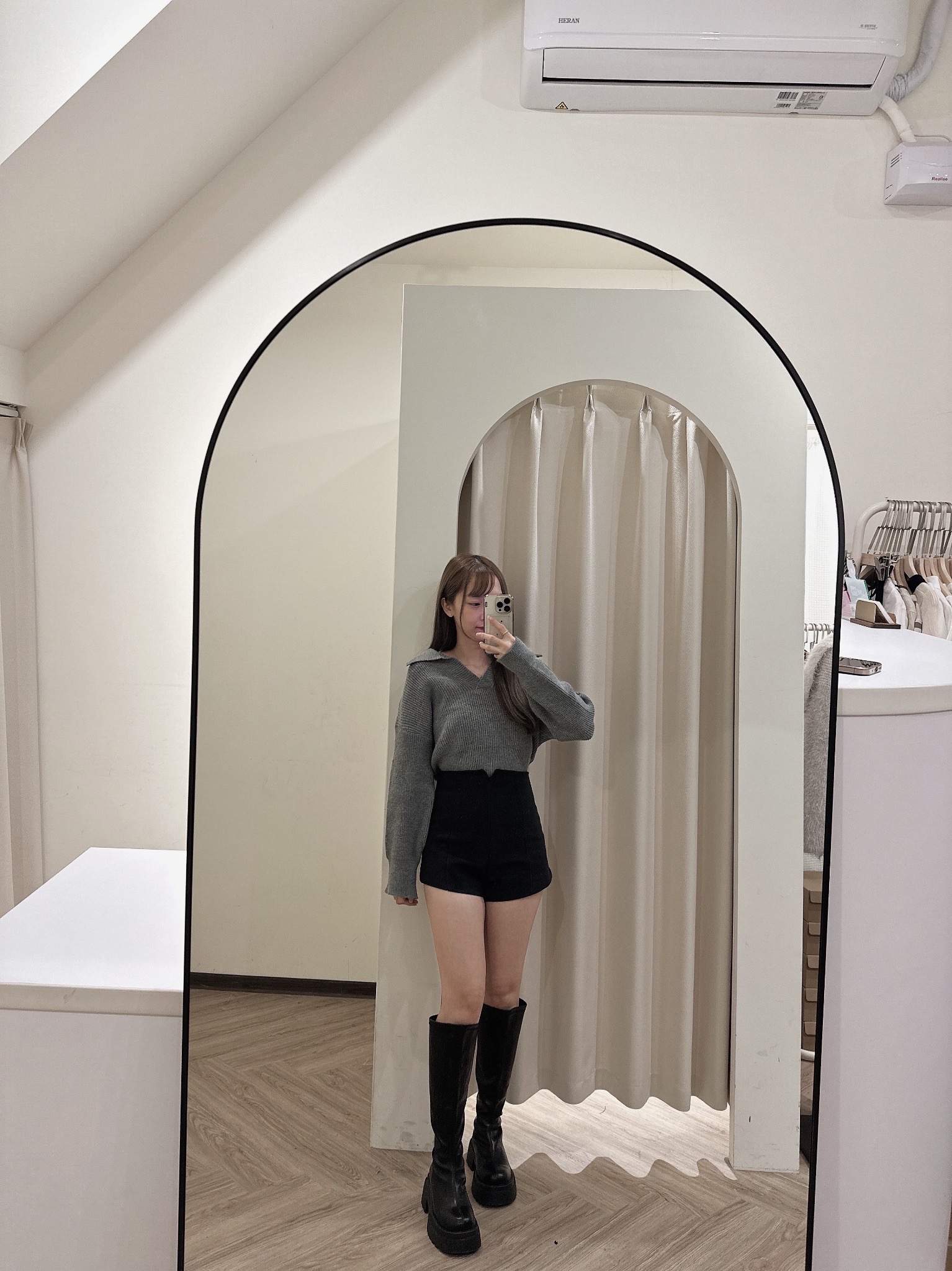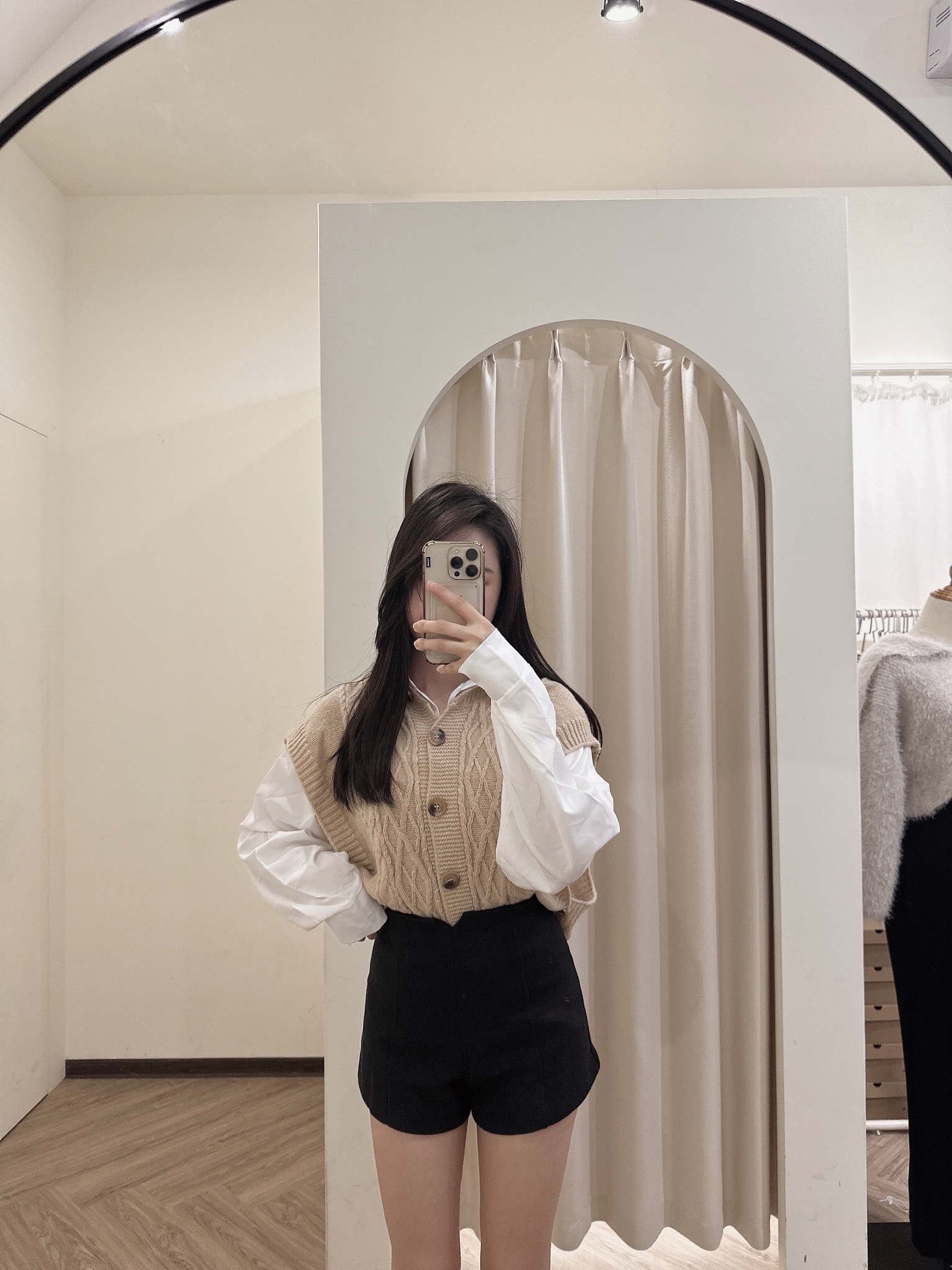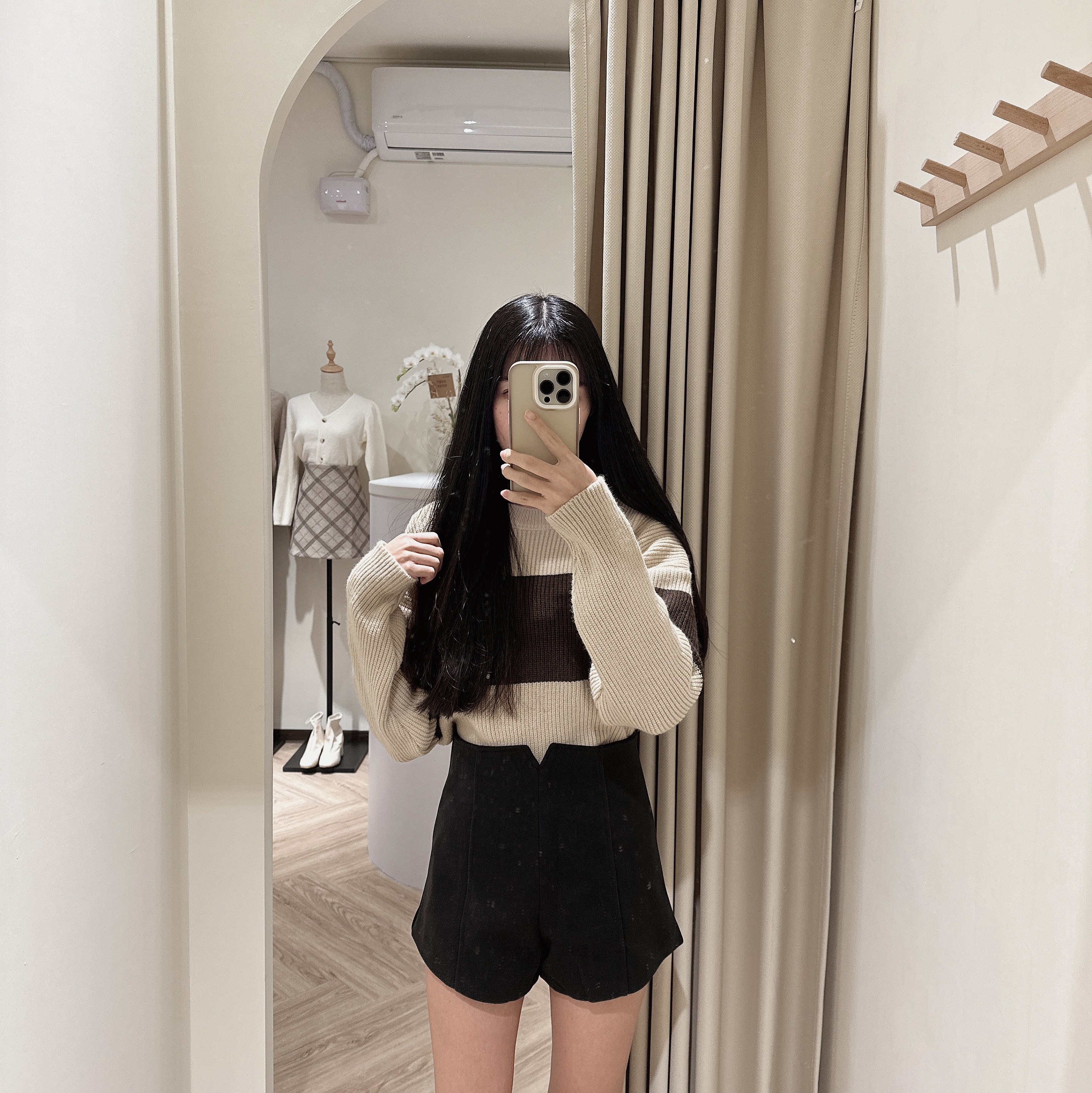 #版型偏小高腰修身絨面A字短褲