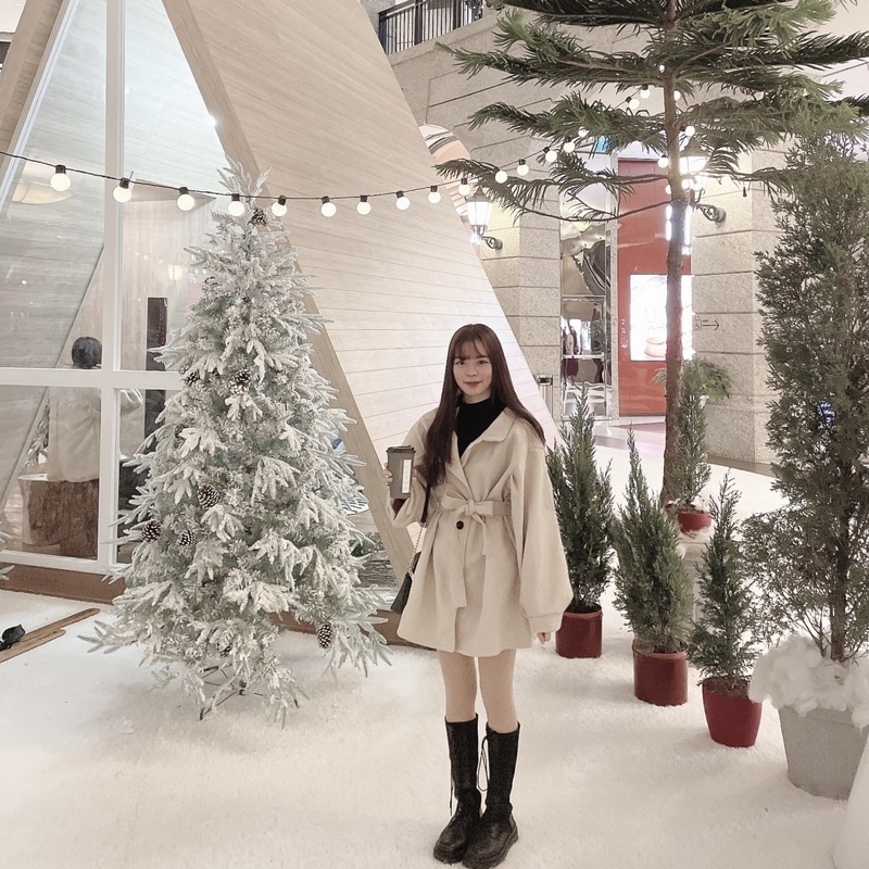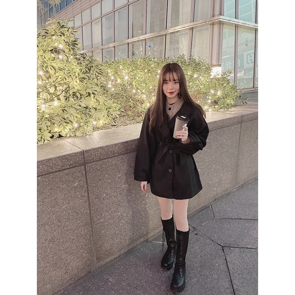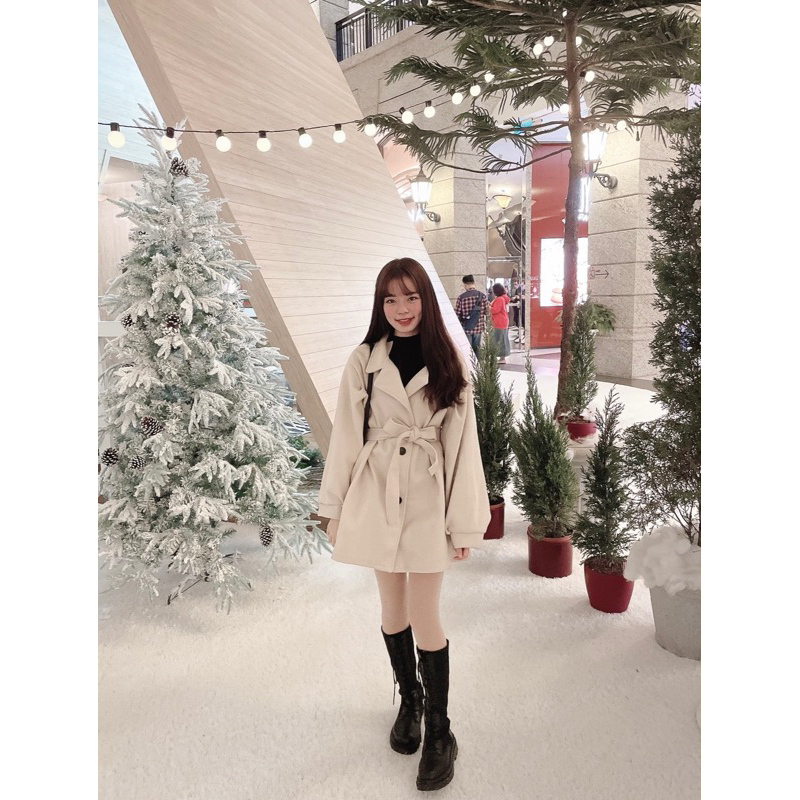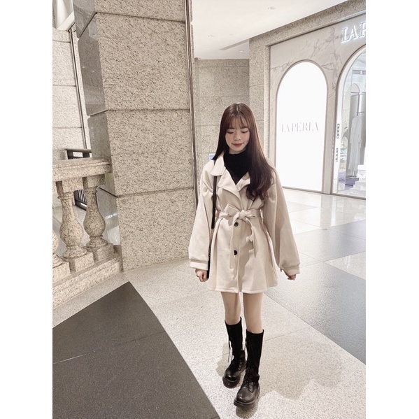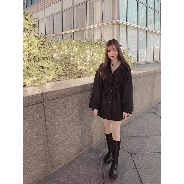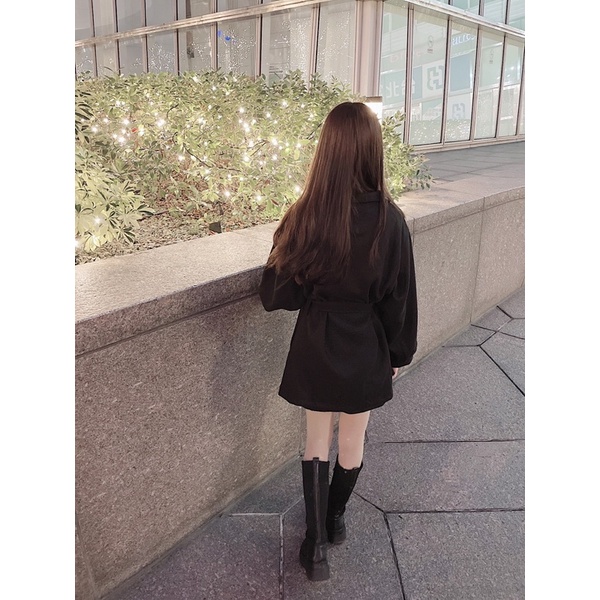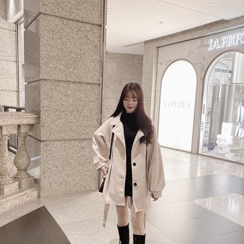 #厚毛呢收腰綁帶澎袖大衣