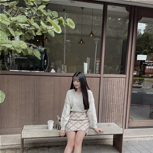 #混米灰柔軟針織v領毛衣